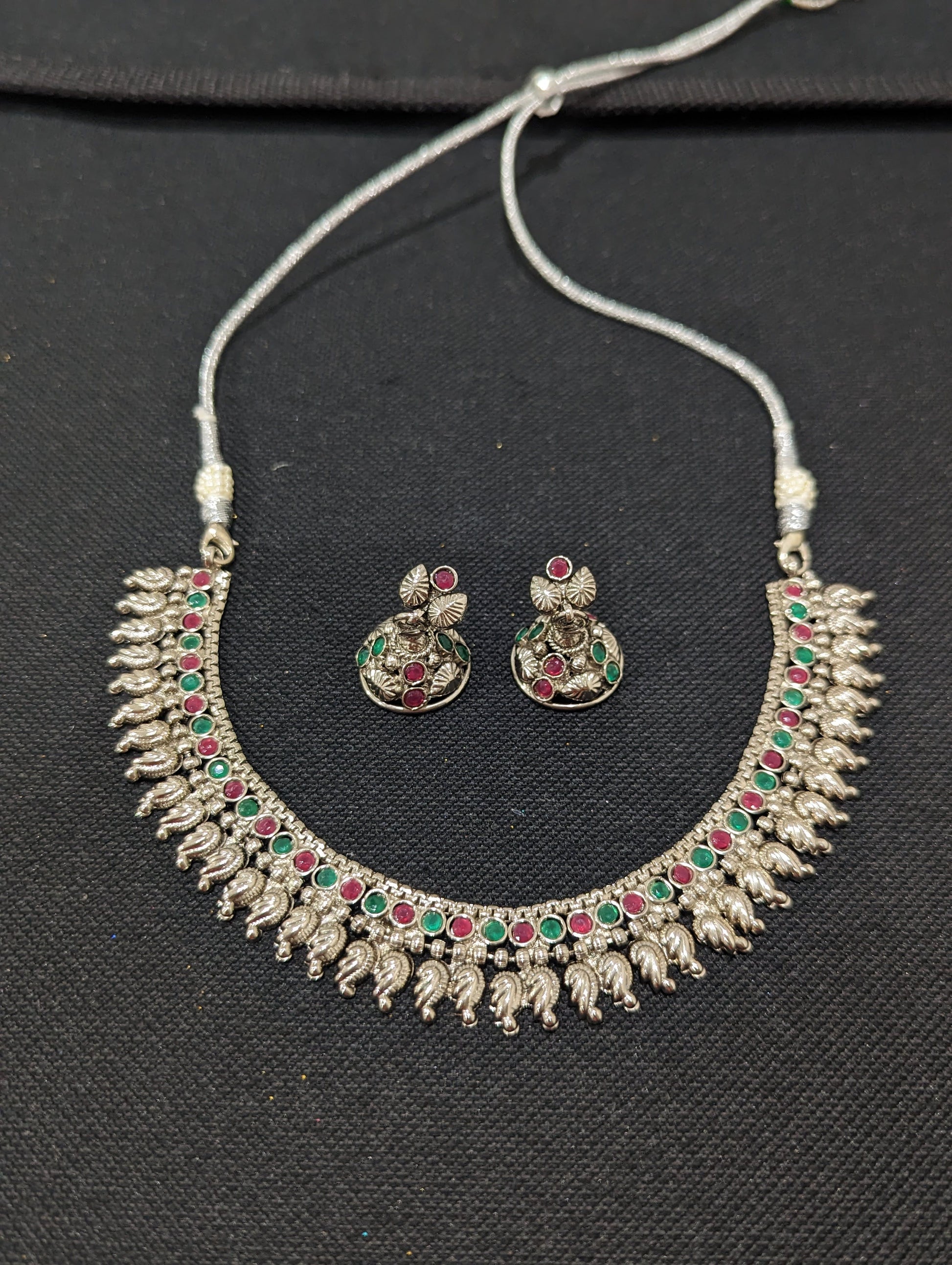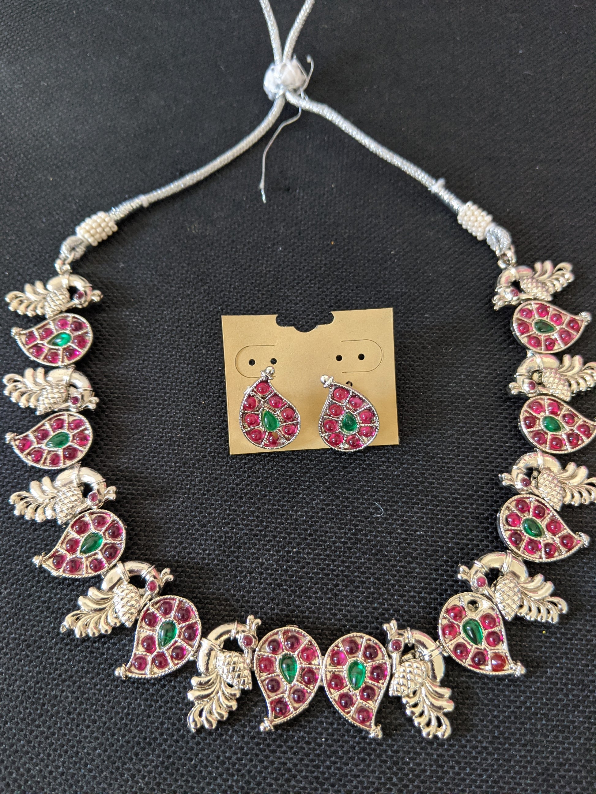 Kemp / CZ stone pasted choker necklace and earrings set.