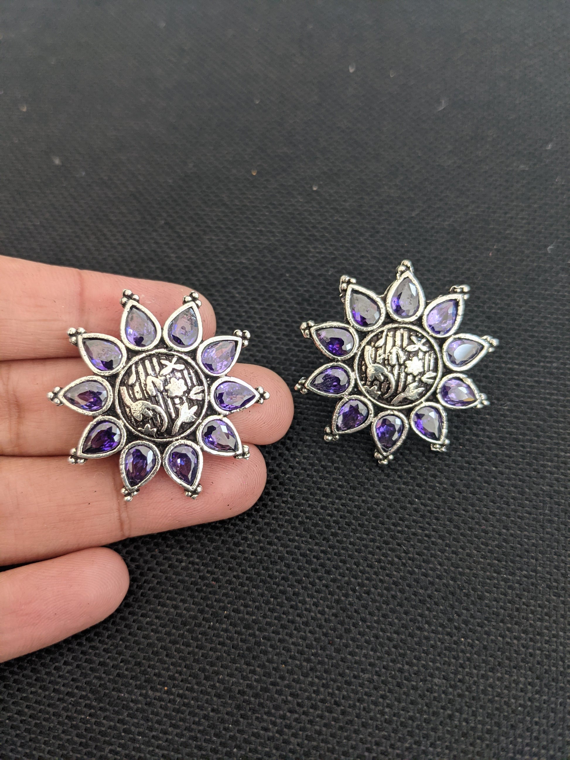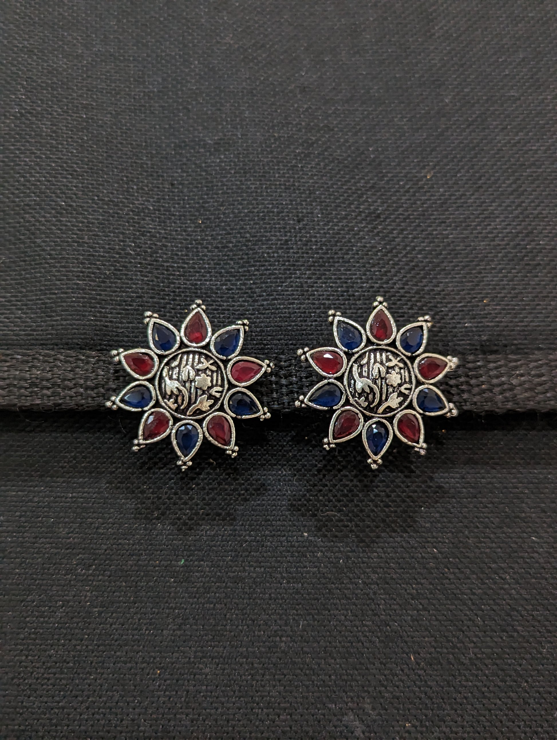 Oxidized Silver Stud Earrings.