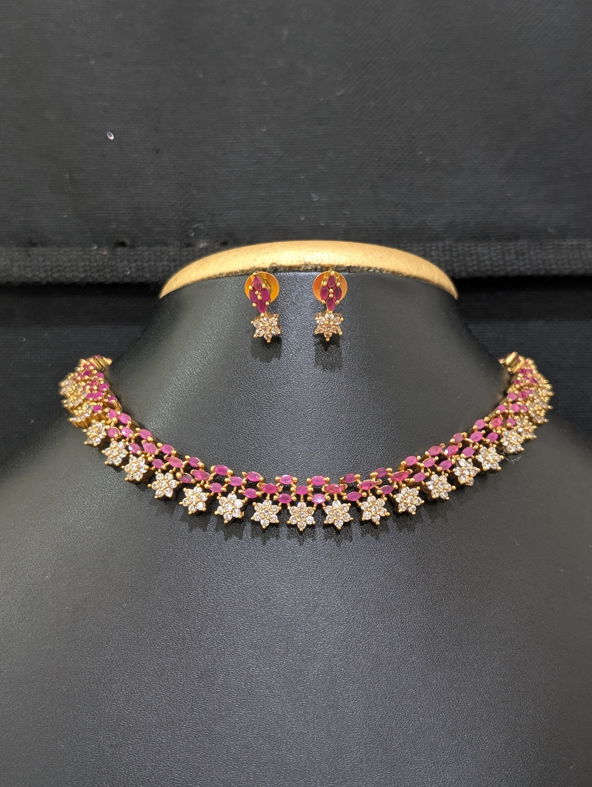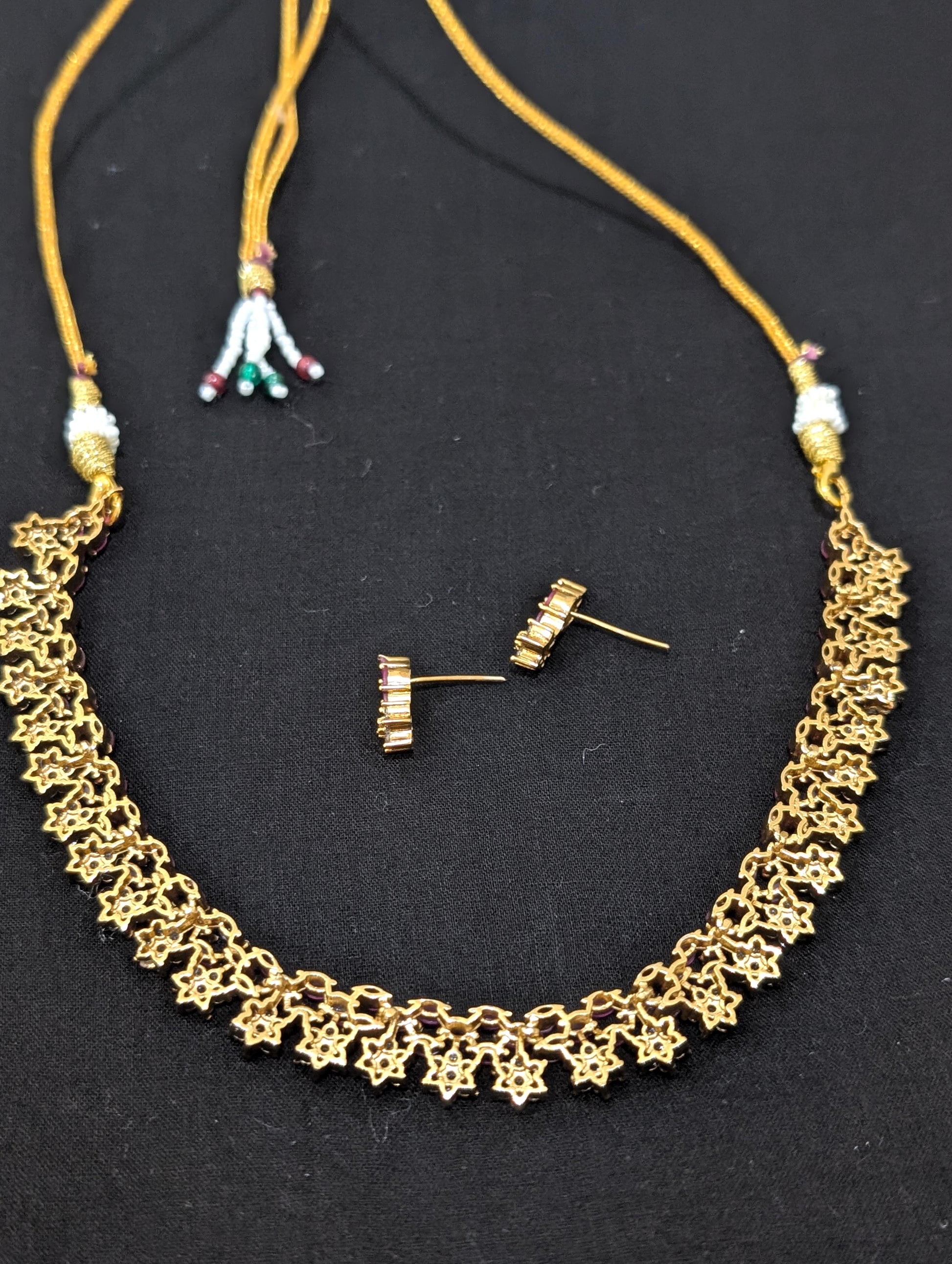 Shiny Antique gold / Dull gold plated CZ /AD stone choker necklace and Earring set.