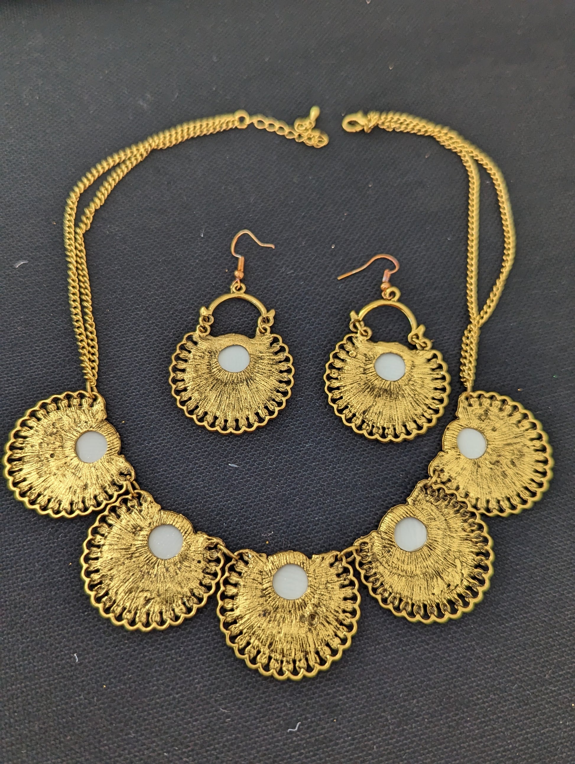 Antique gold mirror chain necklace and earring set