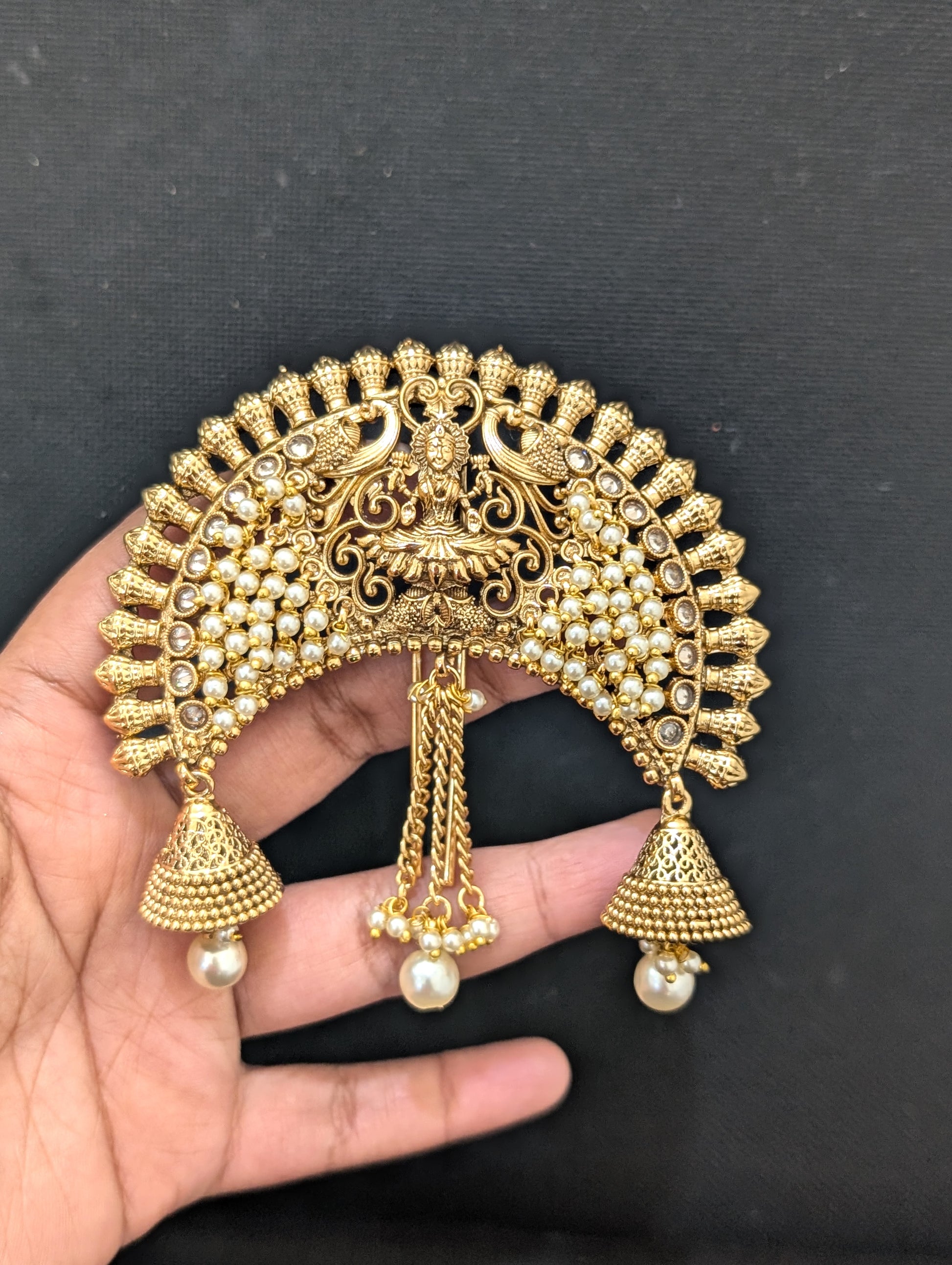 Antique Gold plated Lakshmi ji design Polki Large Hair Brooch