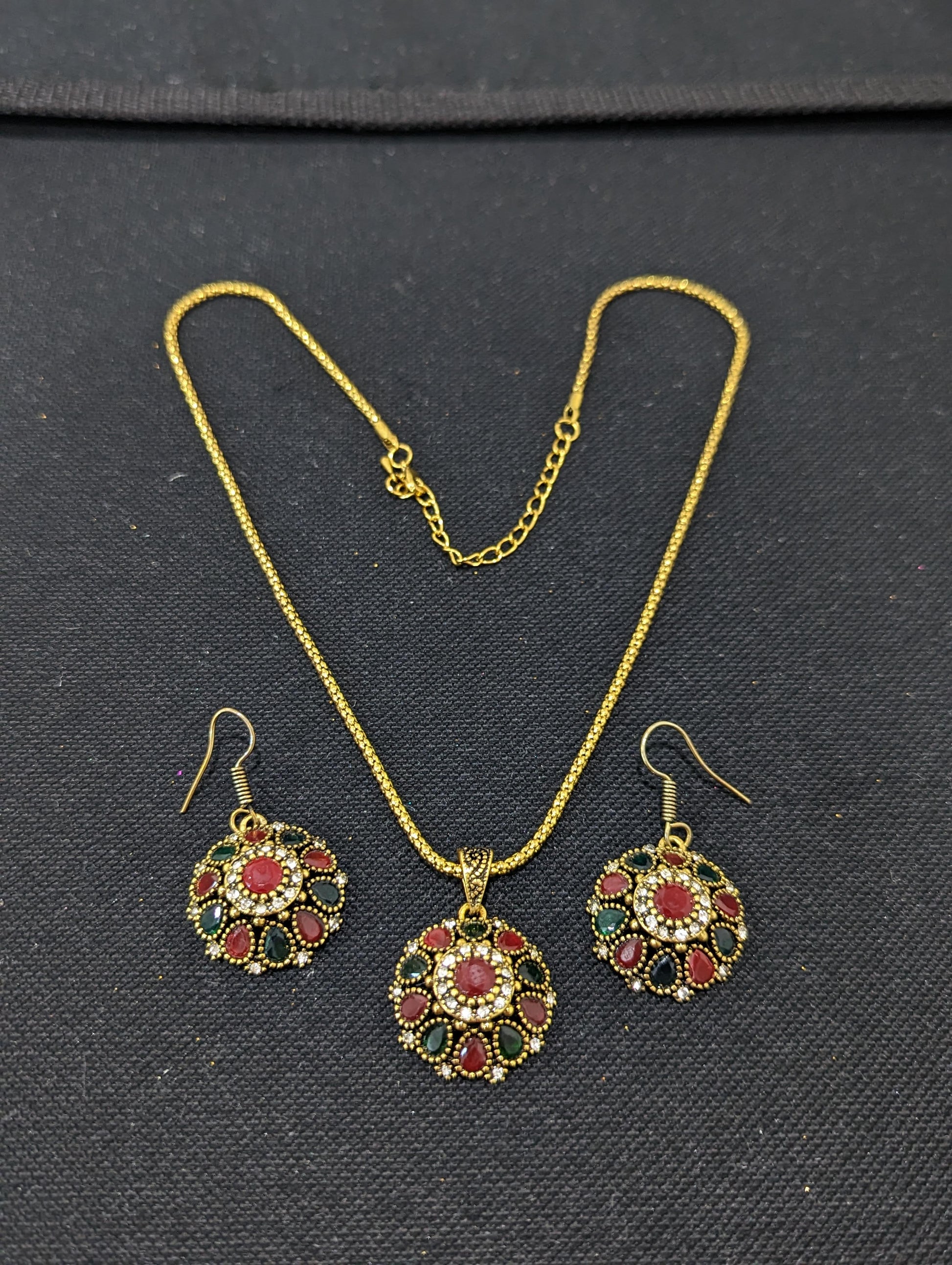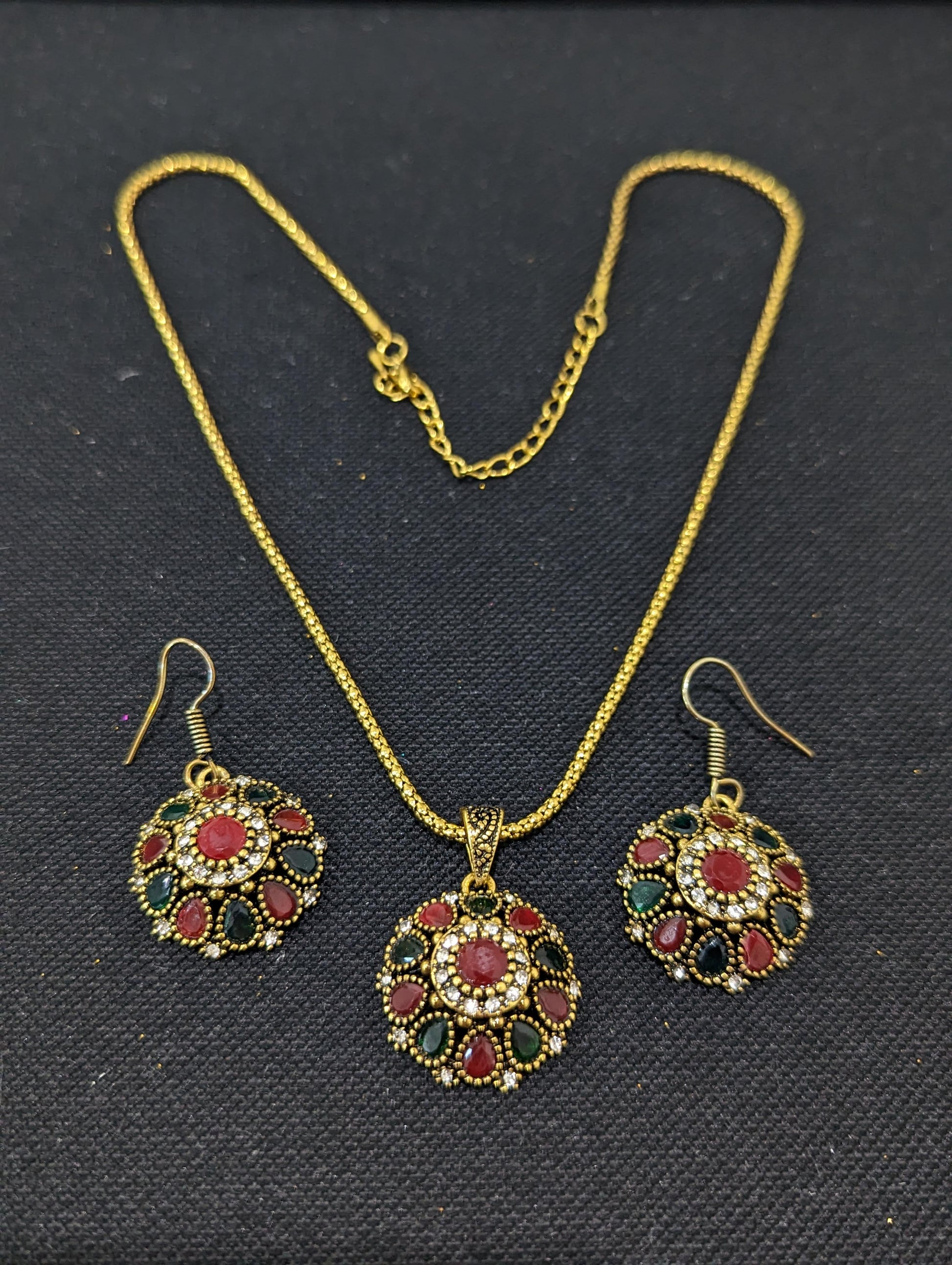 Antique gold plated pendant chain necklace and earring set