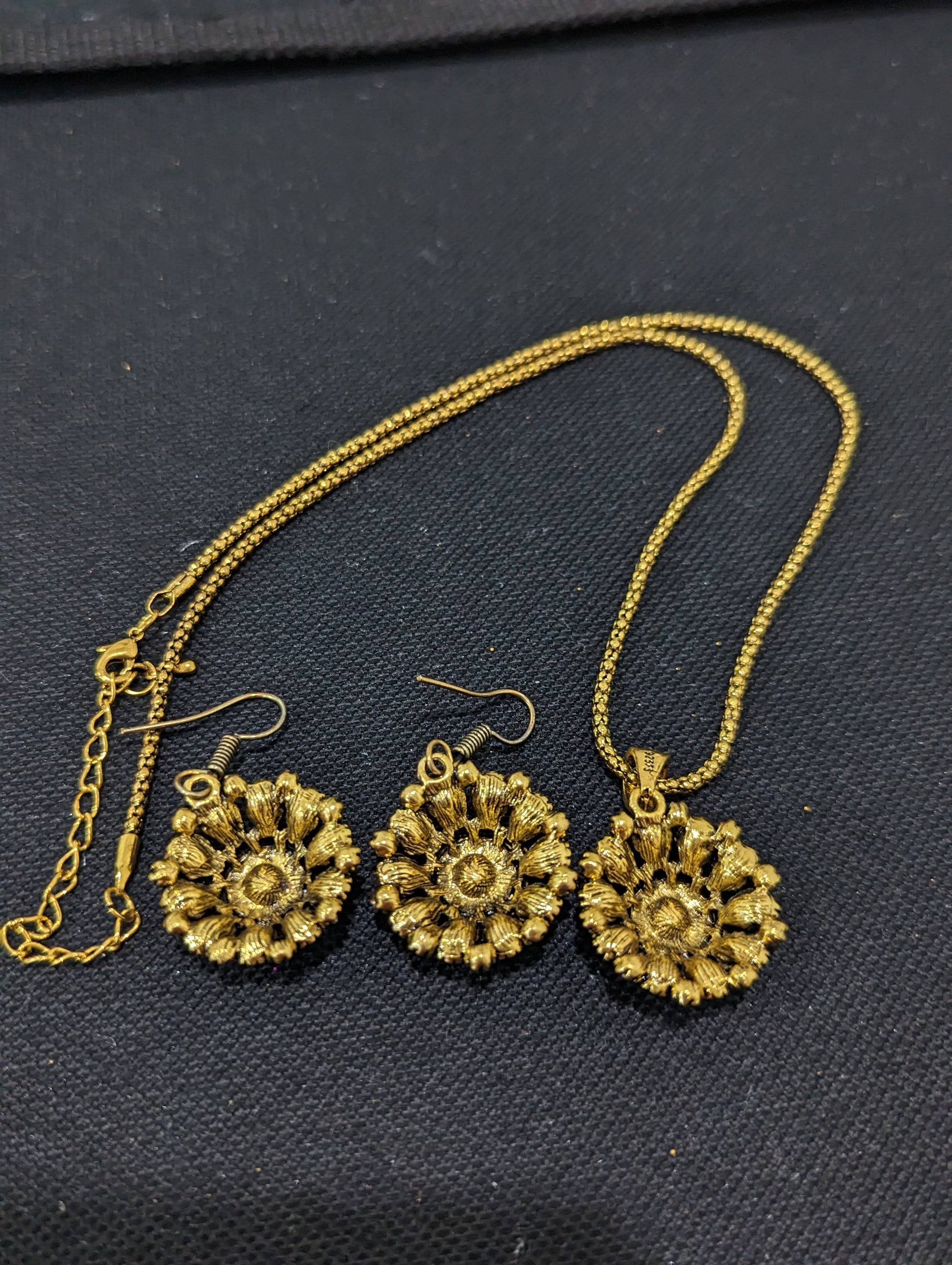 Antique gold finish pendant chain necklace and earrings set.