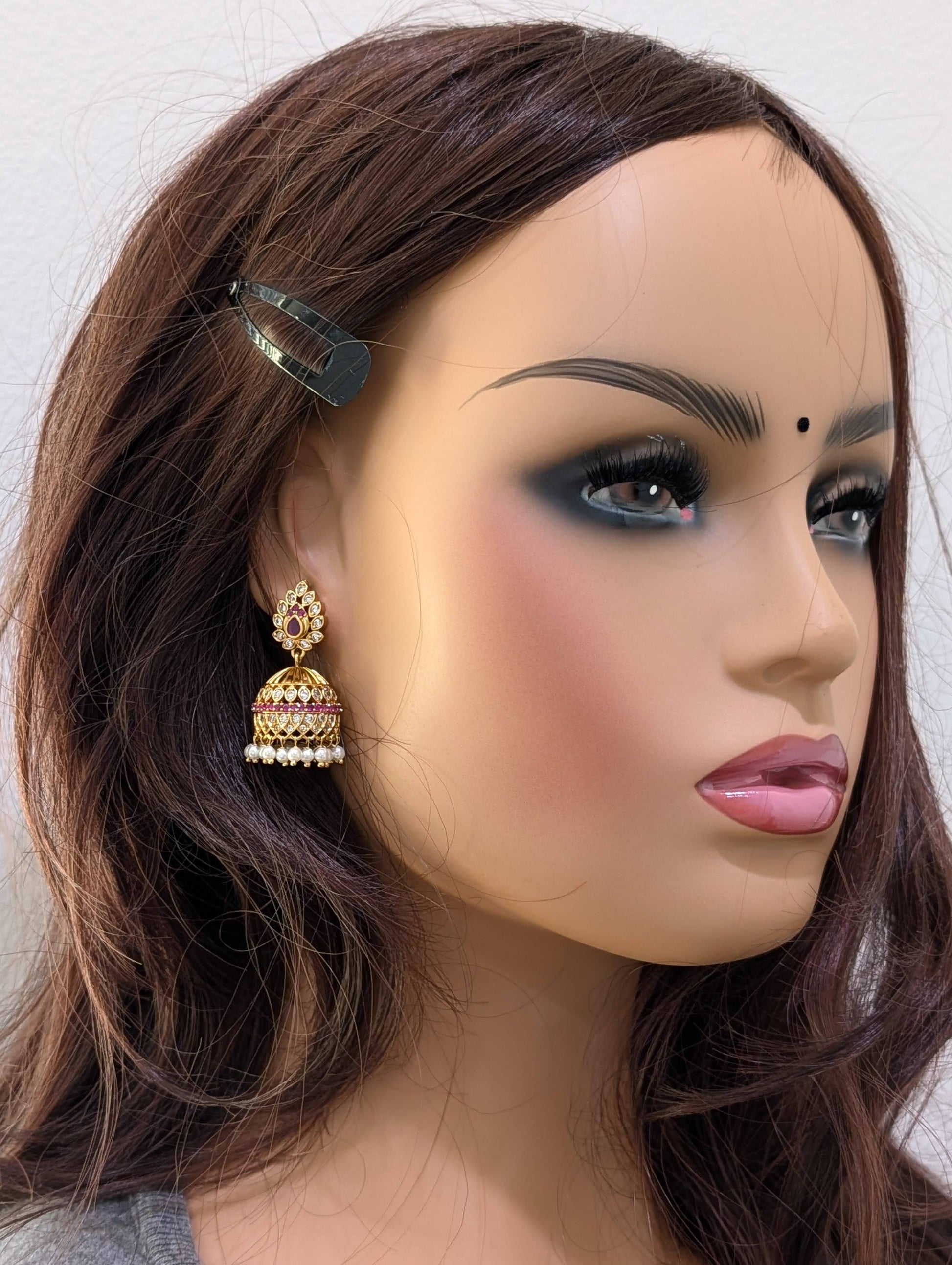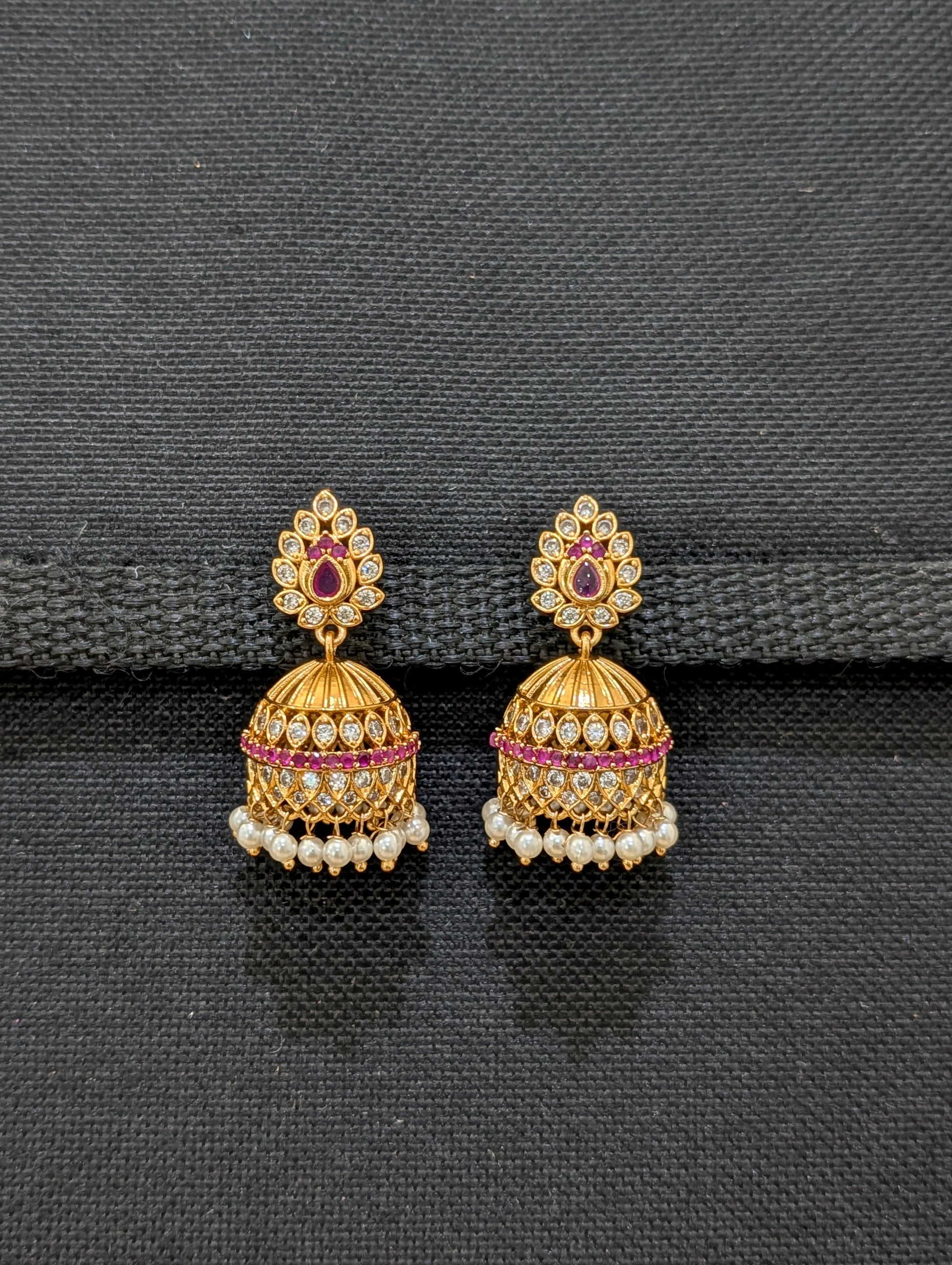 Antique shiny gold plated CZ stone Jhumka Earrings.
