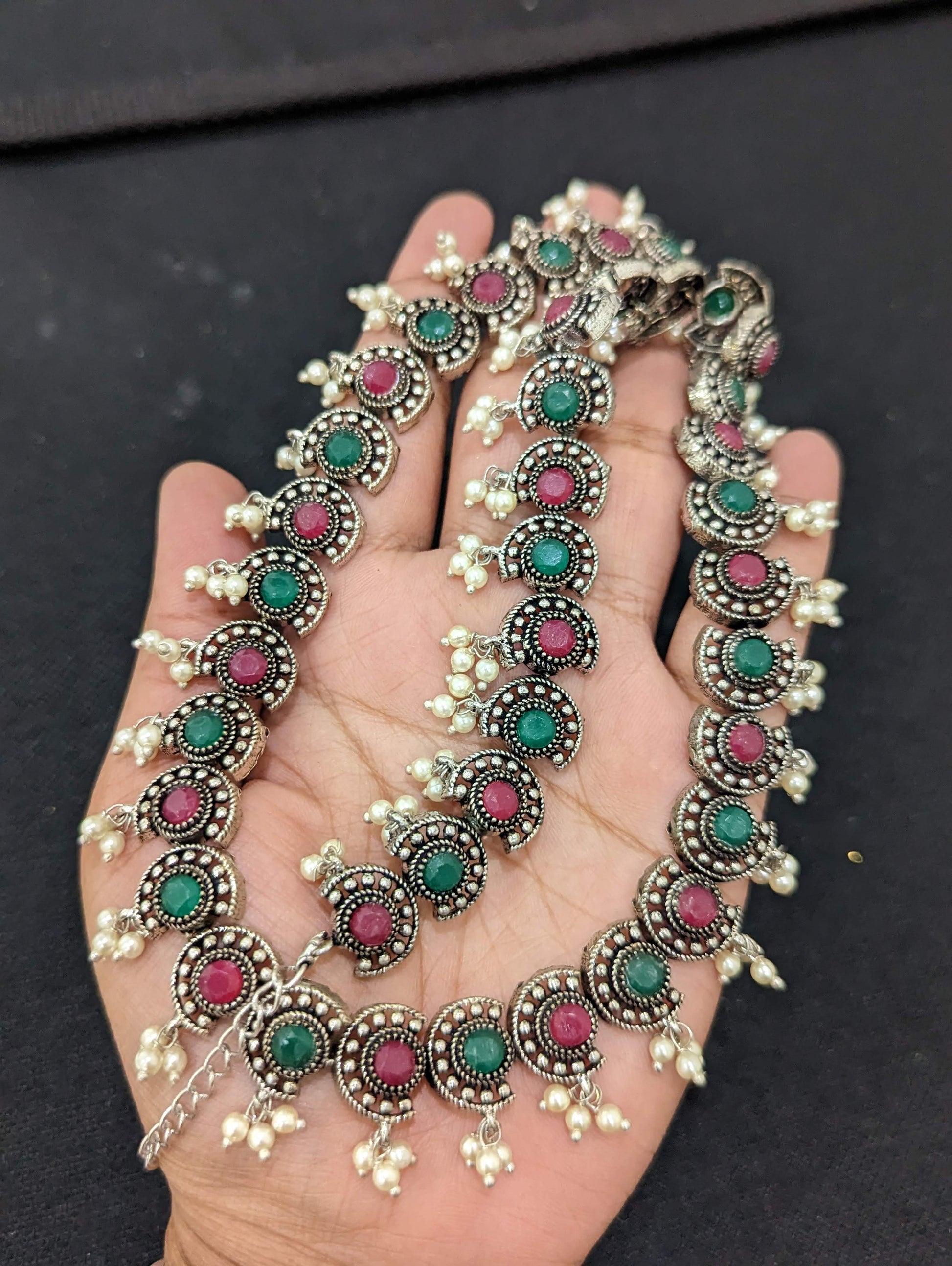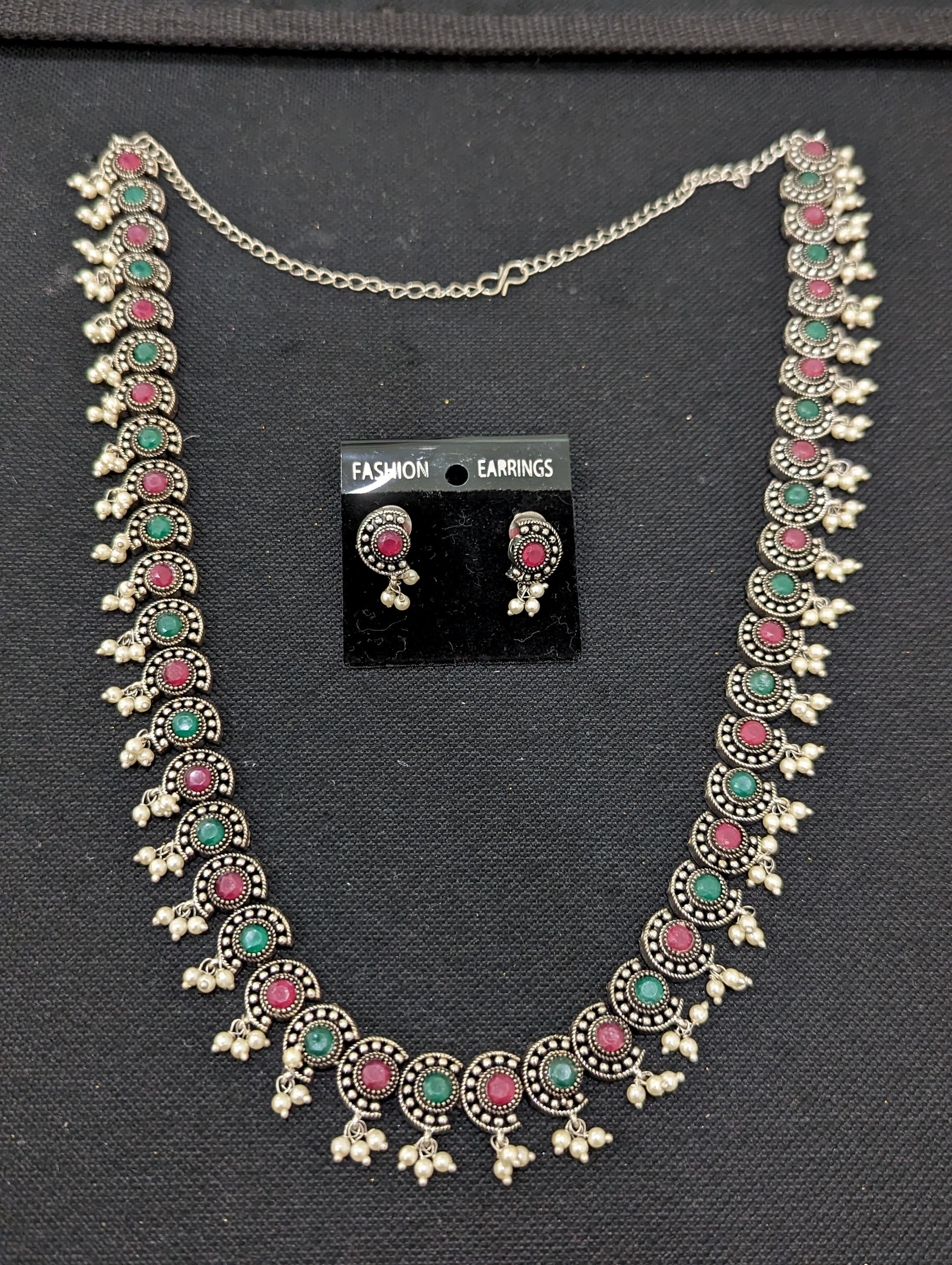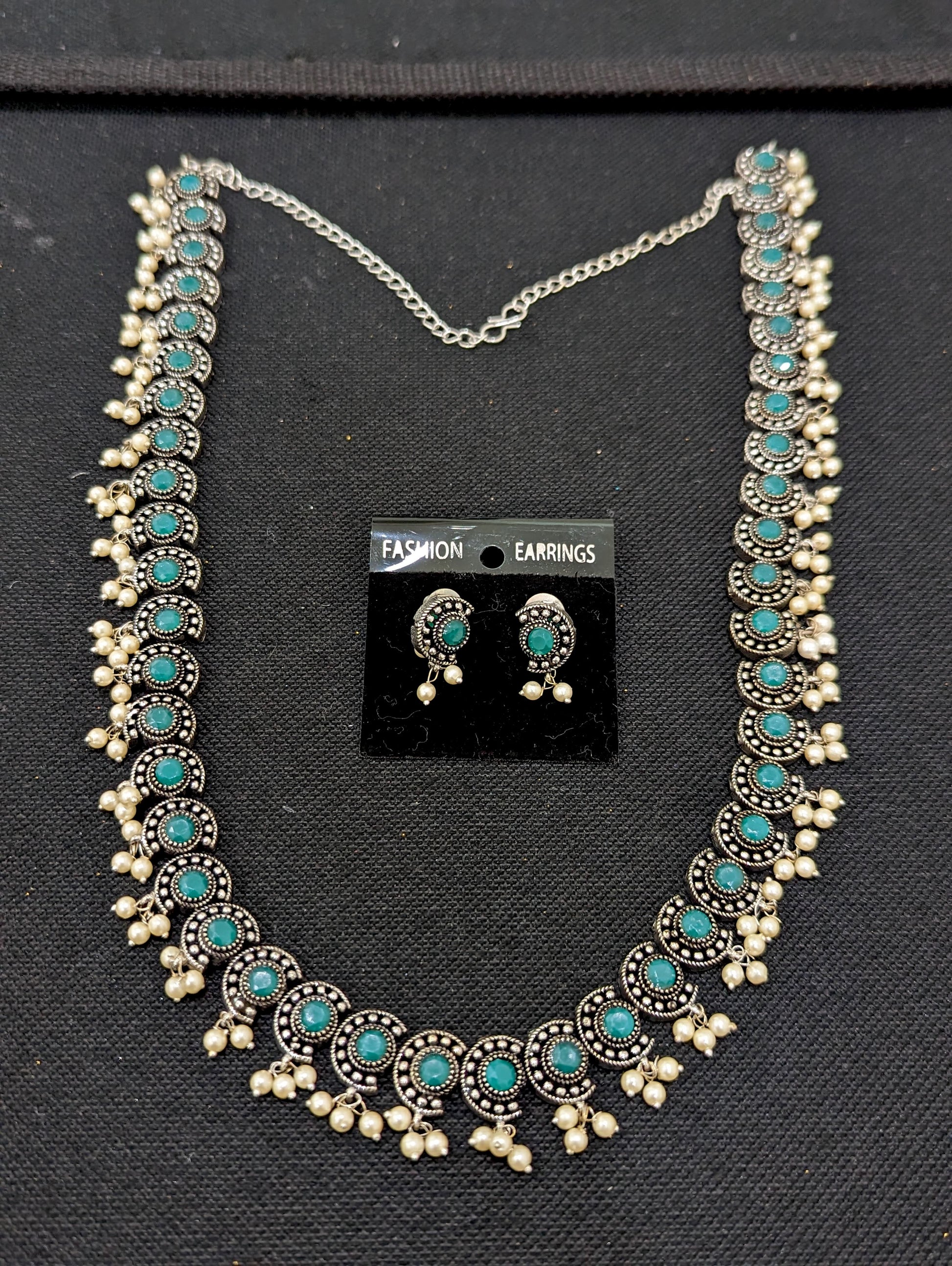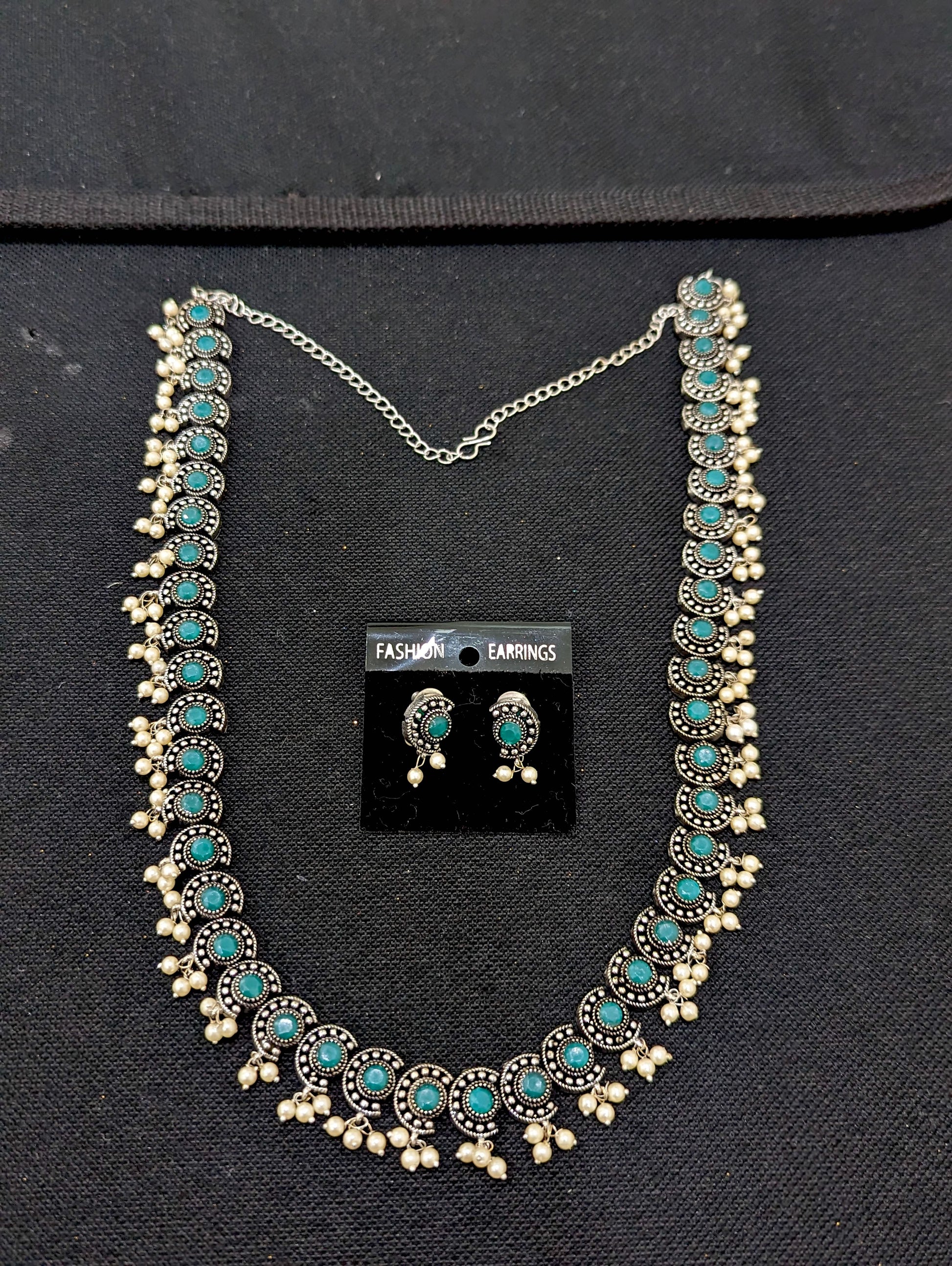 Oxidized silver Cut Circle design Long necklace and earrings set