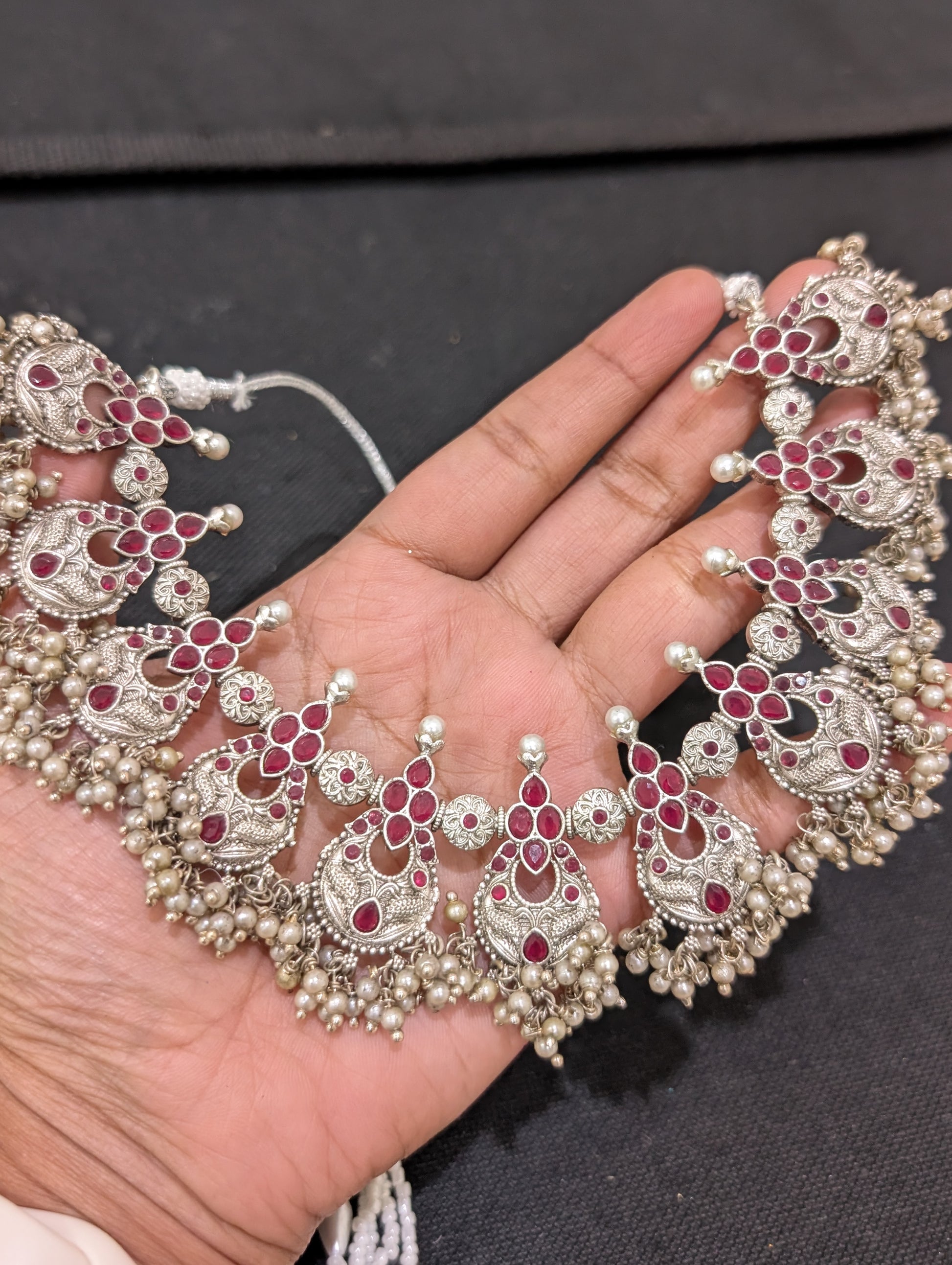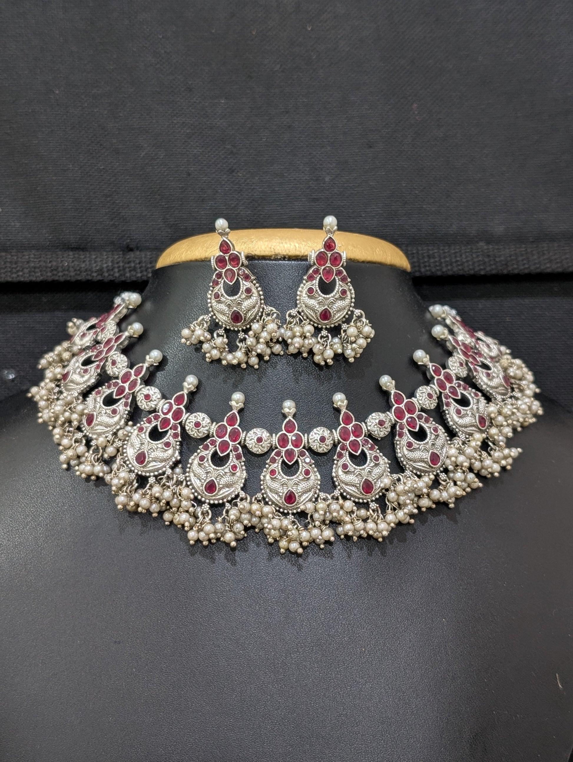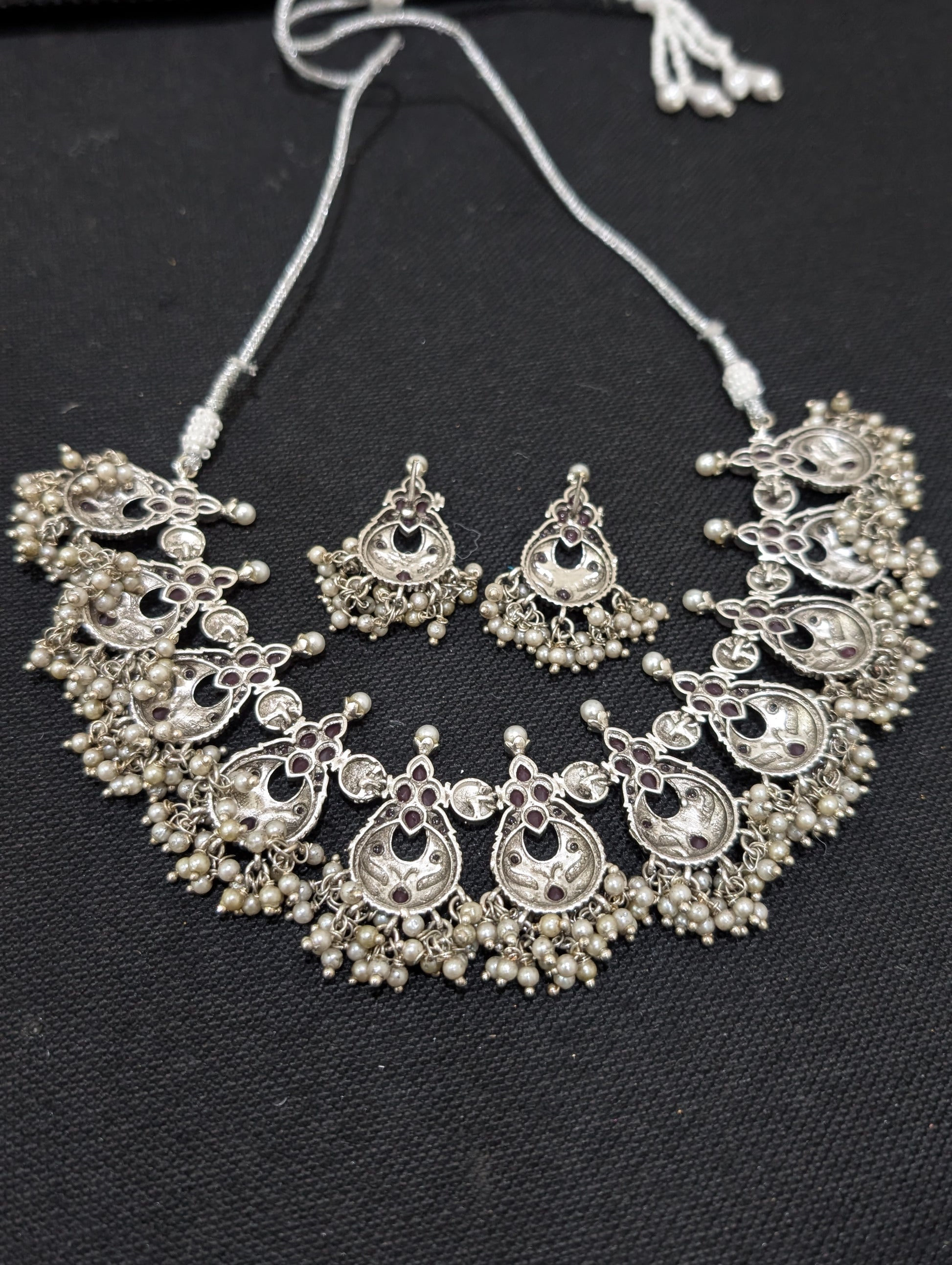 Antique Silver Guttapusalu CZ Choker necklace and Earrings set