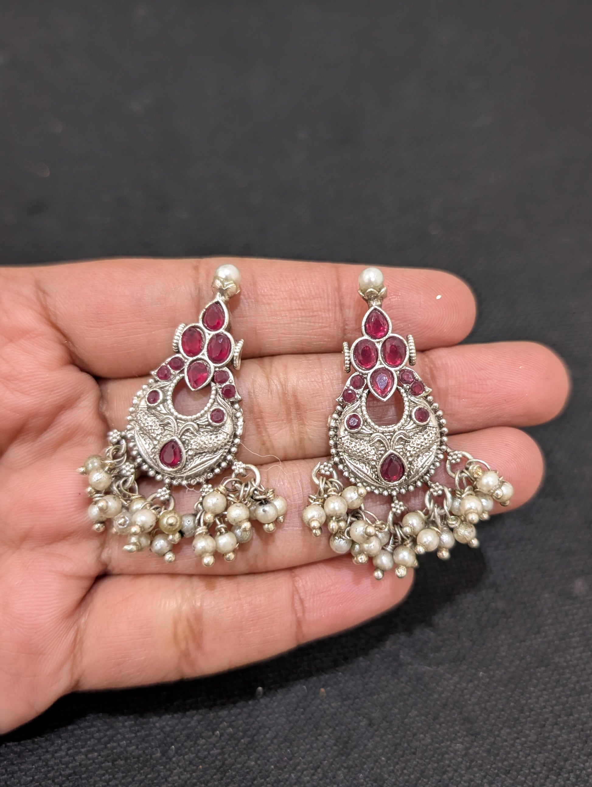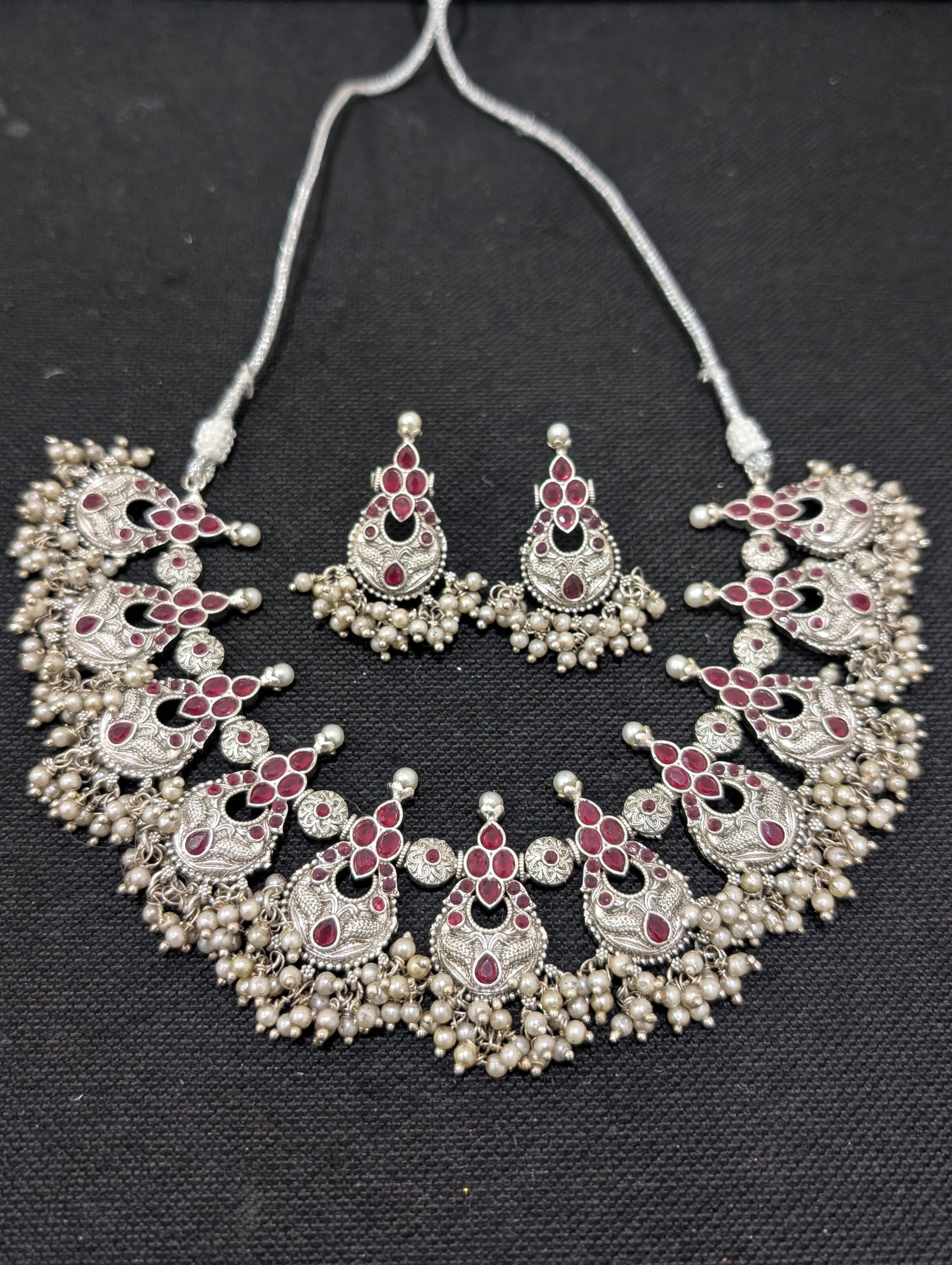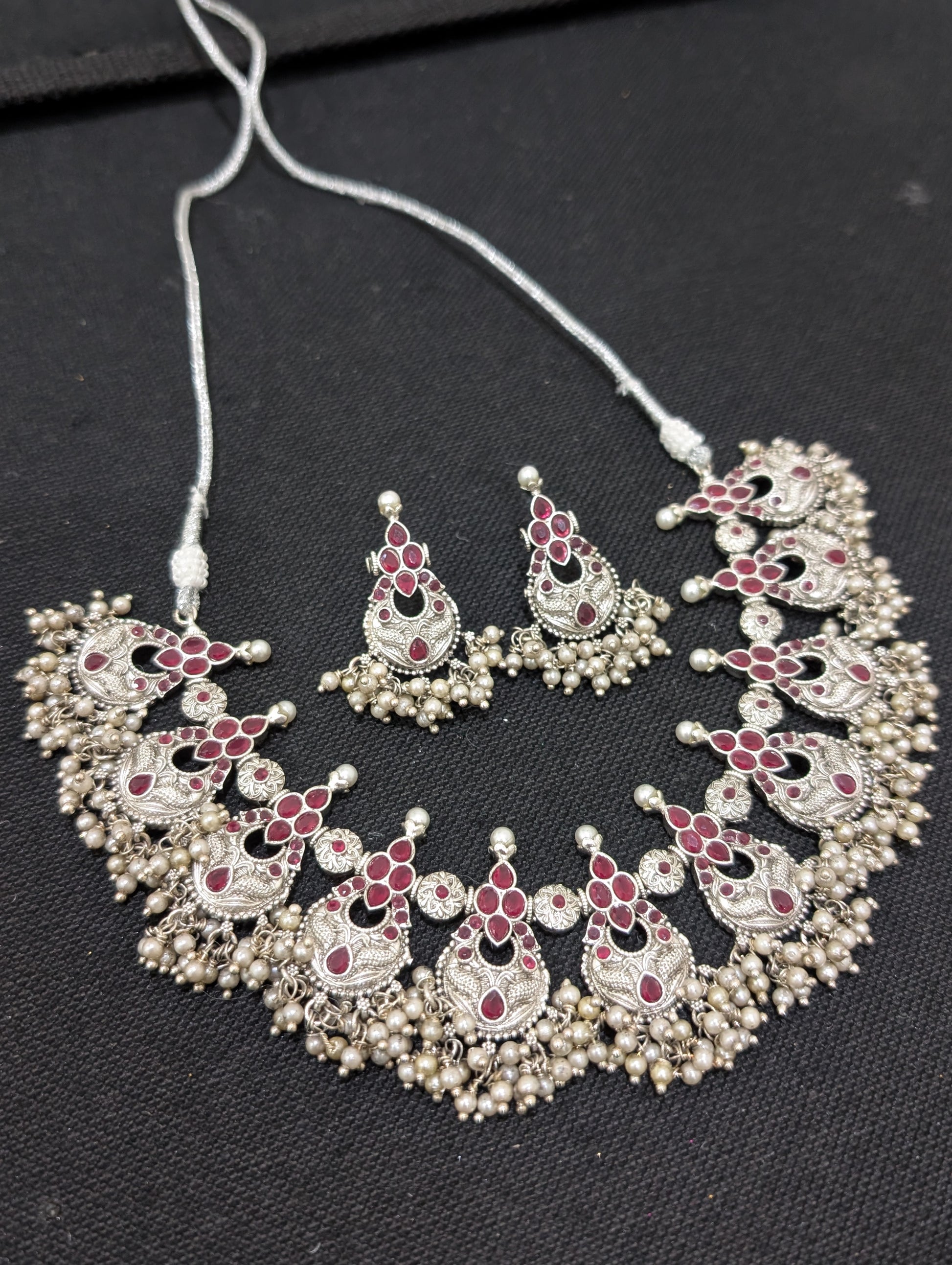Antique Silver Guttapusalu CZ Choker necklace and Earrings set