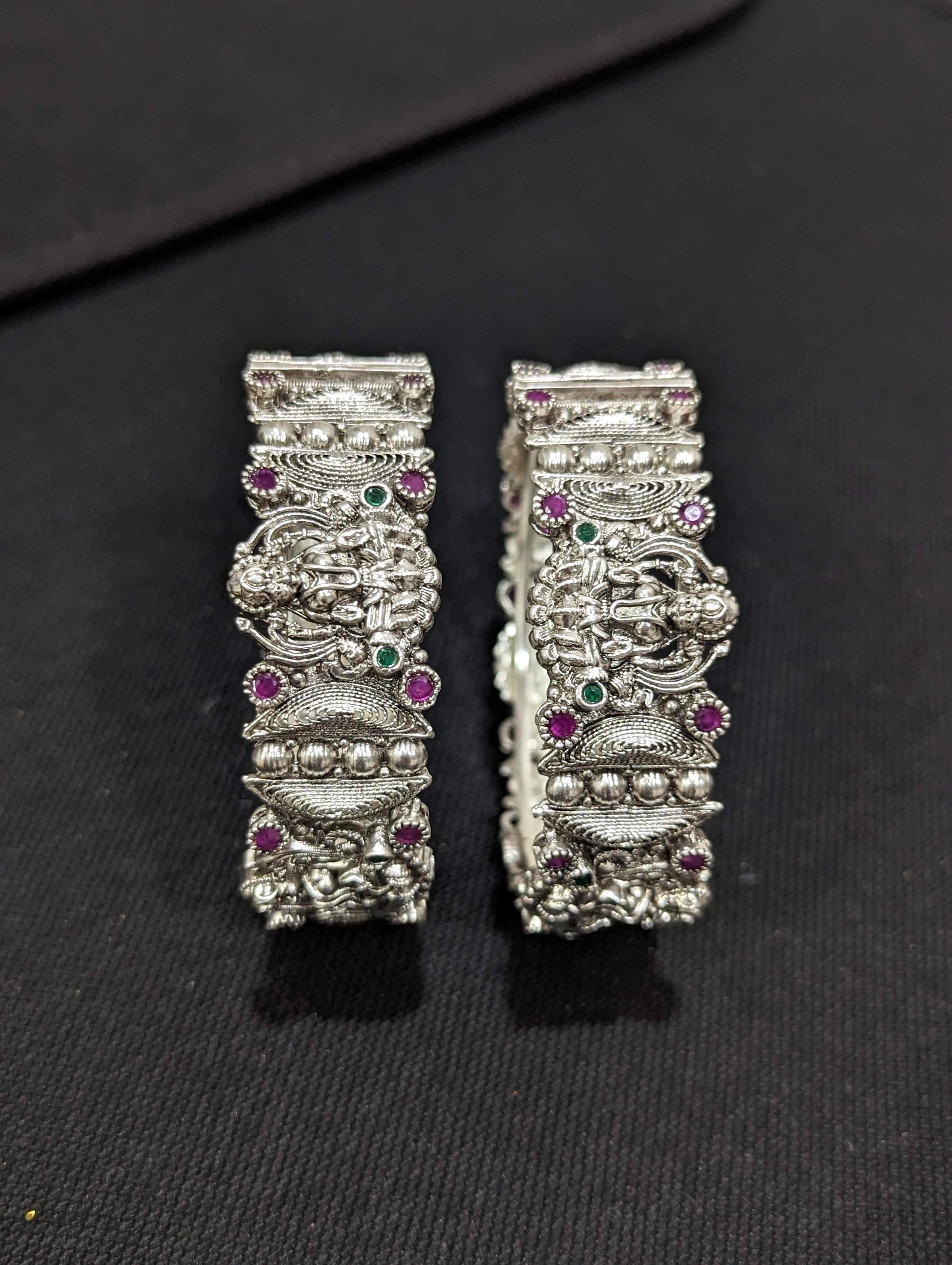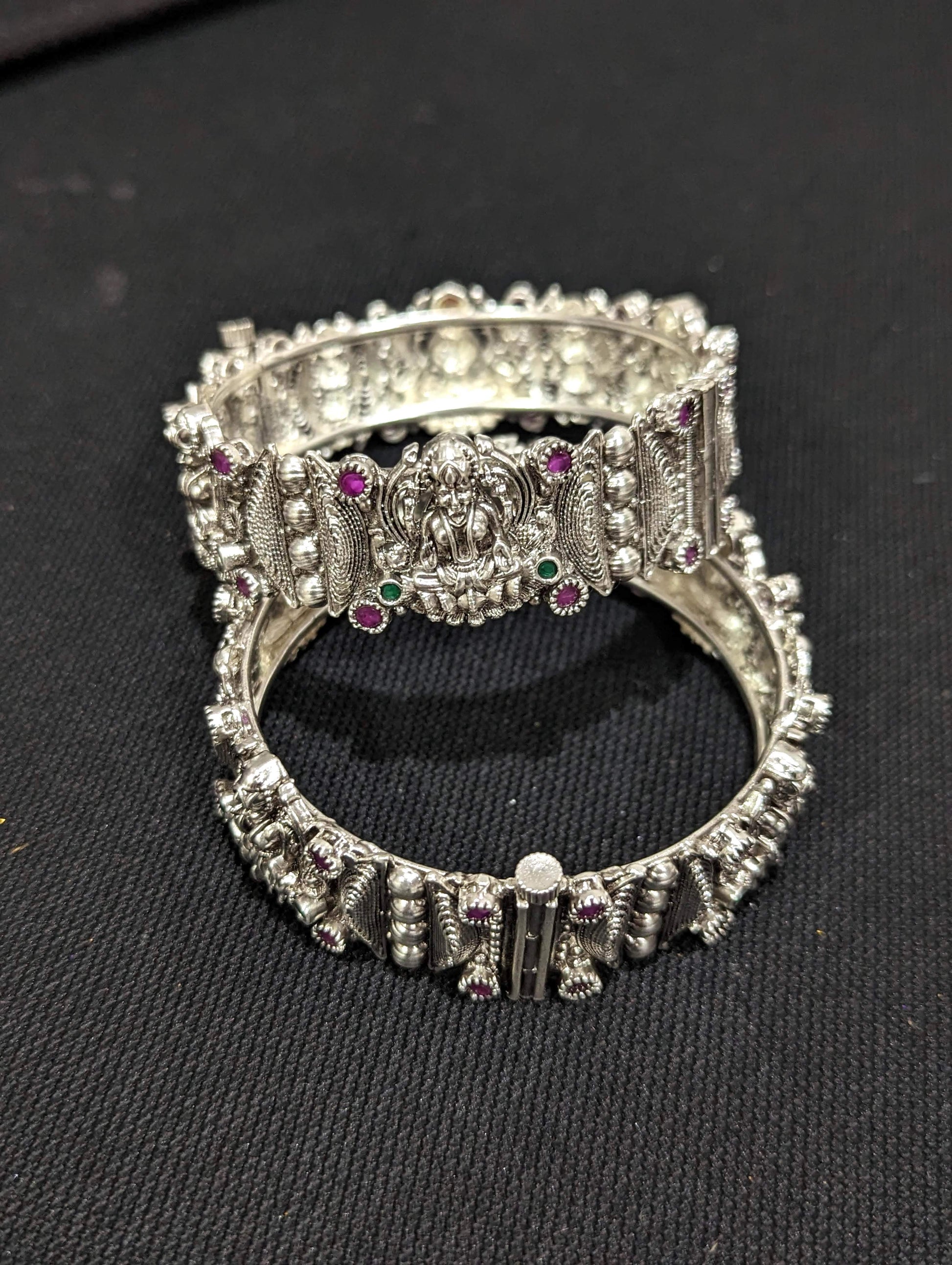 Silver matte finish Oxidized Goddess Lakshmi bold bangles