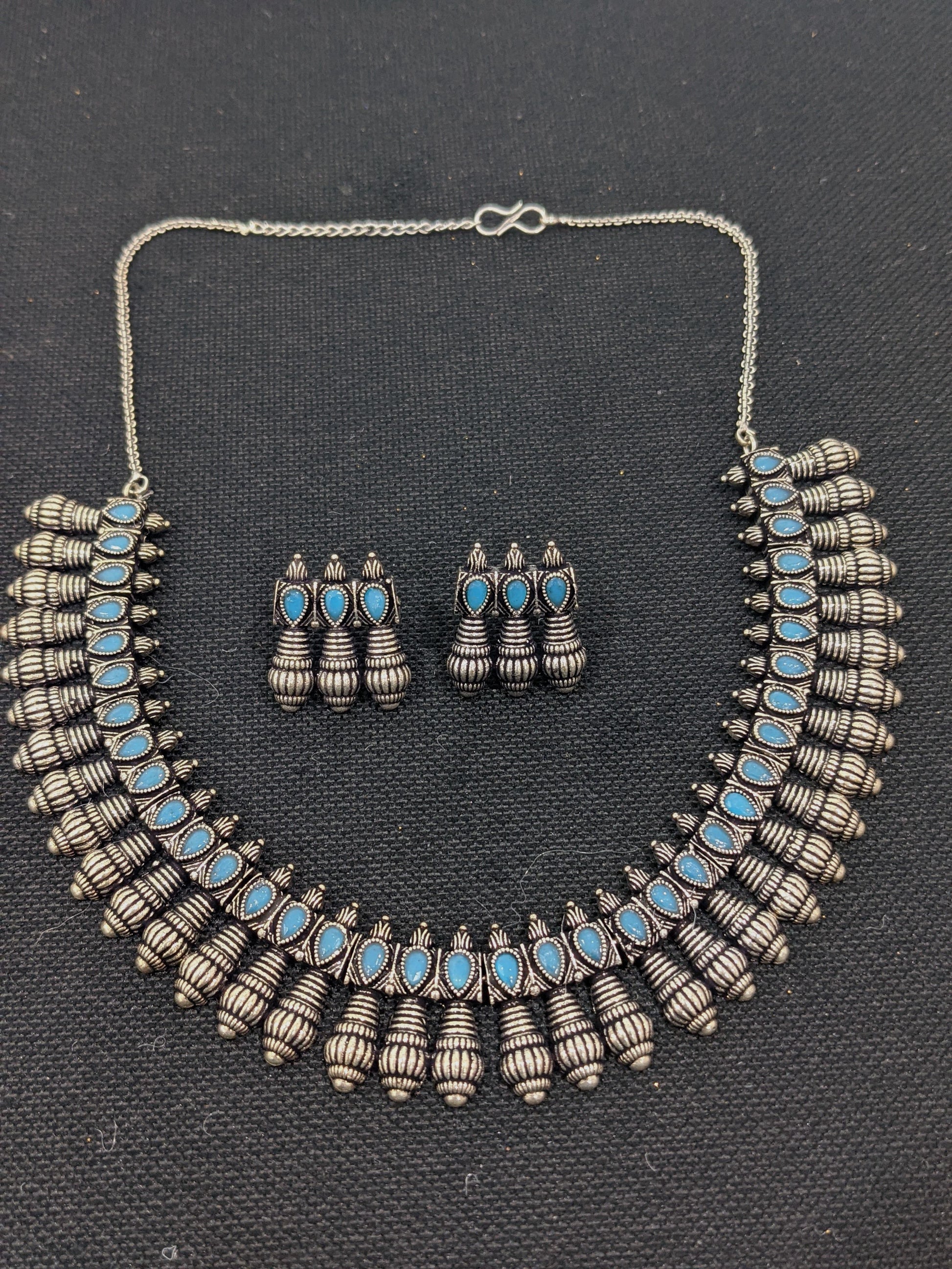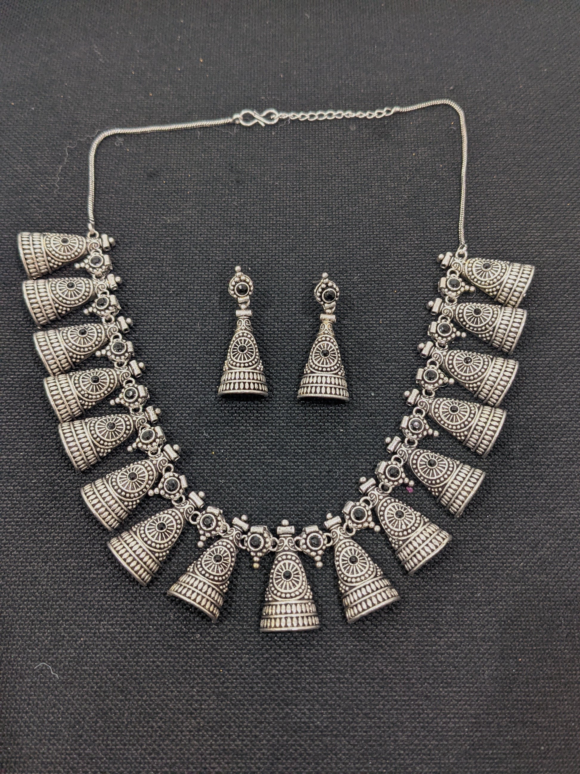 CLEARANCE SALE / Oxidized silver Choker Necklace and Earrings set