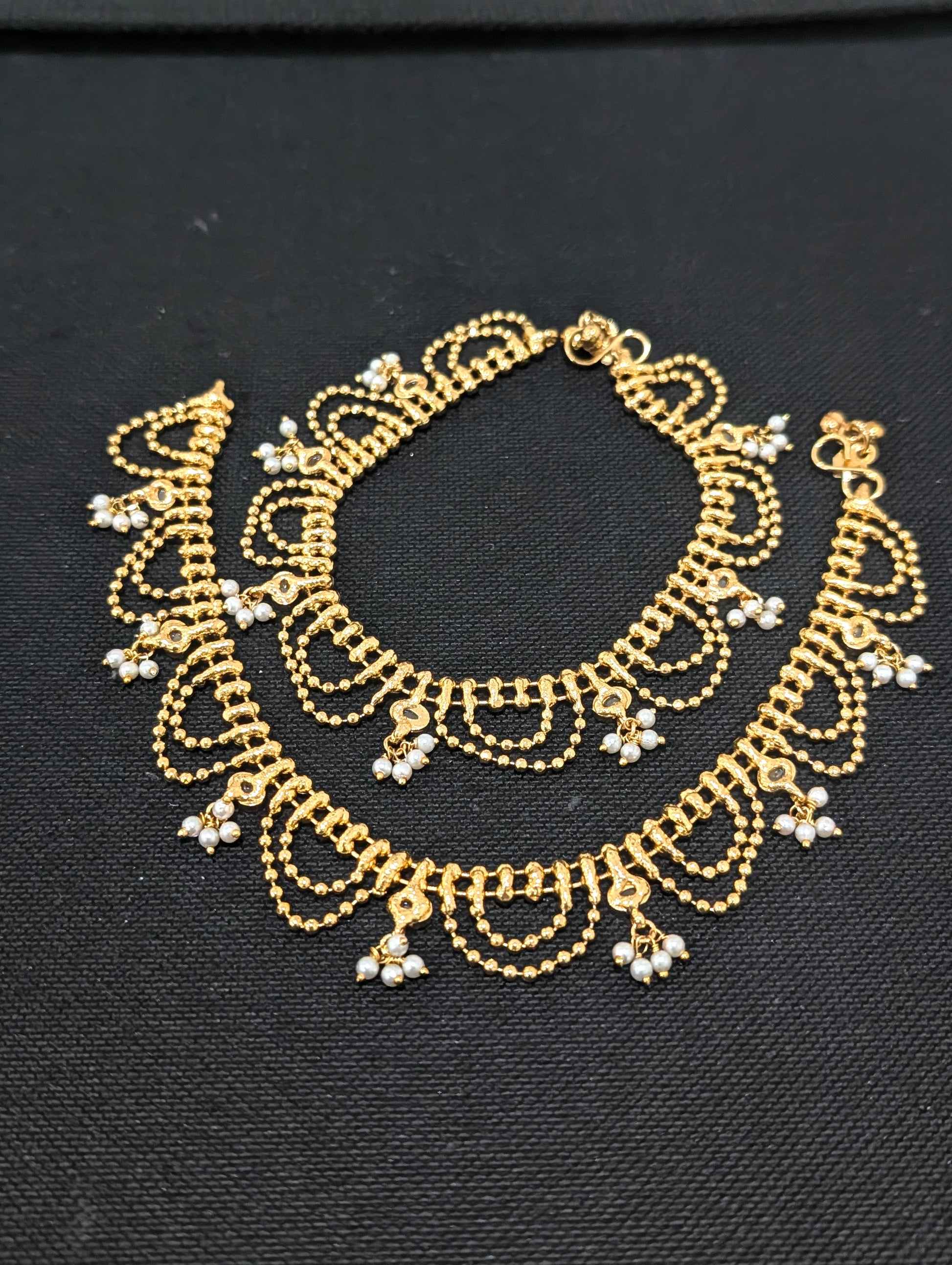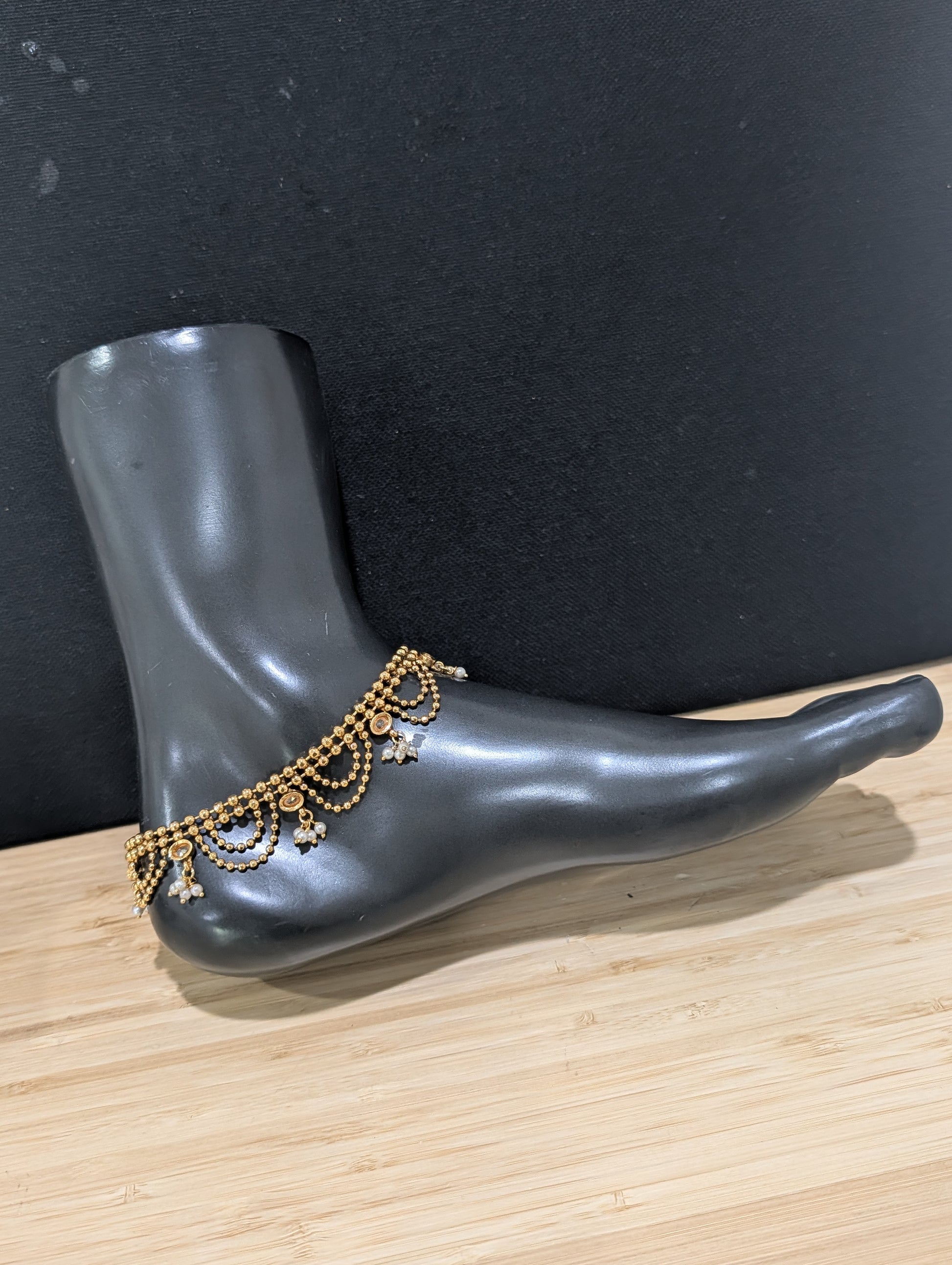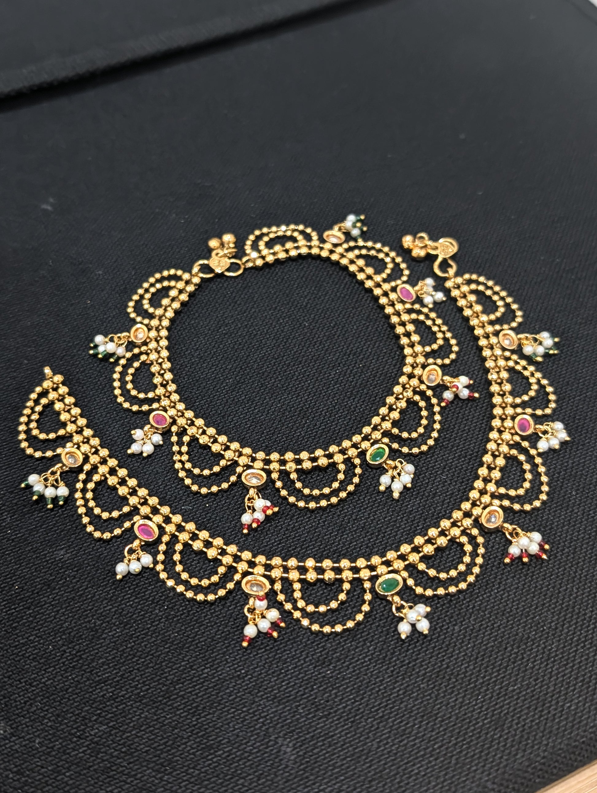 Dual line ball chain Gold plated Polki Anklets
