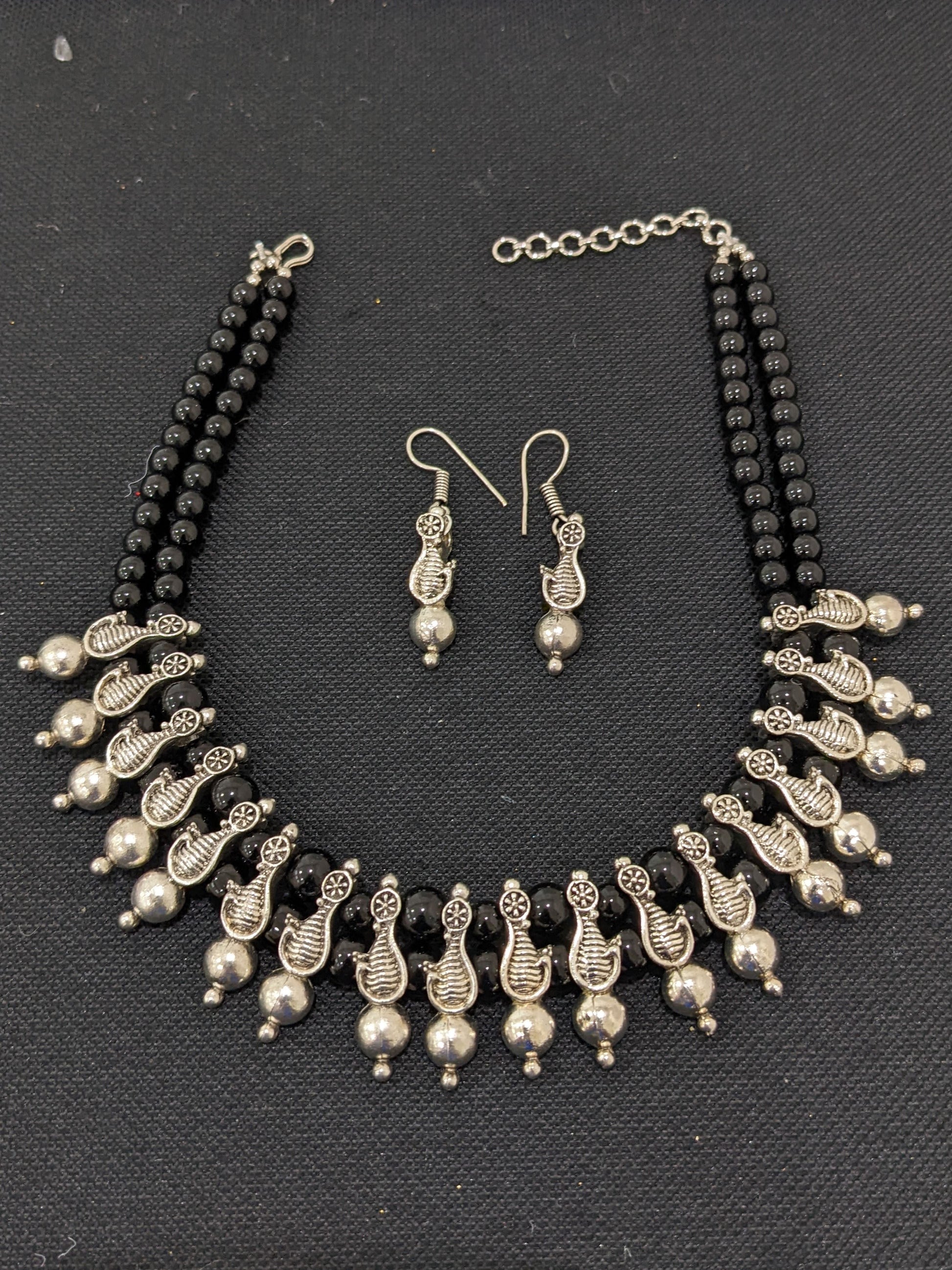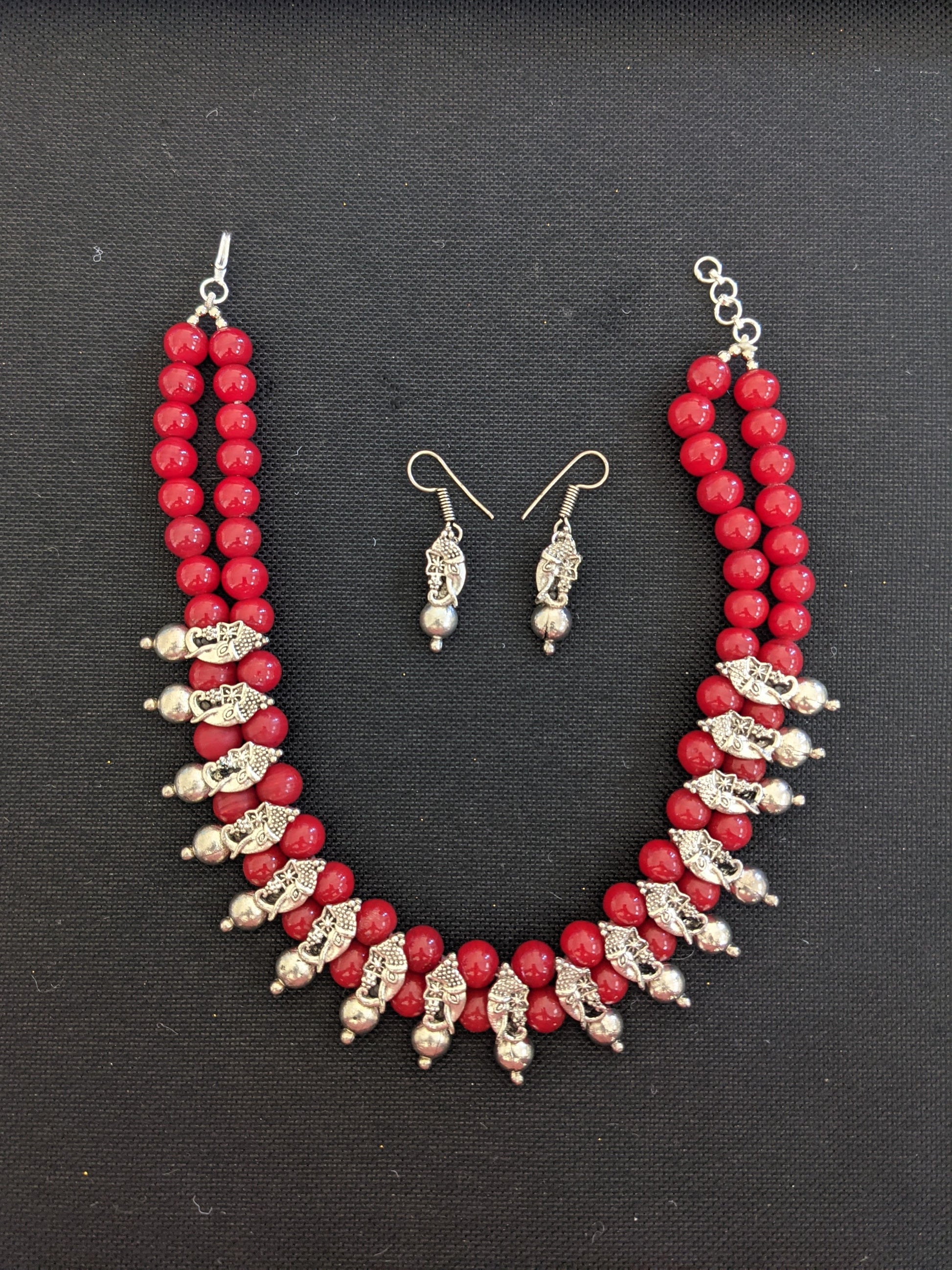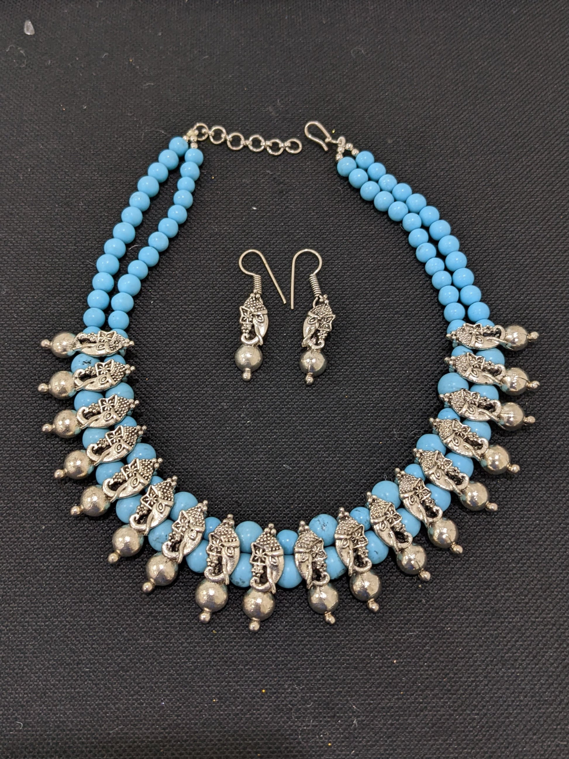 Dual strand bead Charm choker Necklace and hook drop earrings set