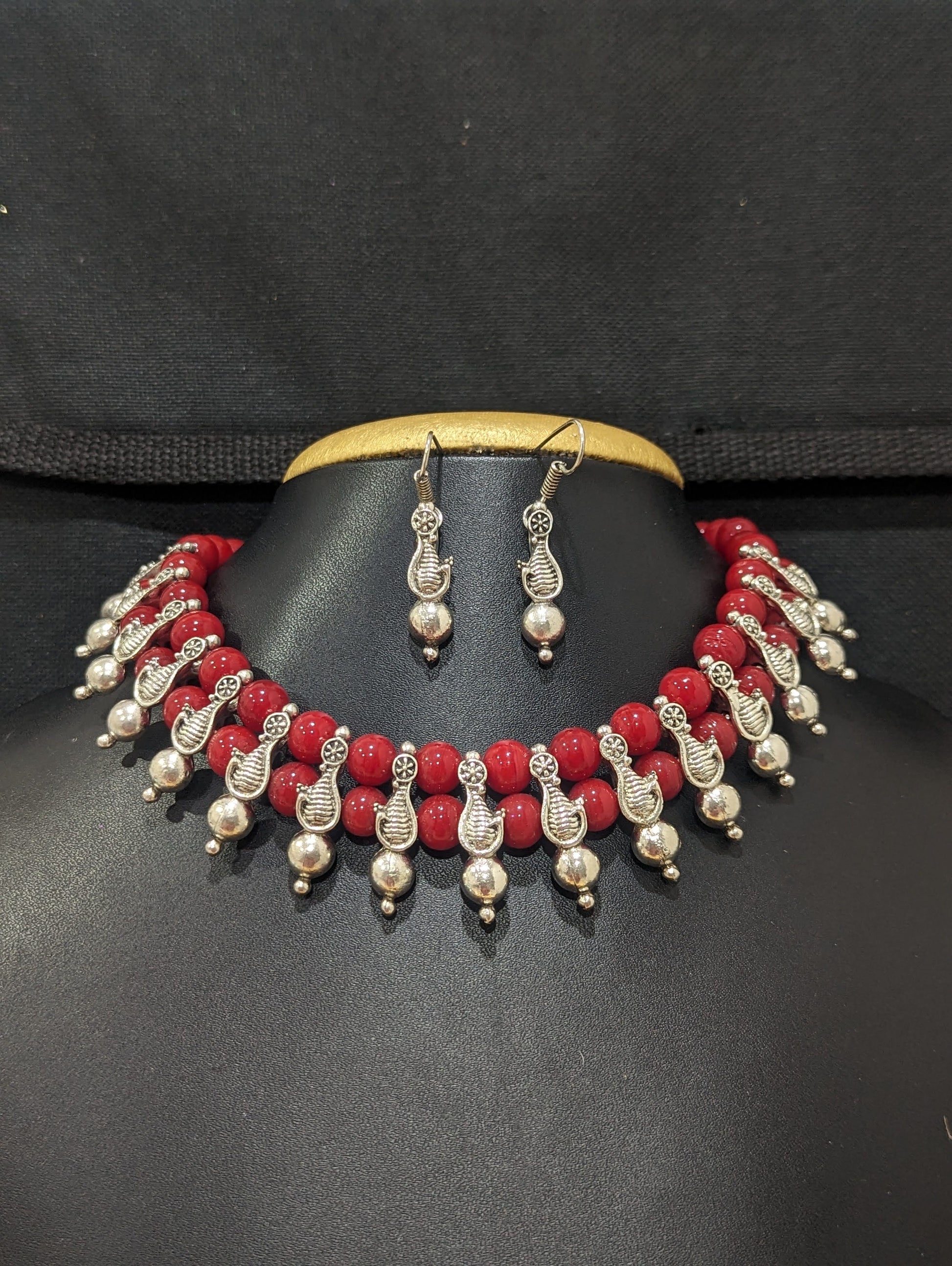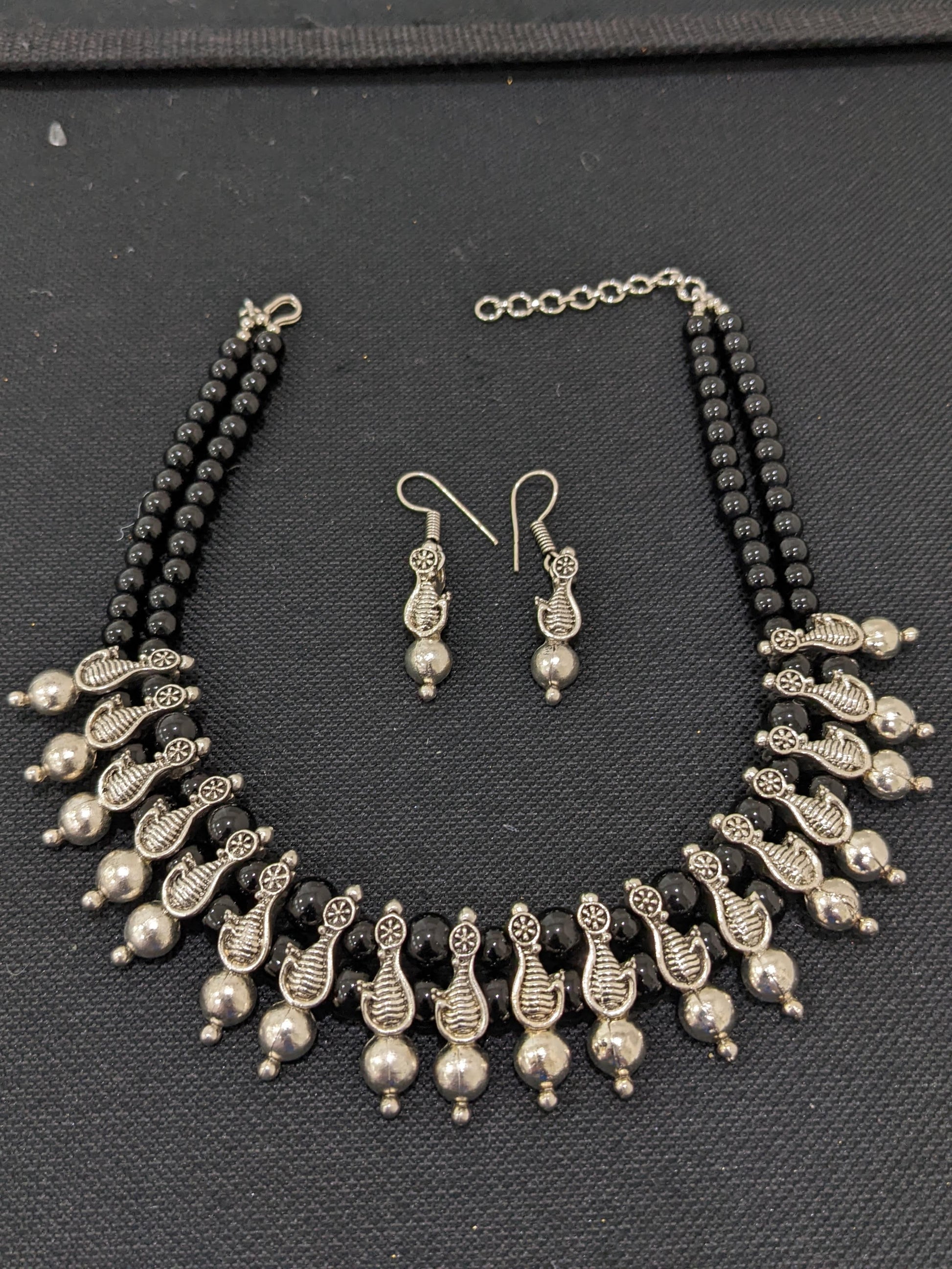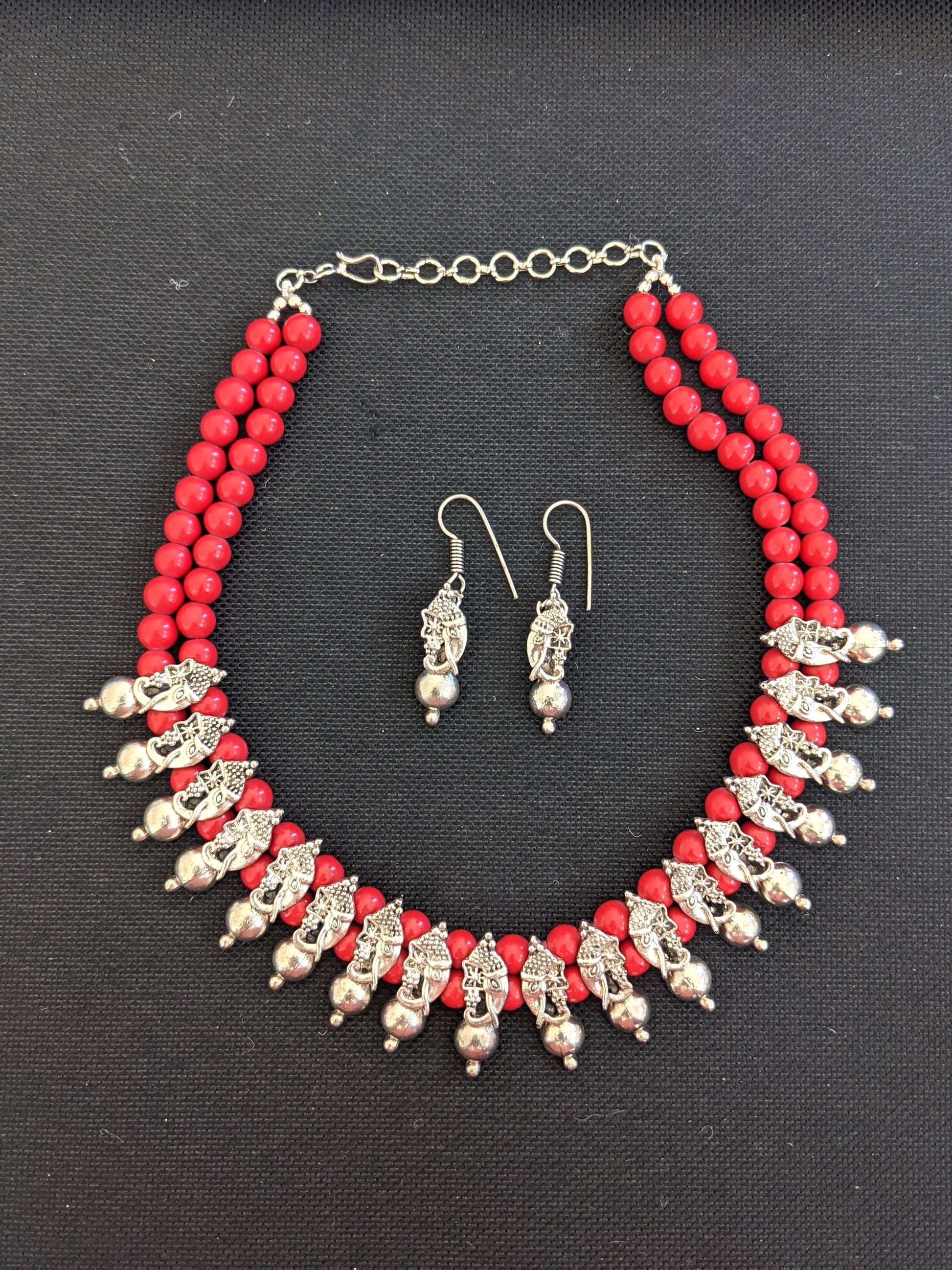Dual strand bead Charm choker Necklace and hook drop earrings set