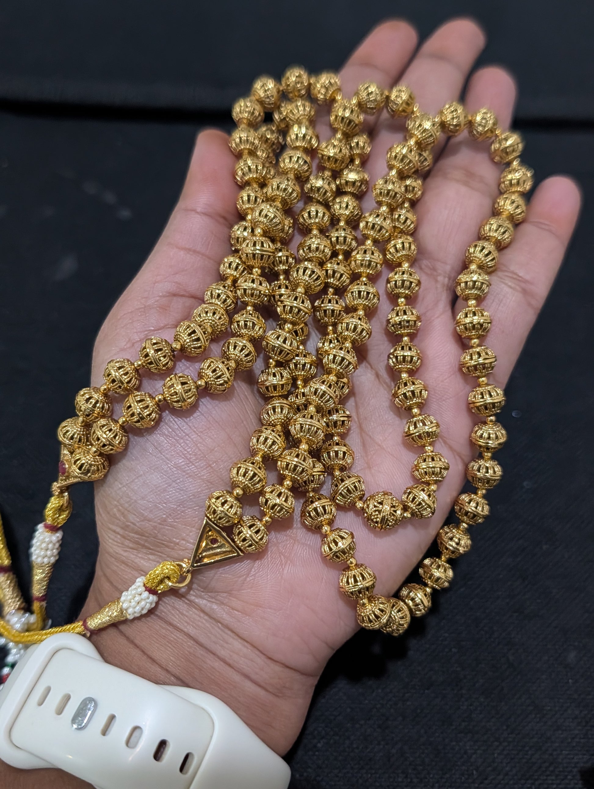 Chain minimum length: 20 inches. Necklace comes with adjustable gold jari cord.