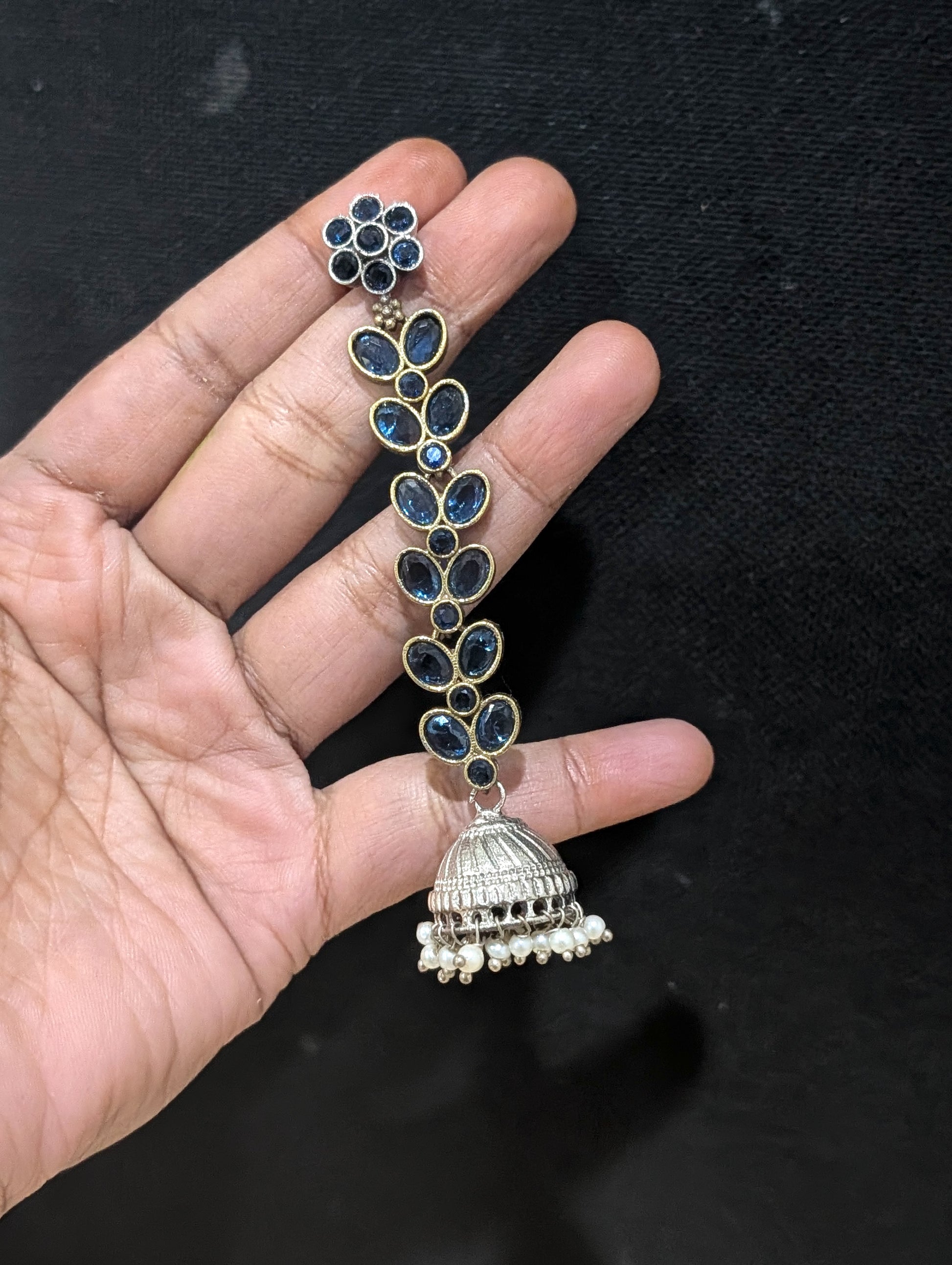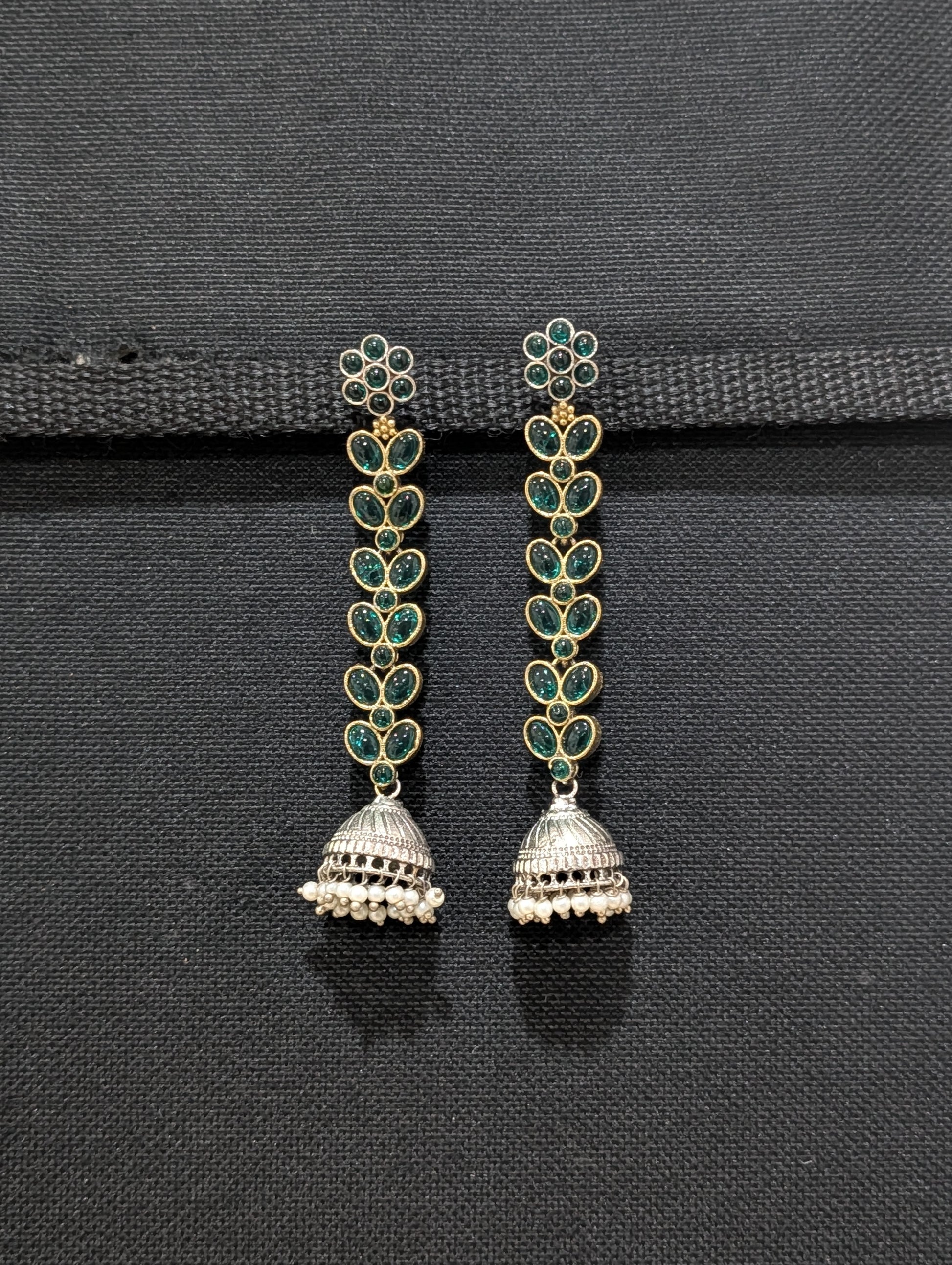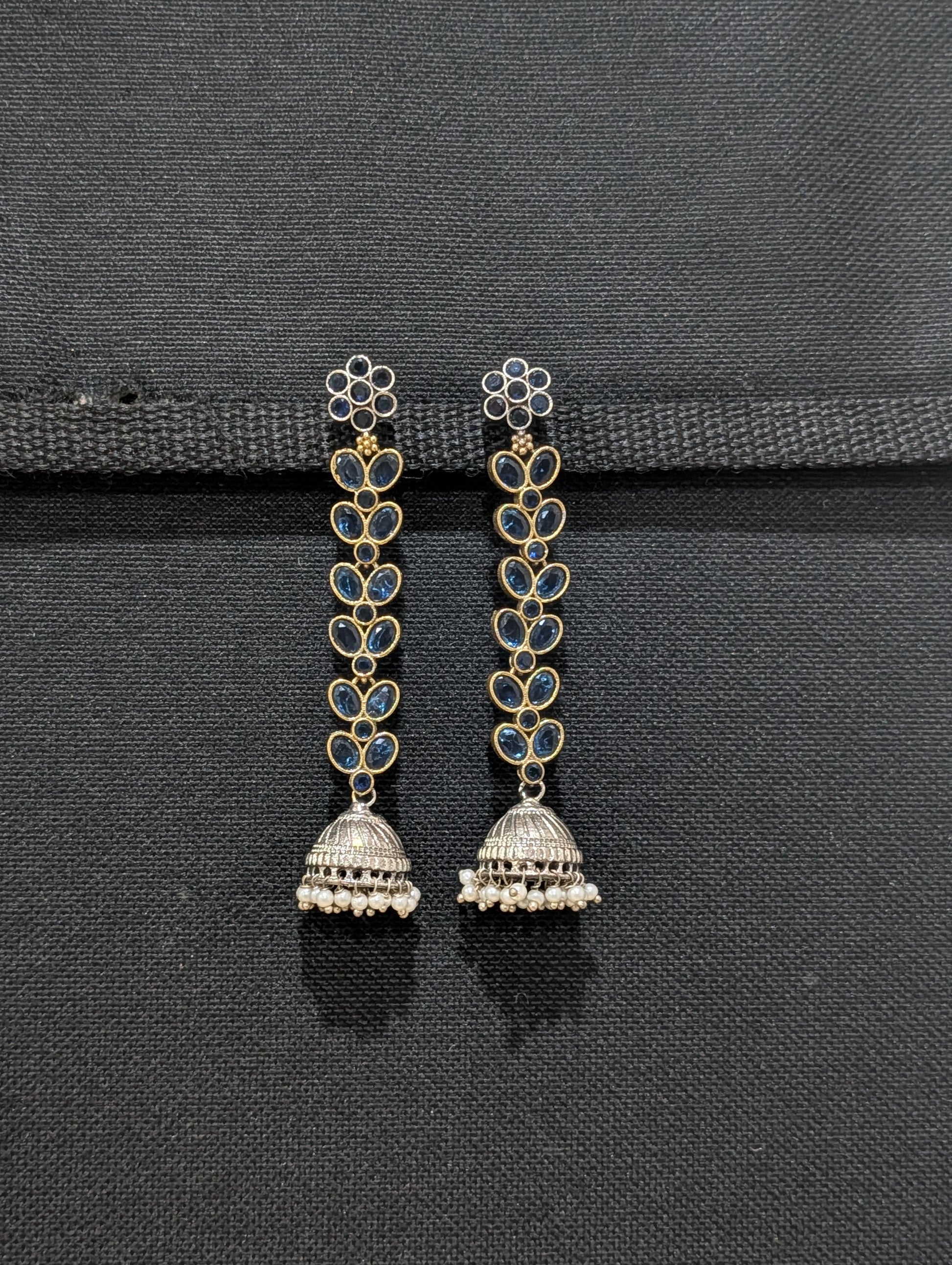 CZ stone pasted Long Dangle Jhumka Earrings.