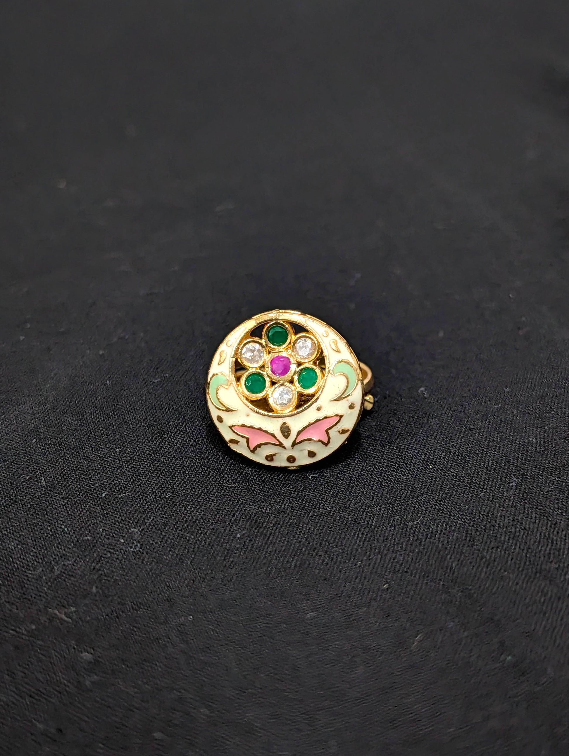 Enamel work with CZ stone adjustable ring.