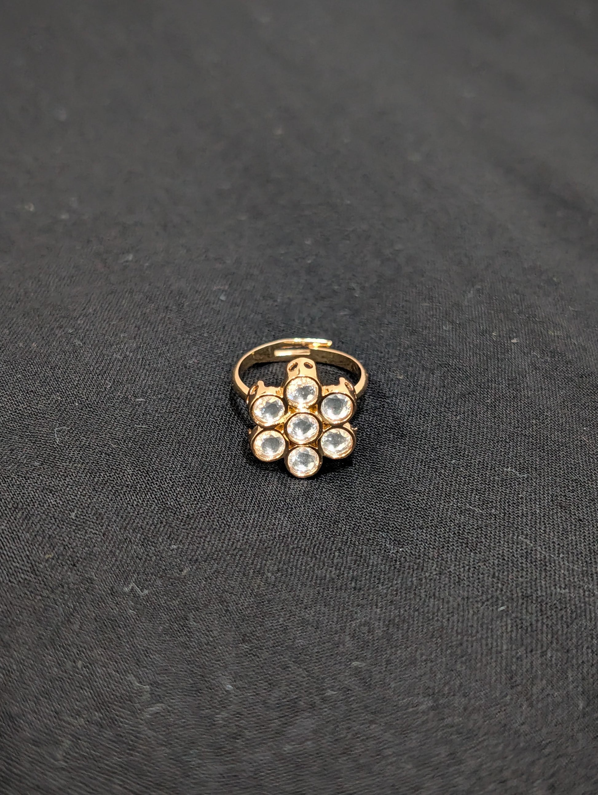 Base material is made of copper alloy. Plae Rose Gold polished with Kundan stones.