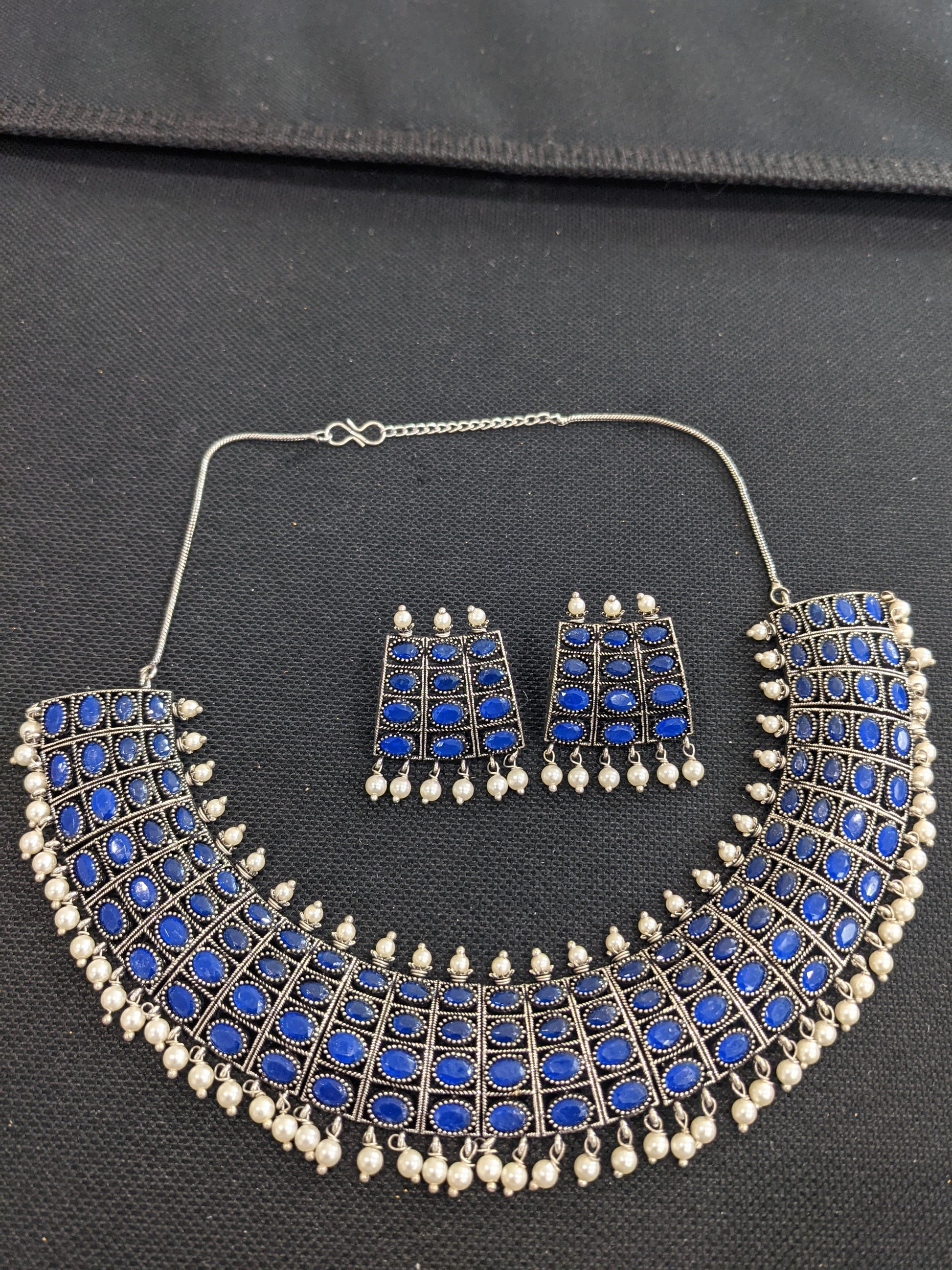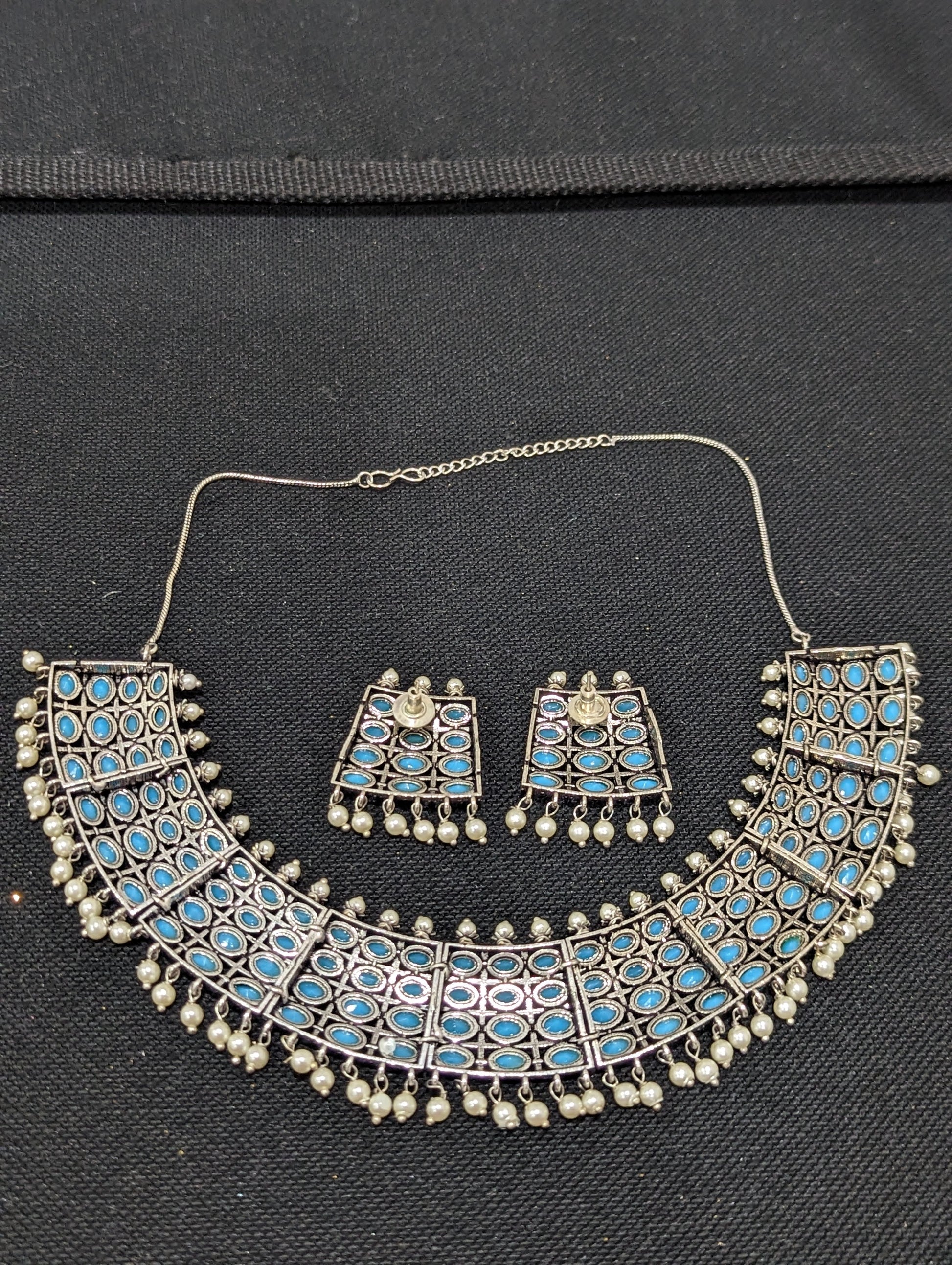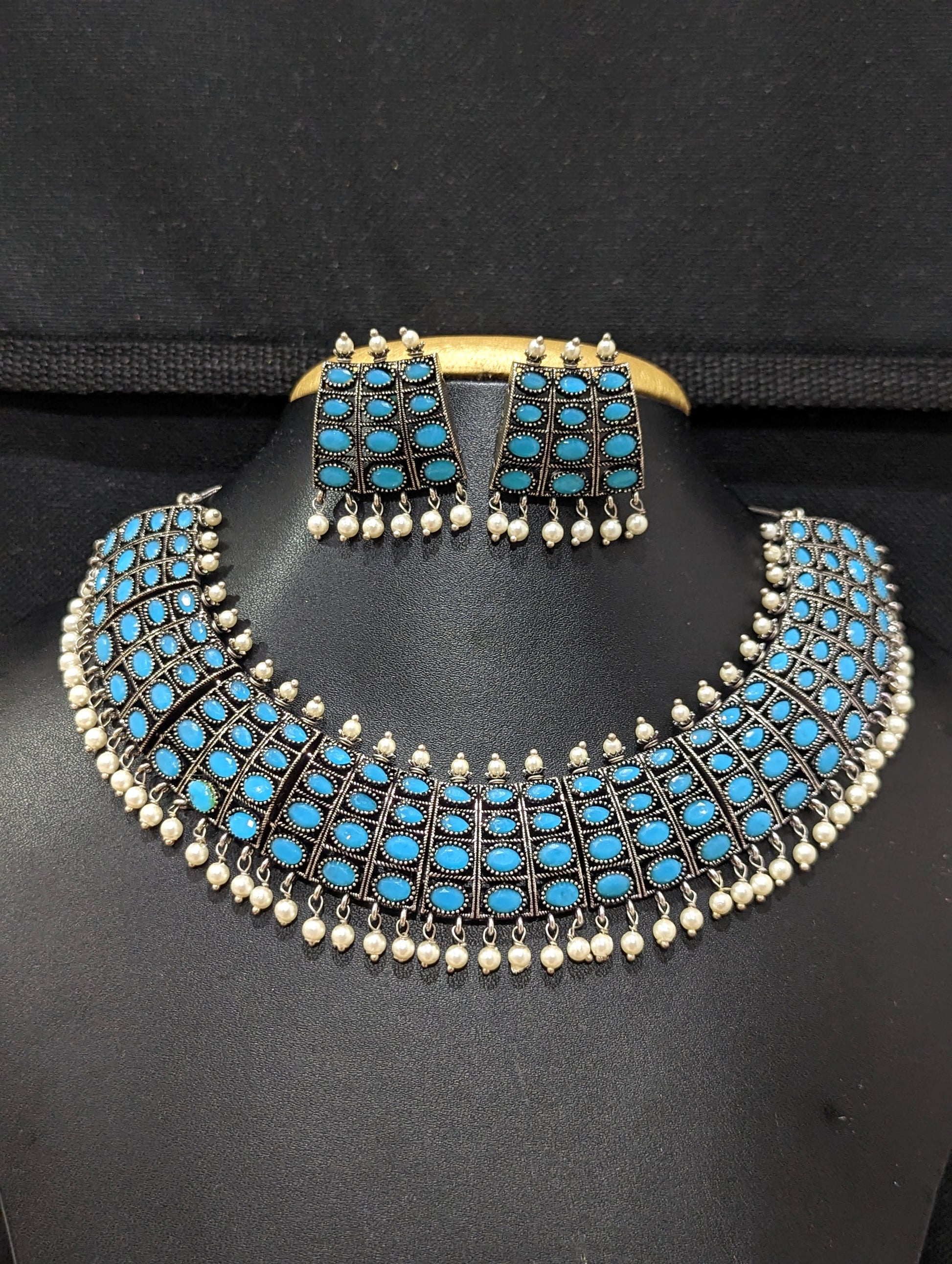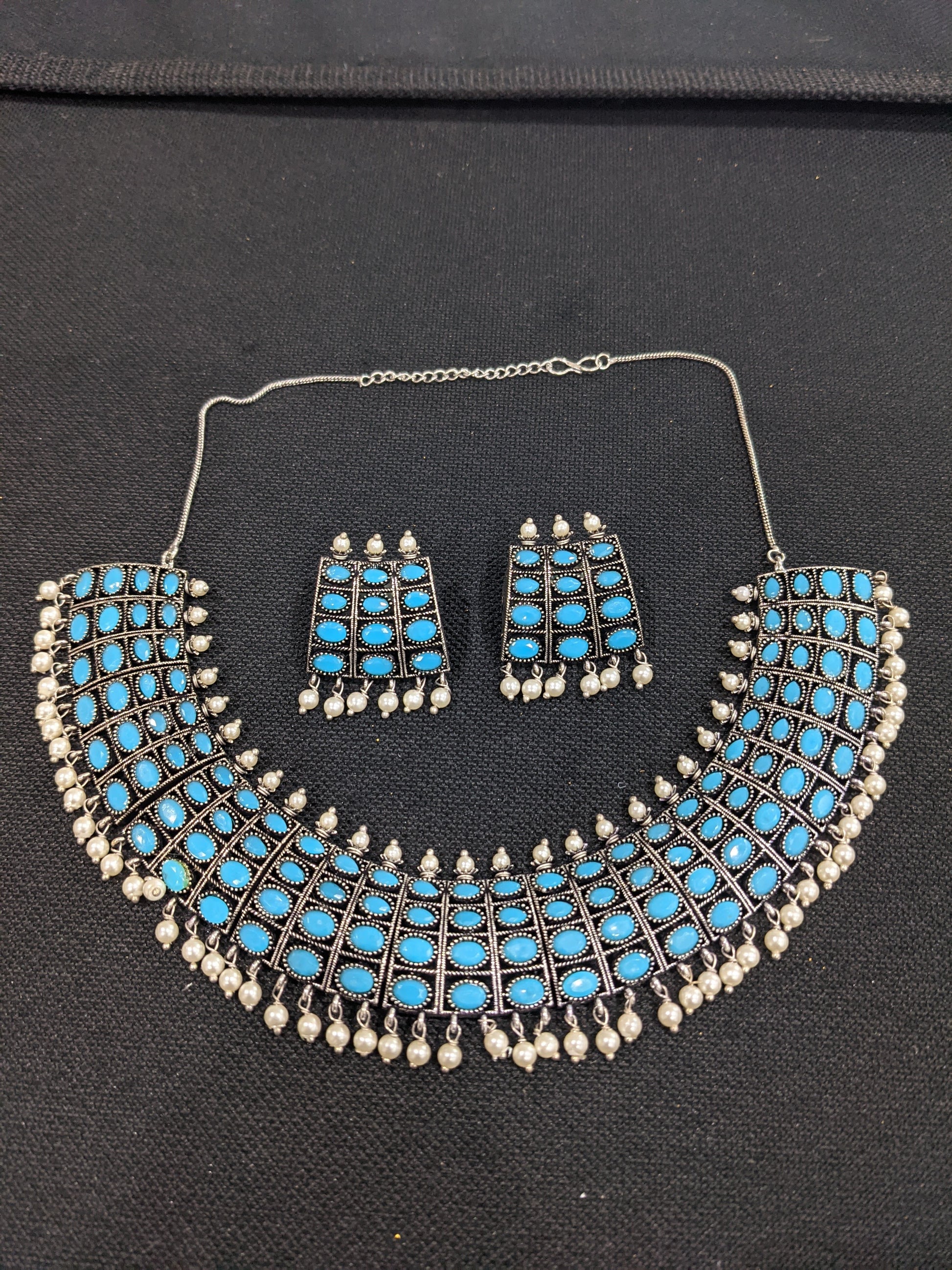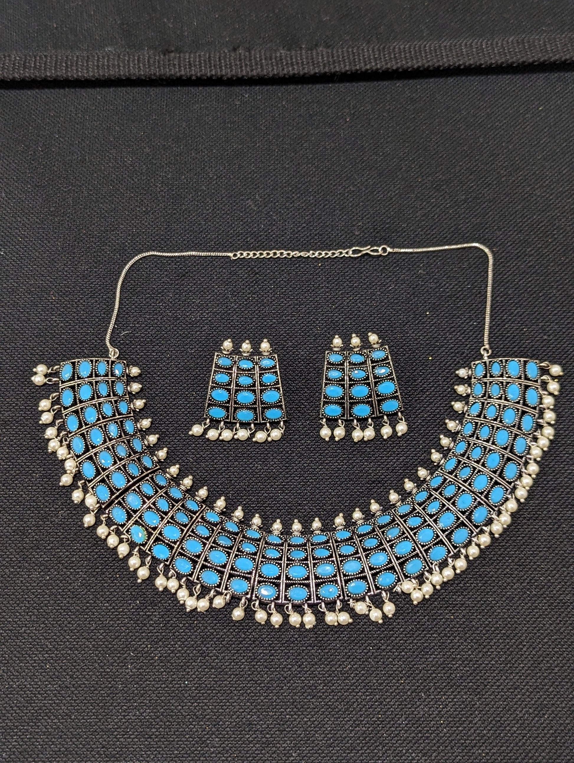 Oxidized silver pearl bead dangle Choker set.