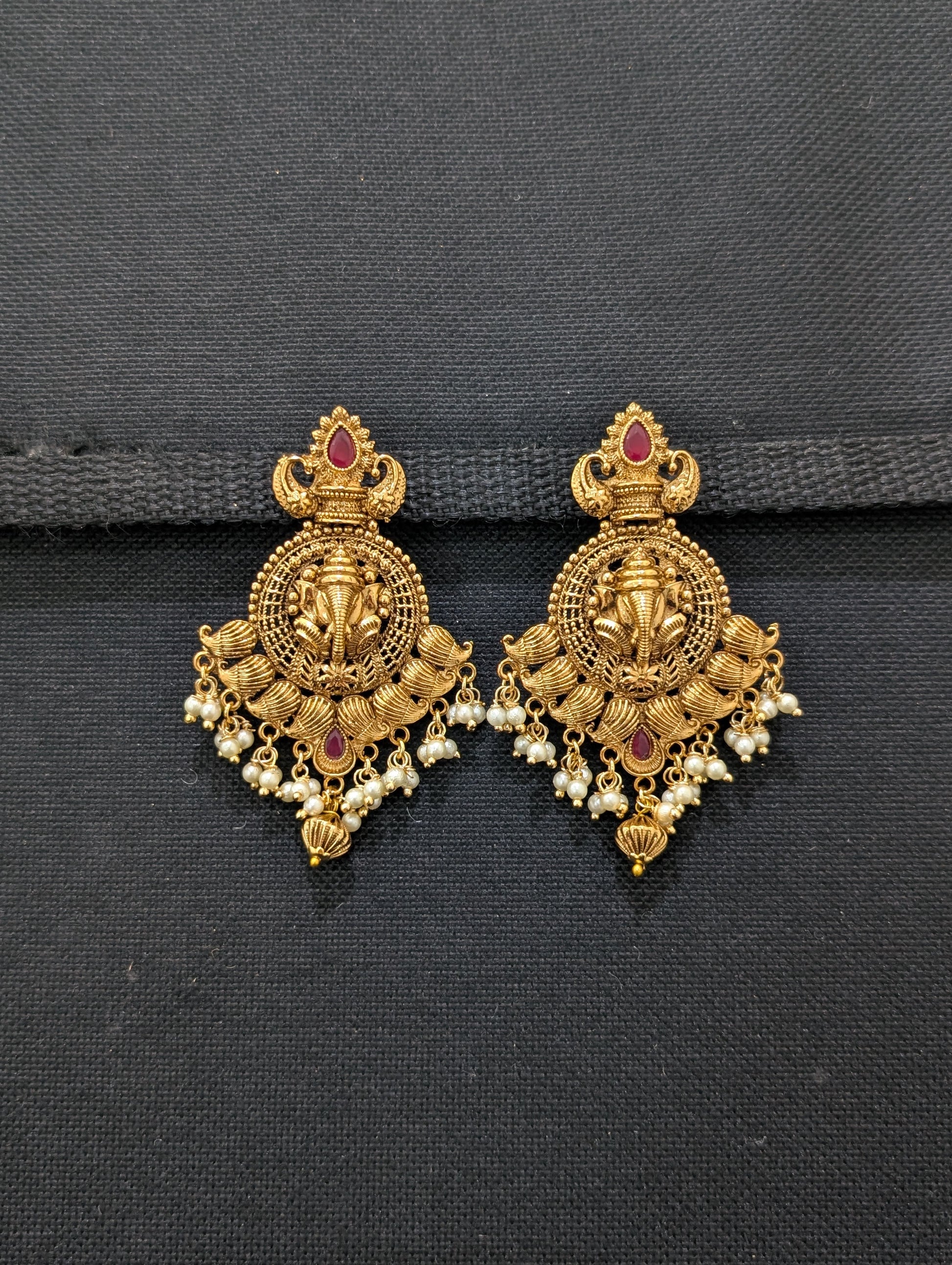 Antique gold plated CZ stone Large Chandbali Earrings.