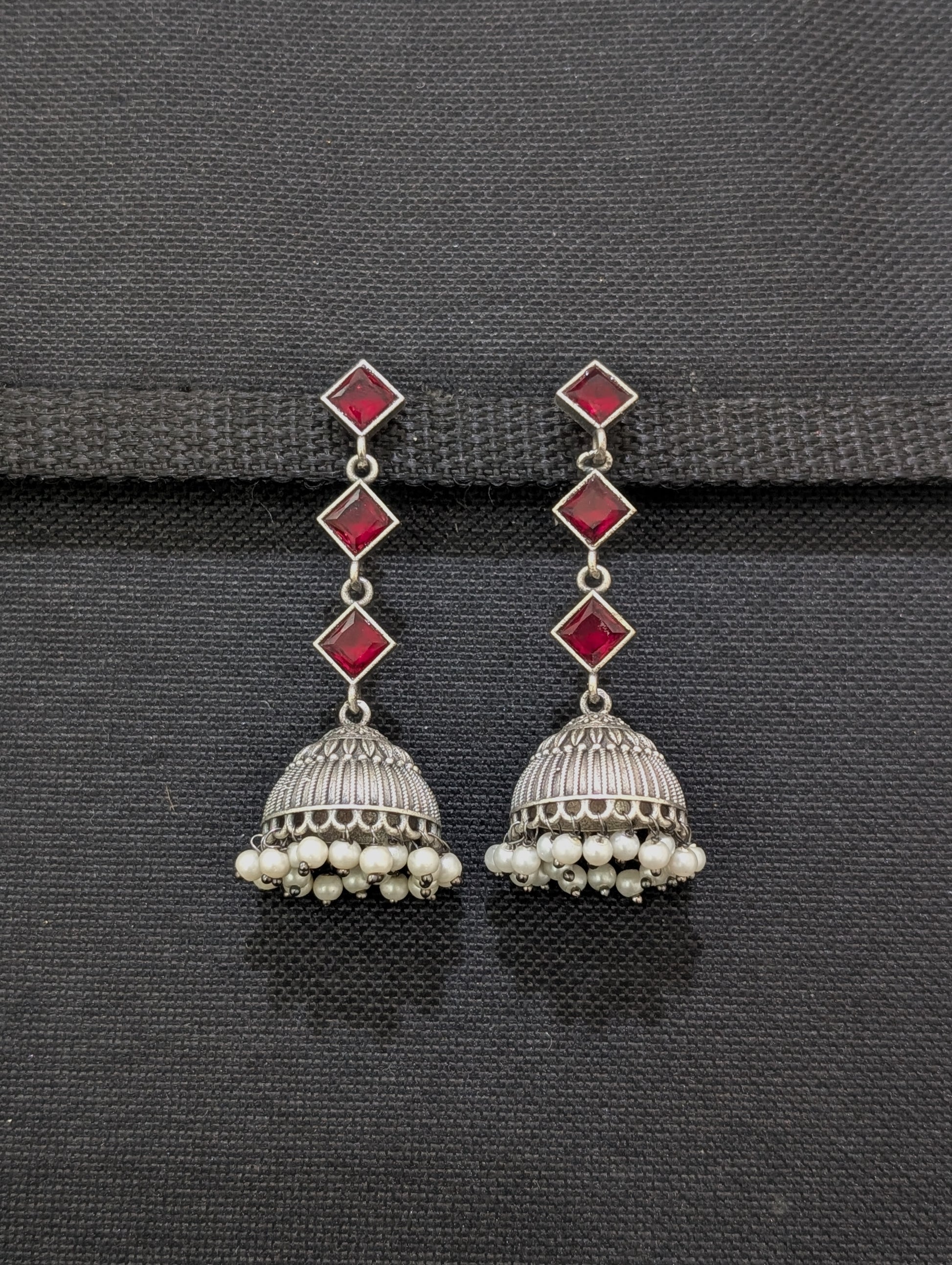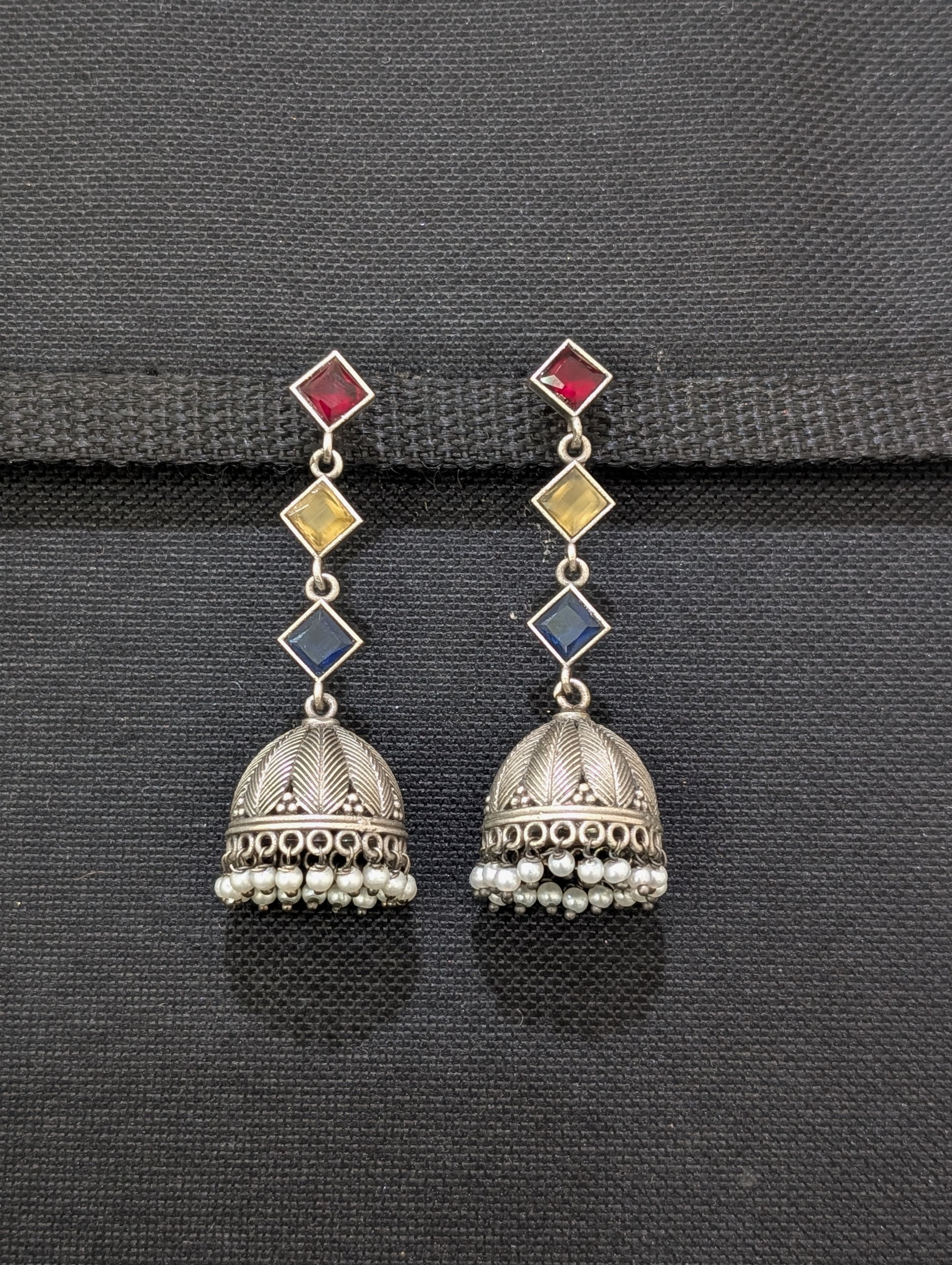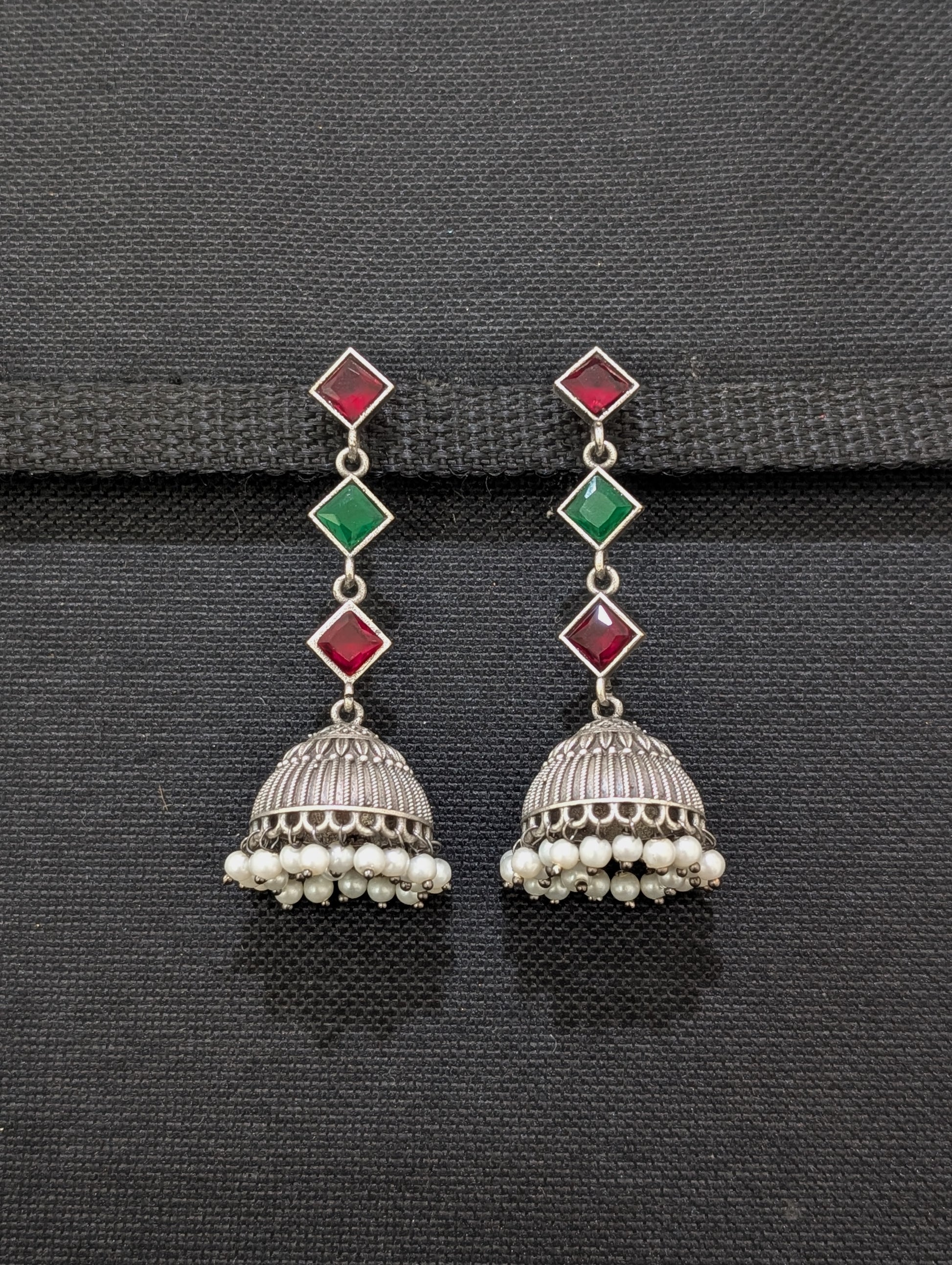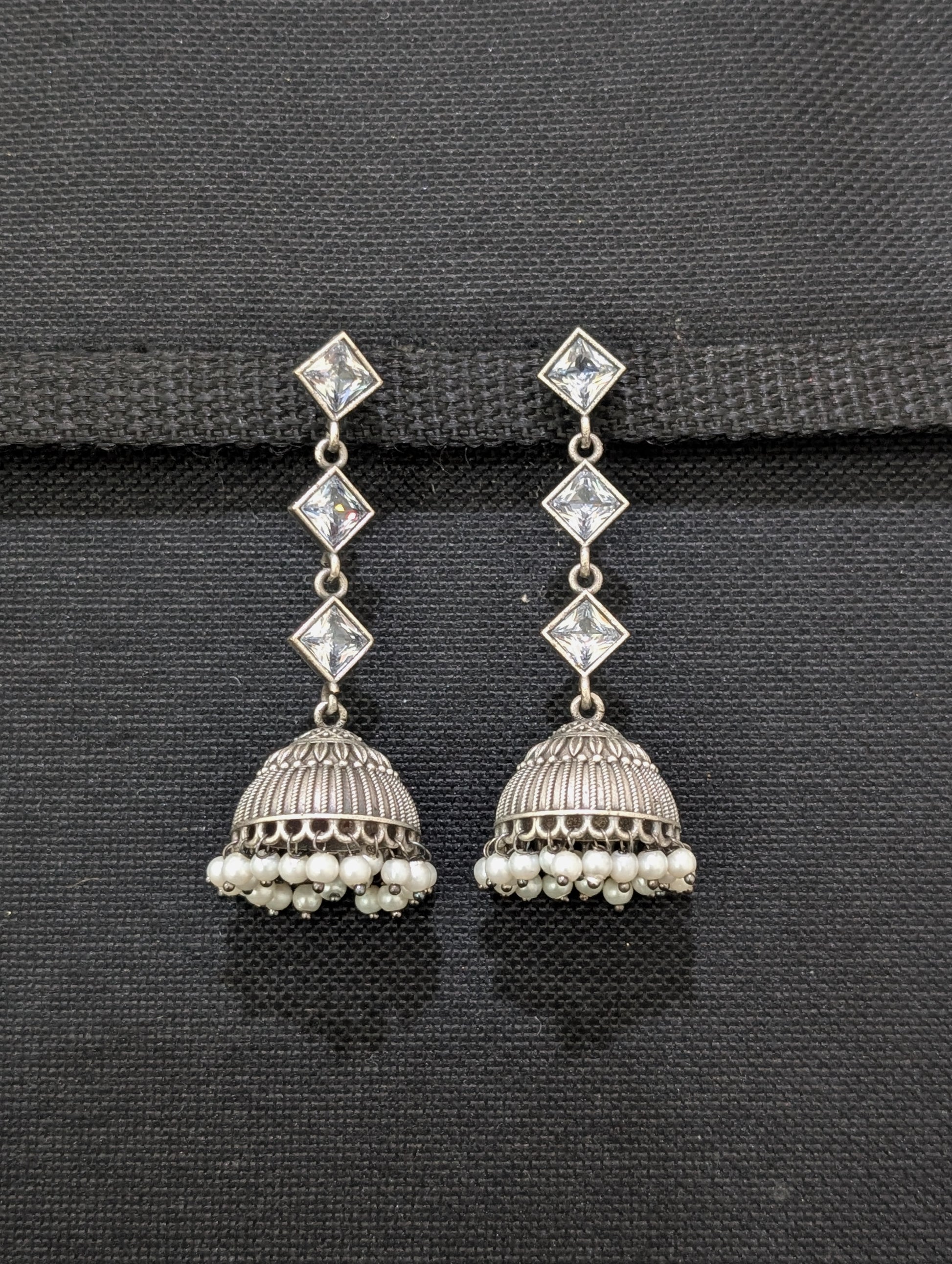 German silver CZ Dangle Jhumka earrings