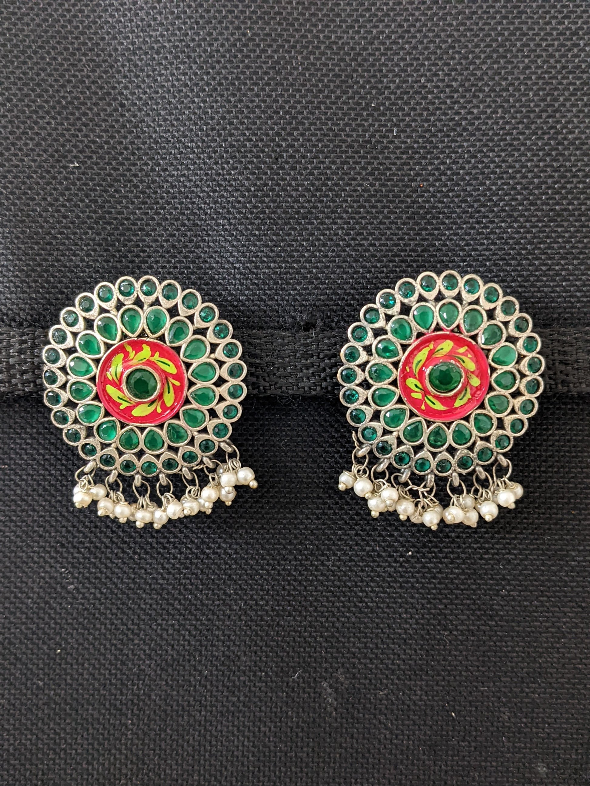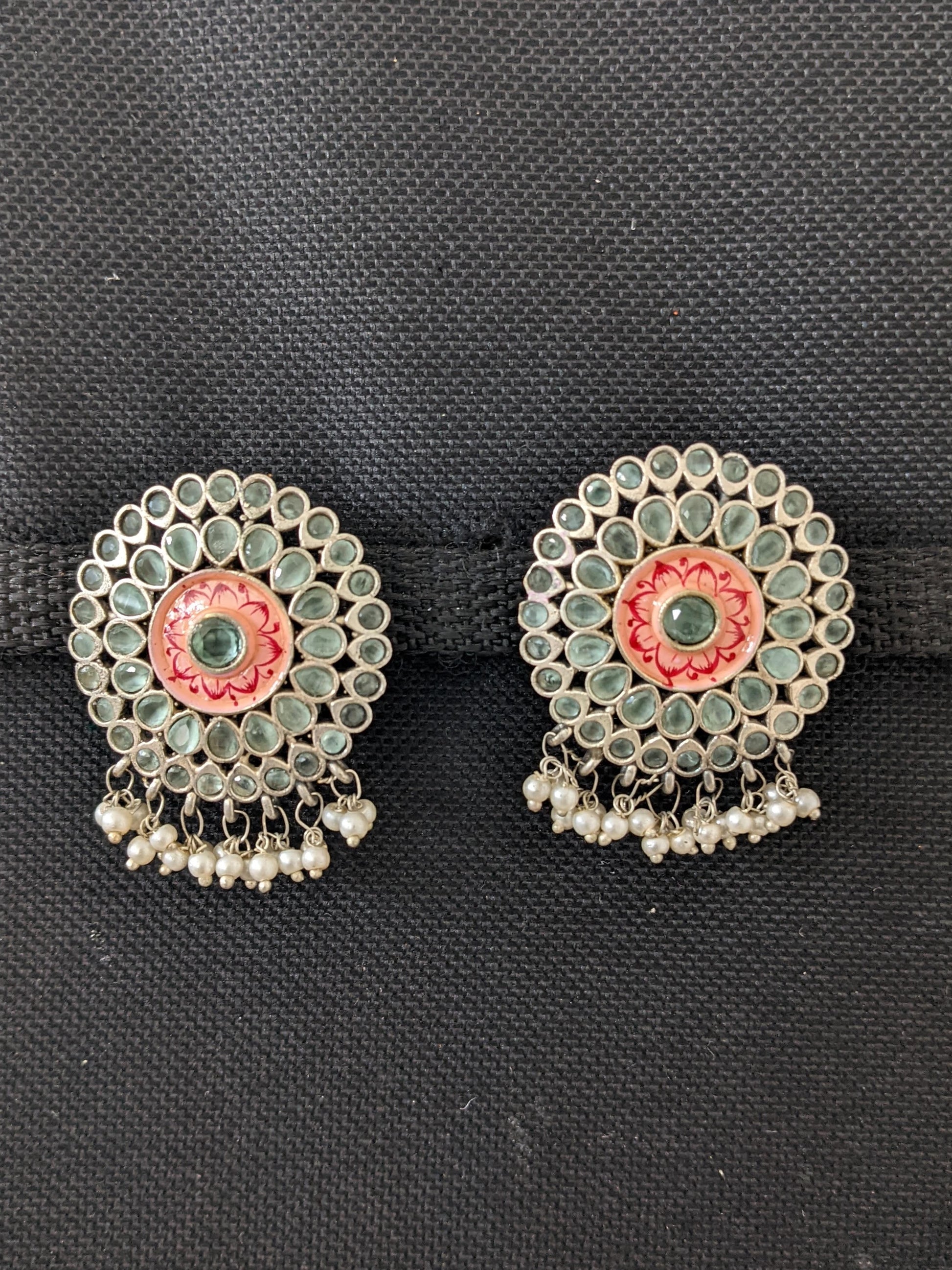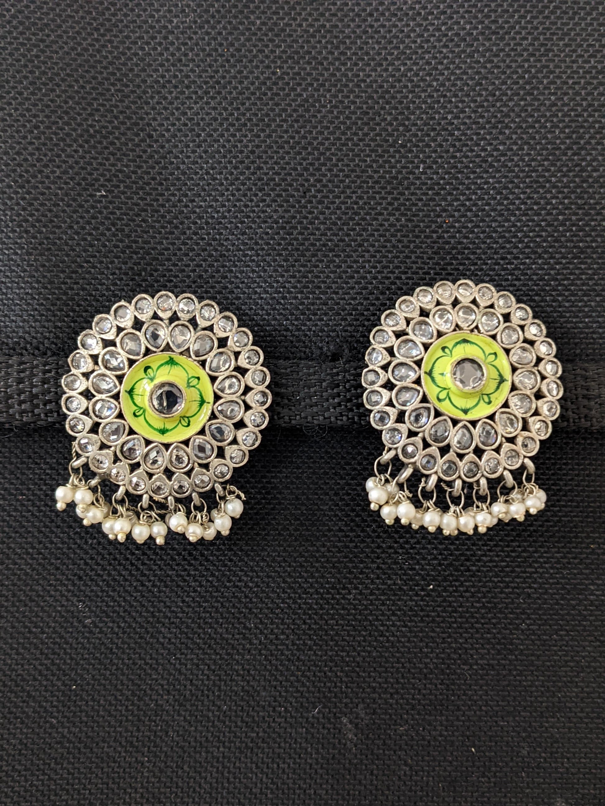 CZ stone pasted enamel work and pearl cluster dangle Stud Earrings.