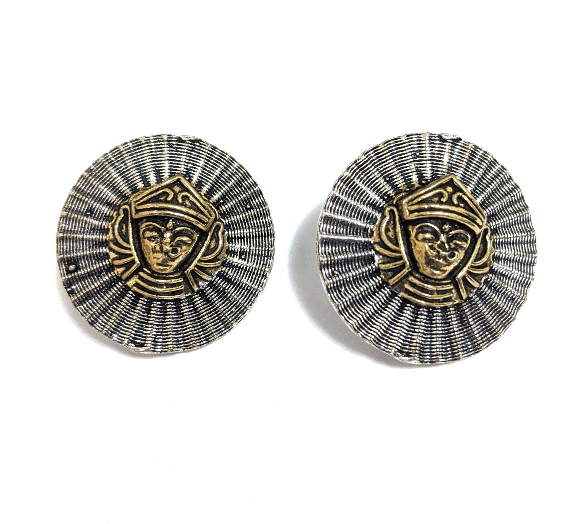 Goddess Durga 2 tone Oxidized Large Stud Earrings