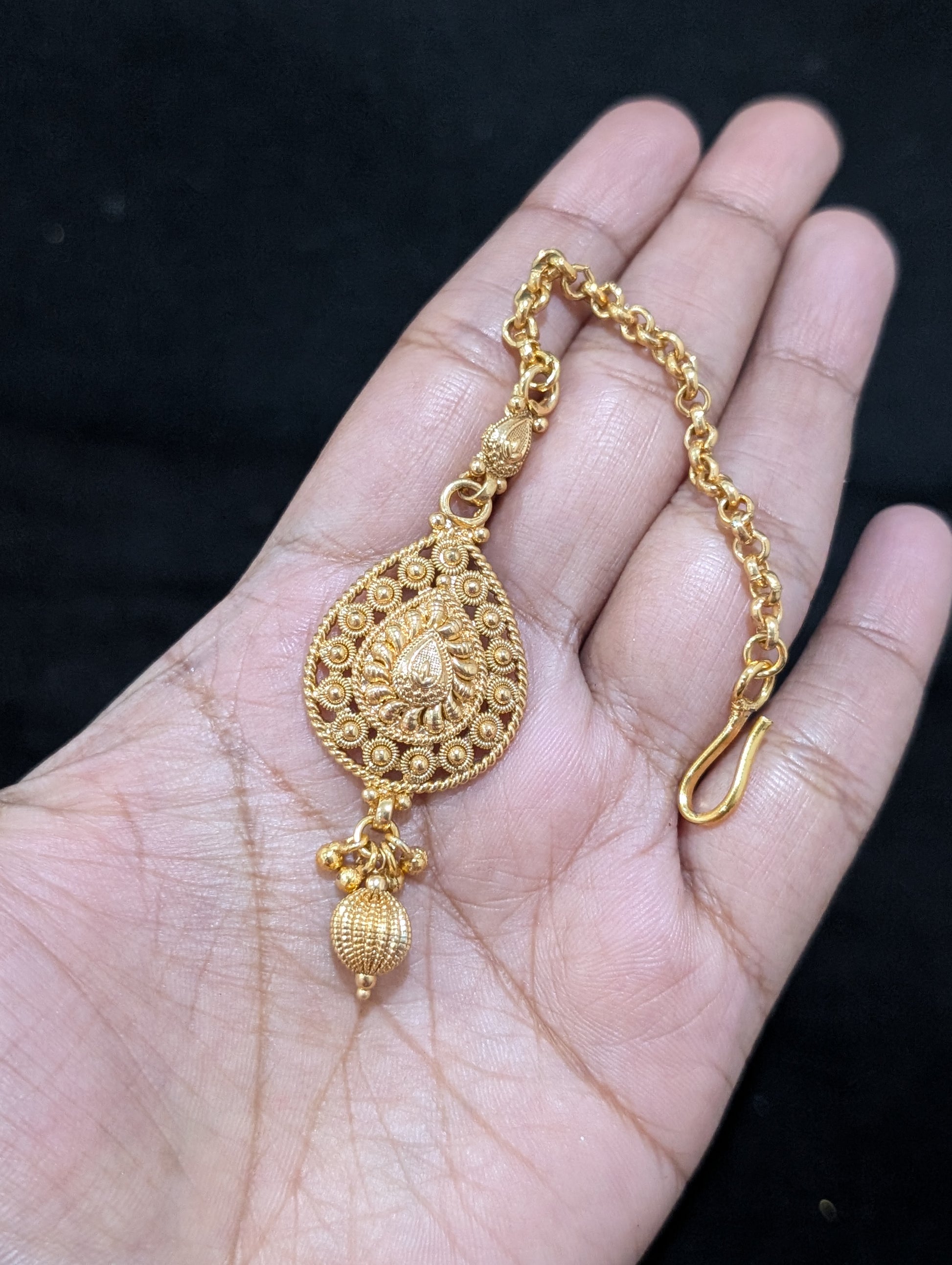 Maang Tikka length: 6 inches; width: 0.85 inches.