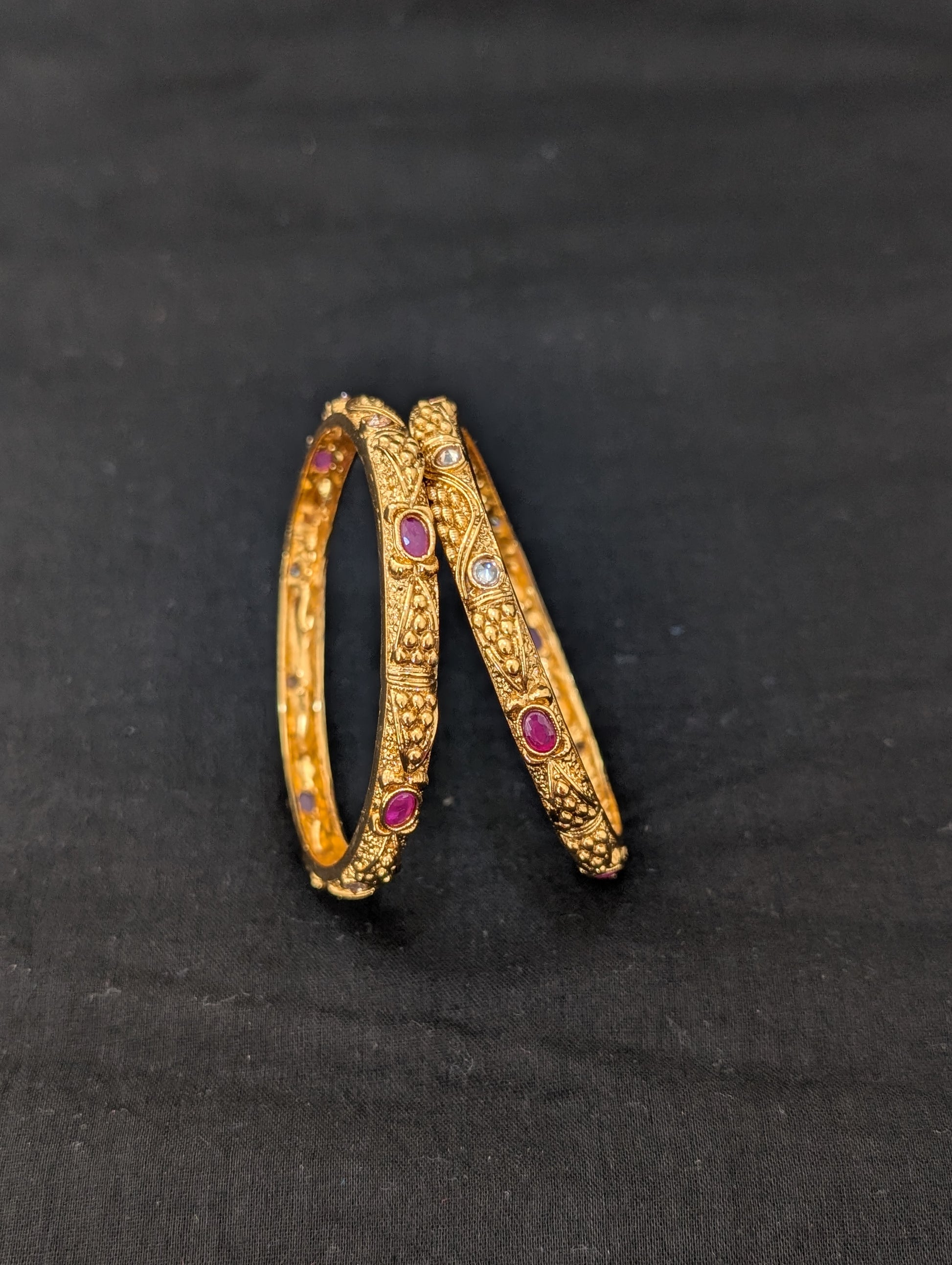 Ruby CZ and shiny polki stone pasted bangles.