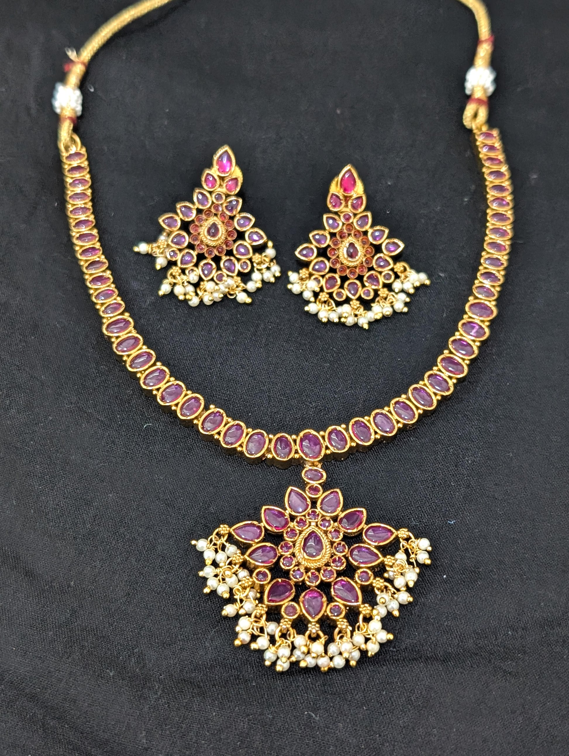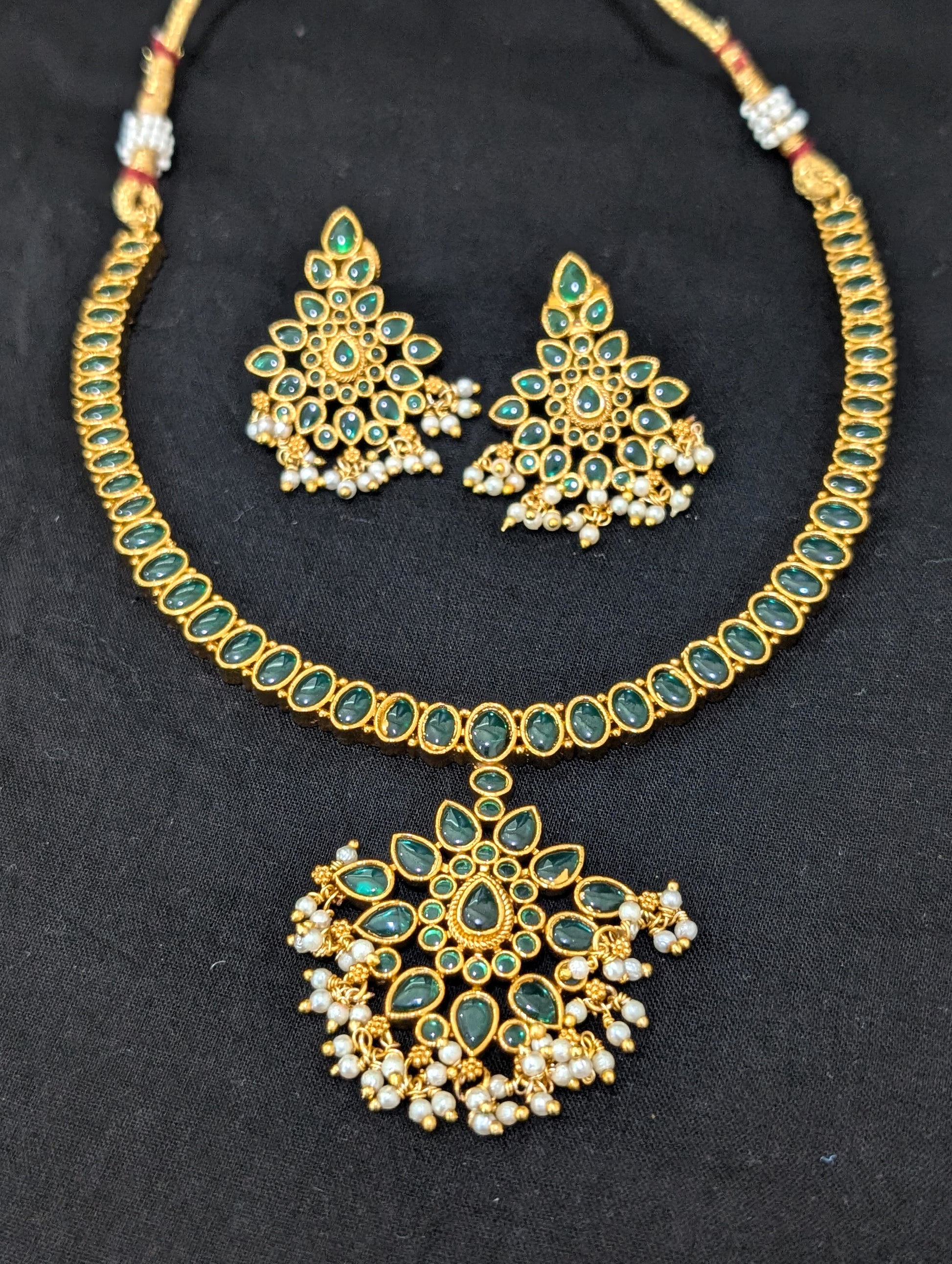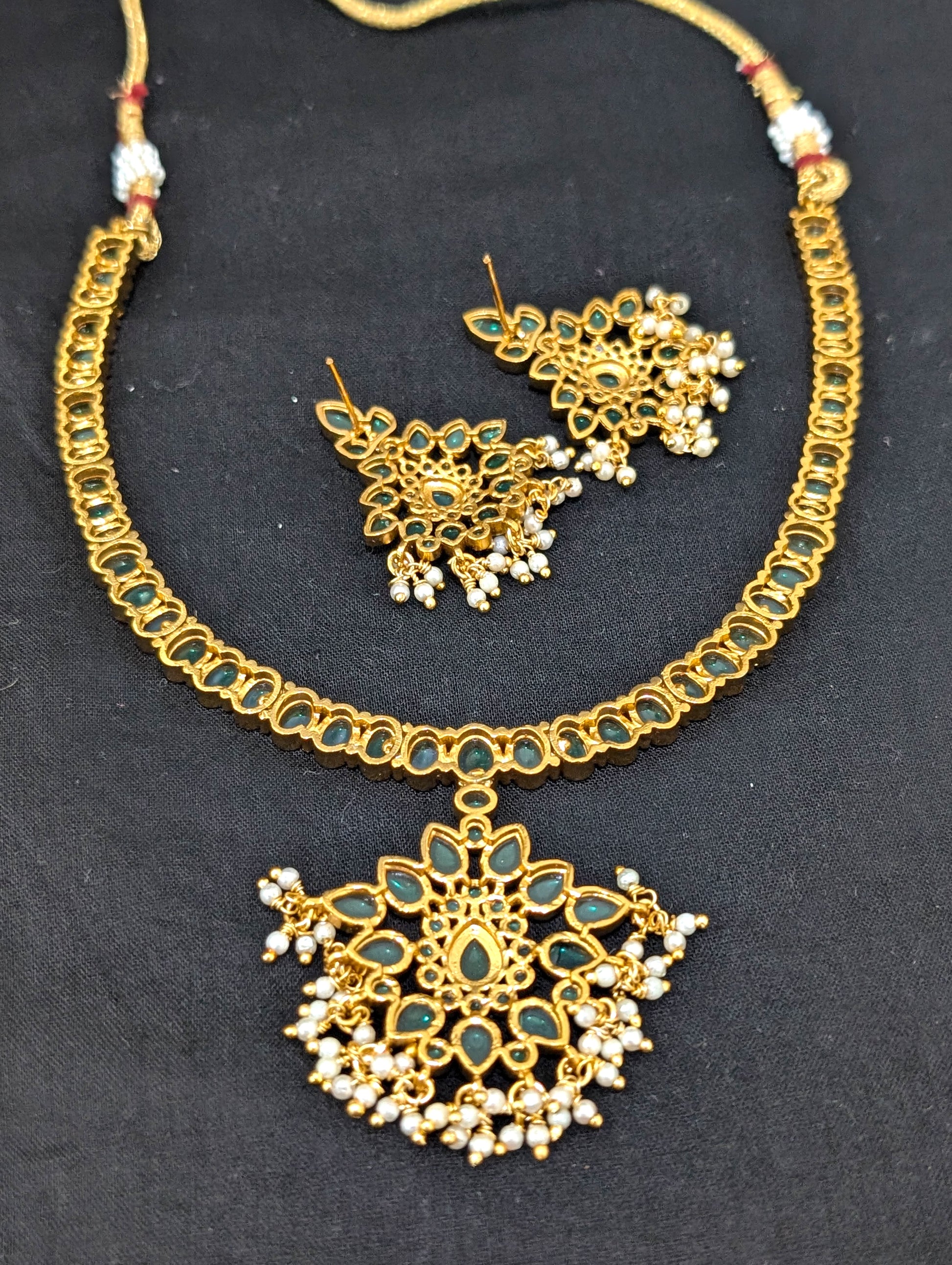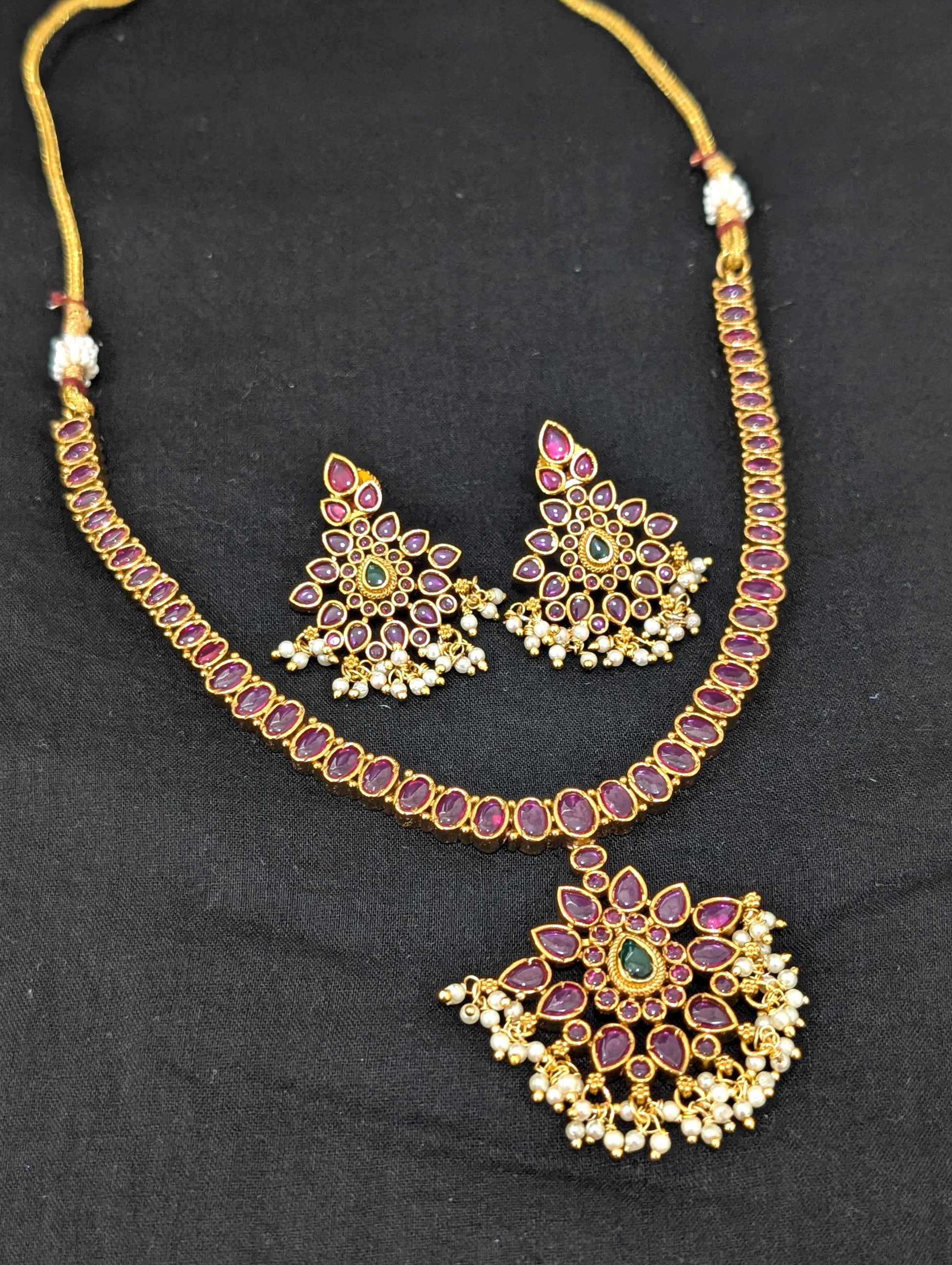 Adigai style necklace set. Necklace comes with adjustable gold jari cord.