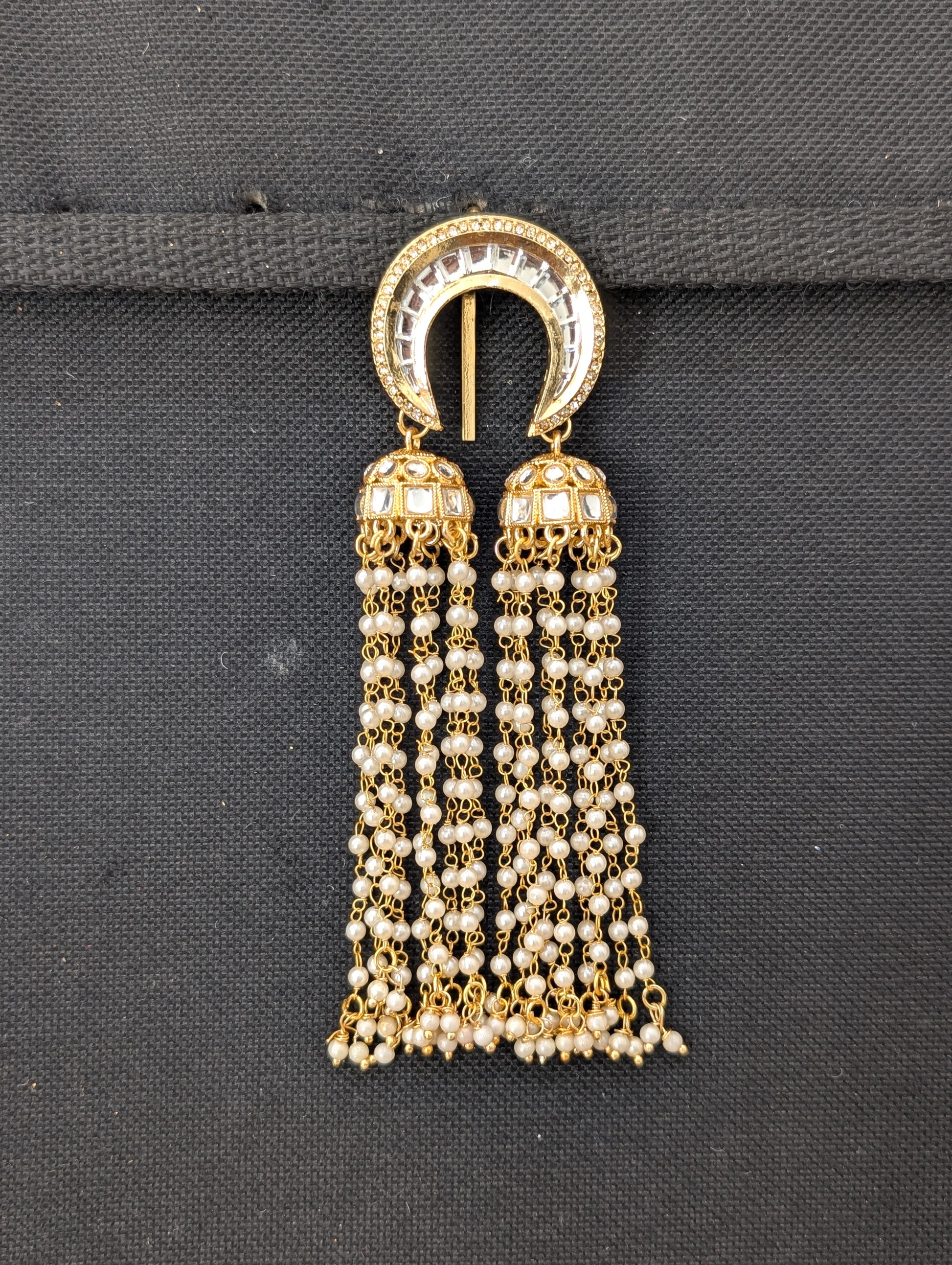 Glass kundan stone pasted Jhumka dangle Hair brooch.