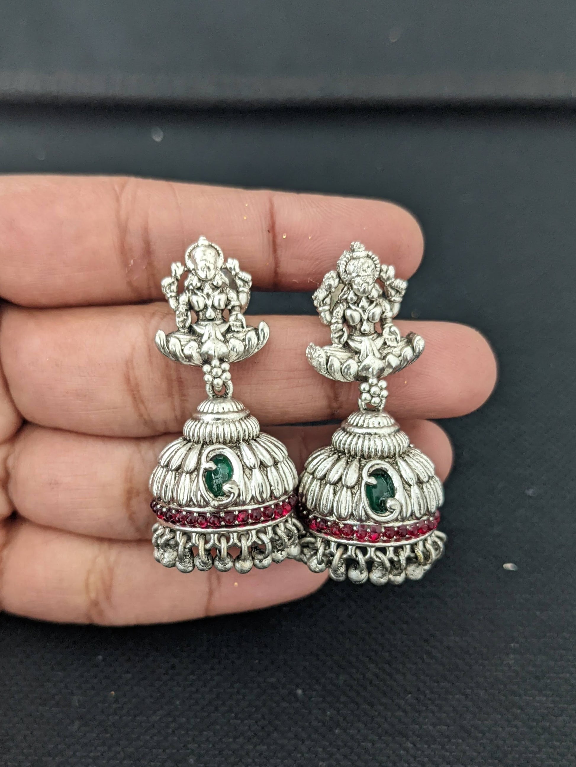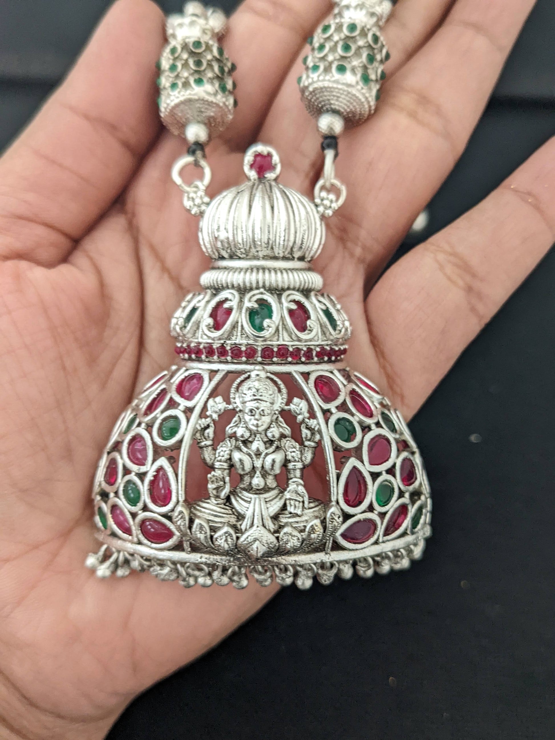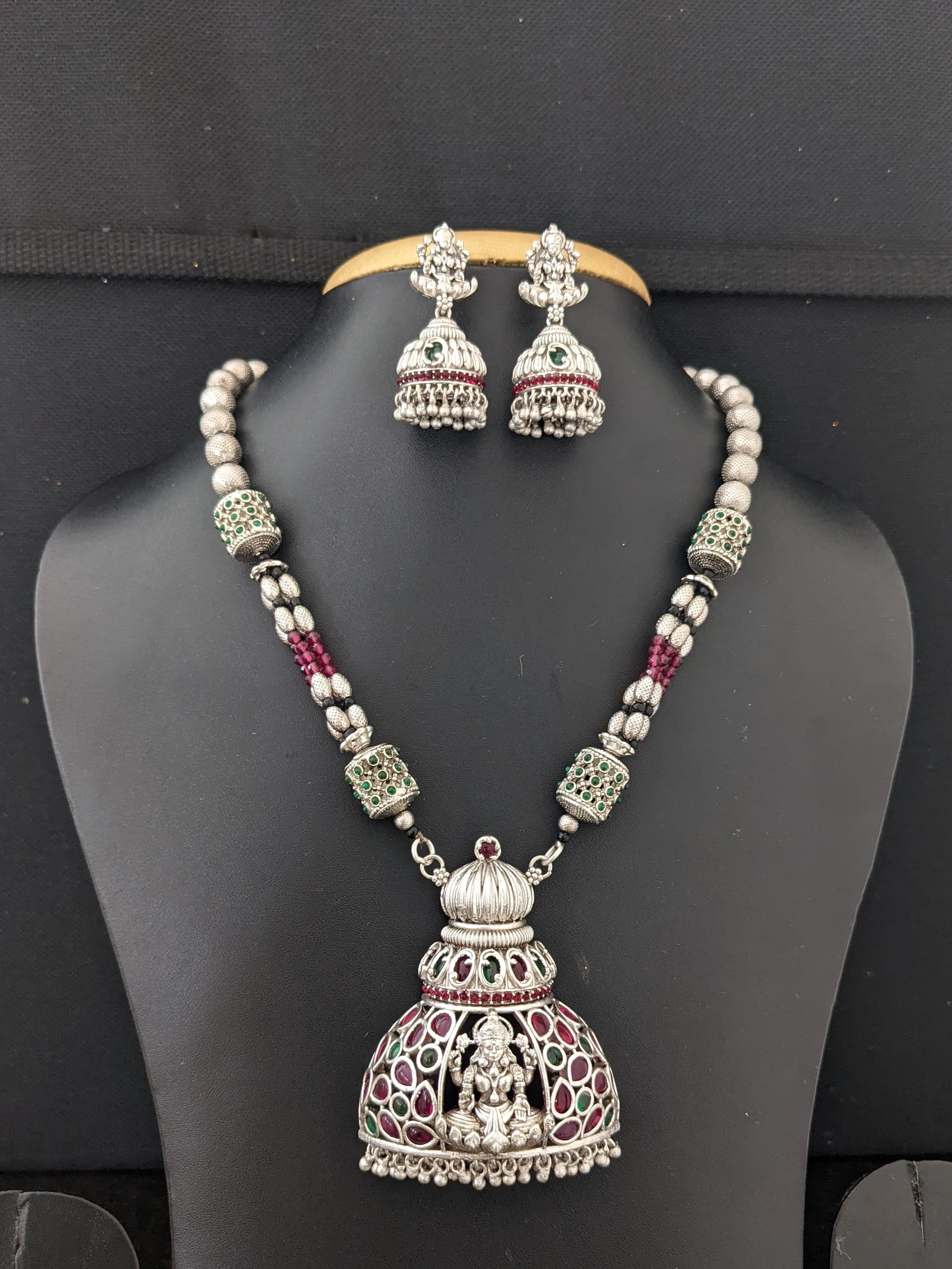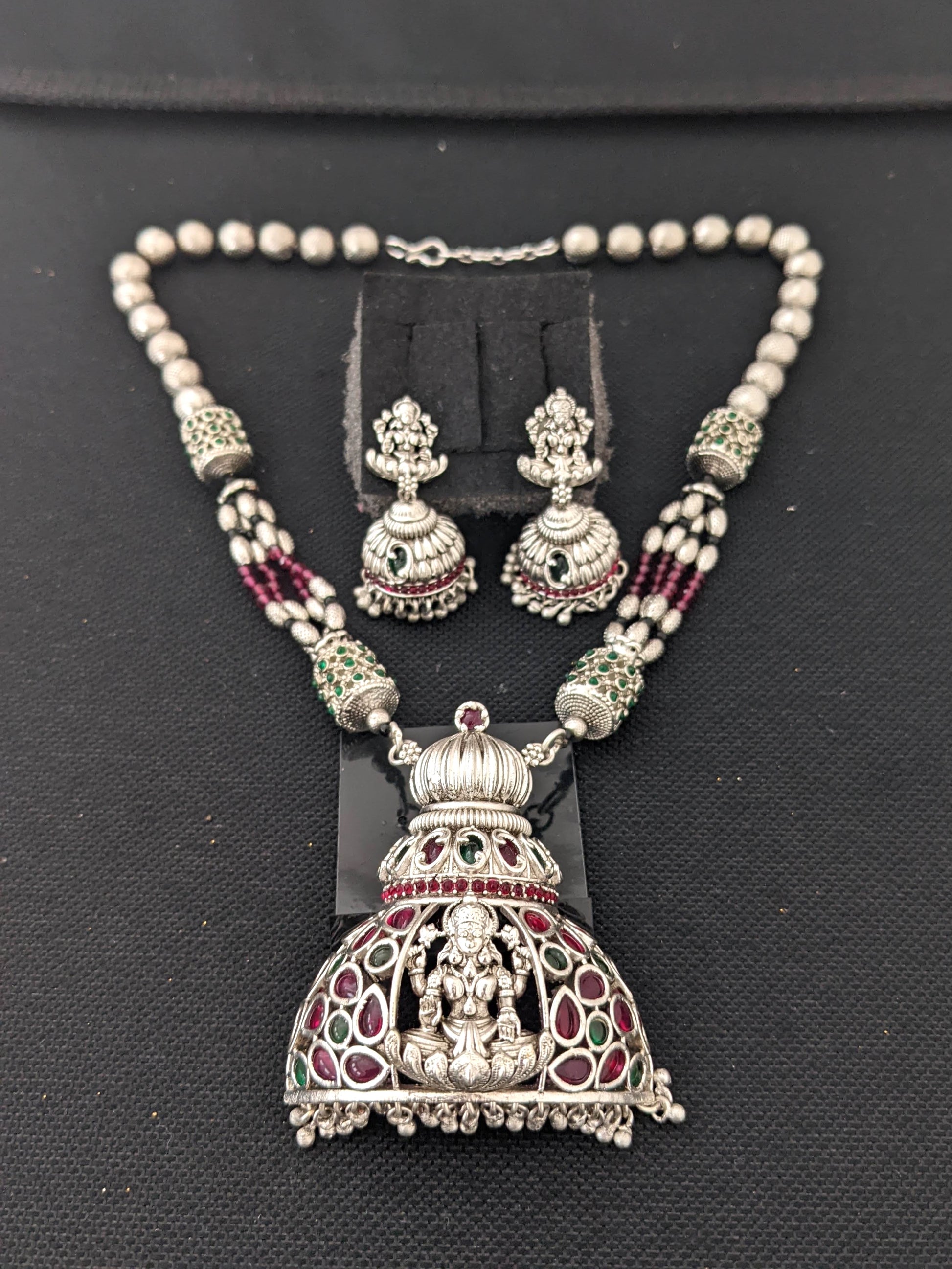 Lakshmi ji Matte Silver rhodium Pendant and jhumka earrings set