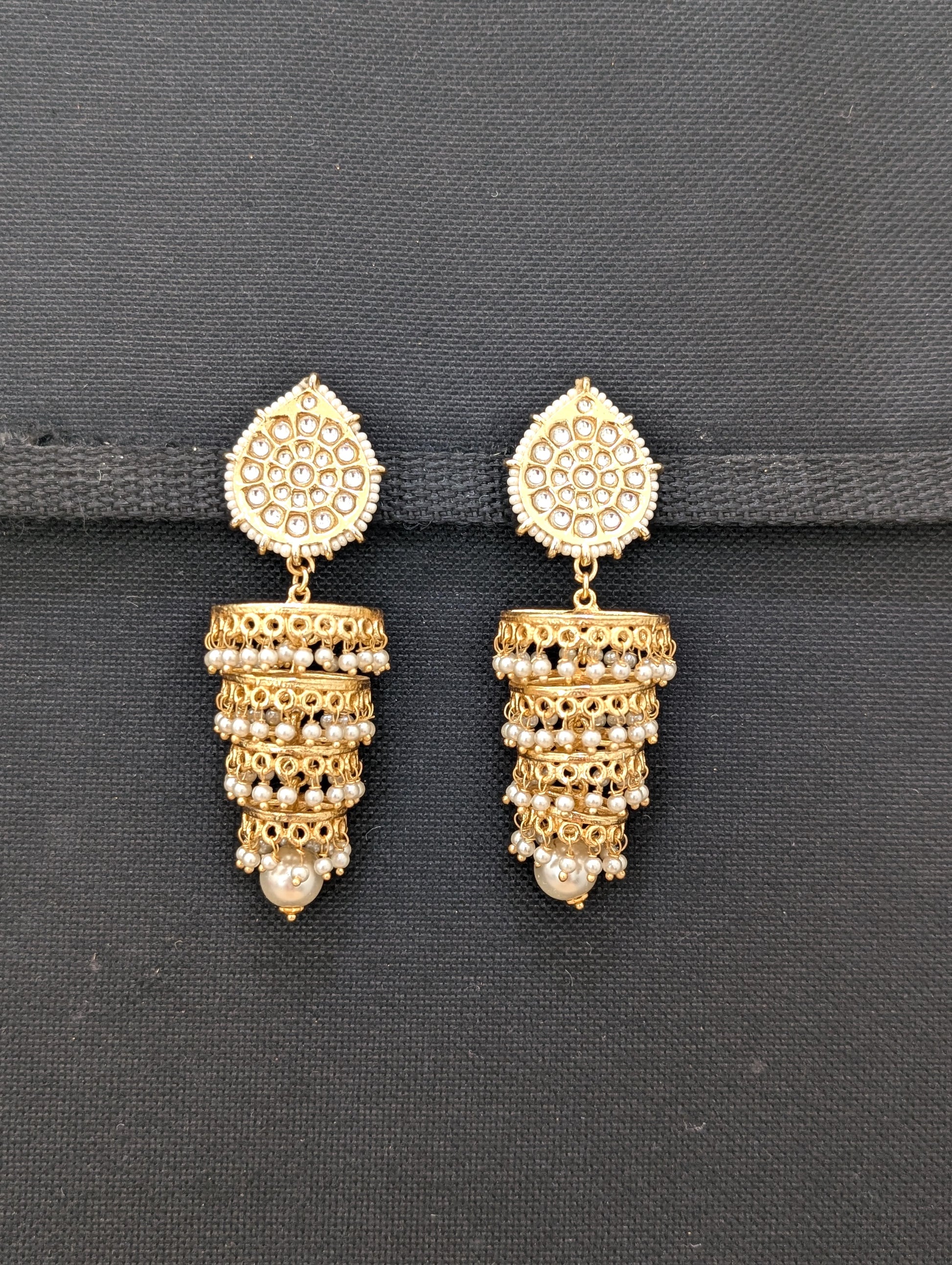 Pearl bead hanging Layered Jhumka Earrings.