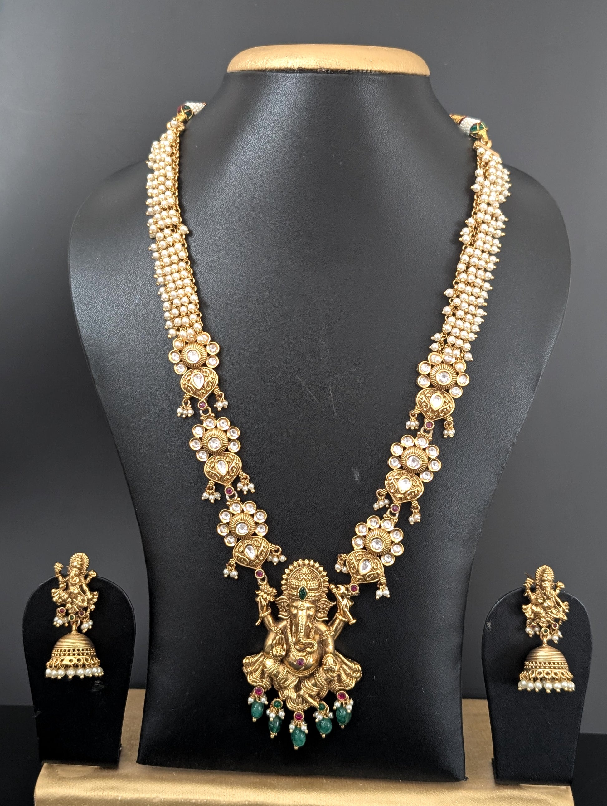 Lord Ganesh ji Antique Long Necklace and Earrings set