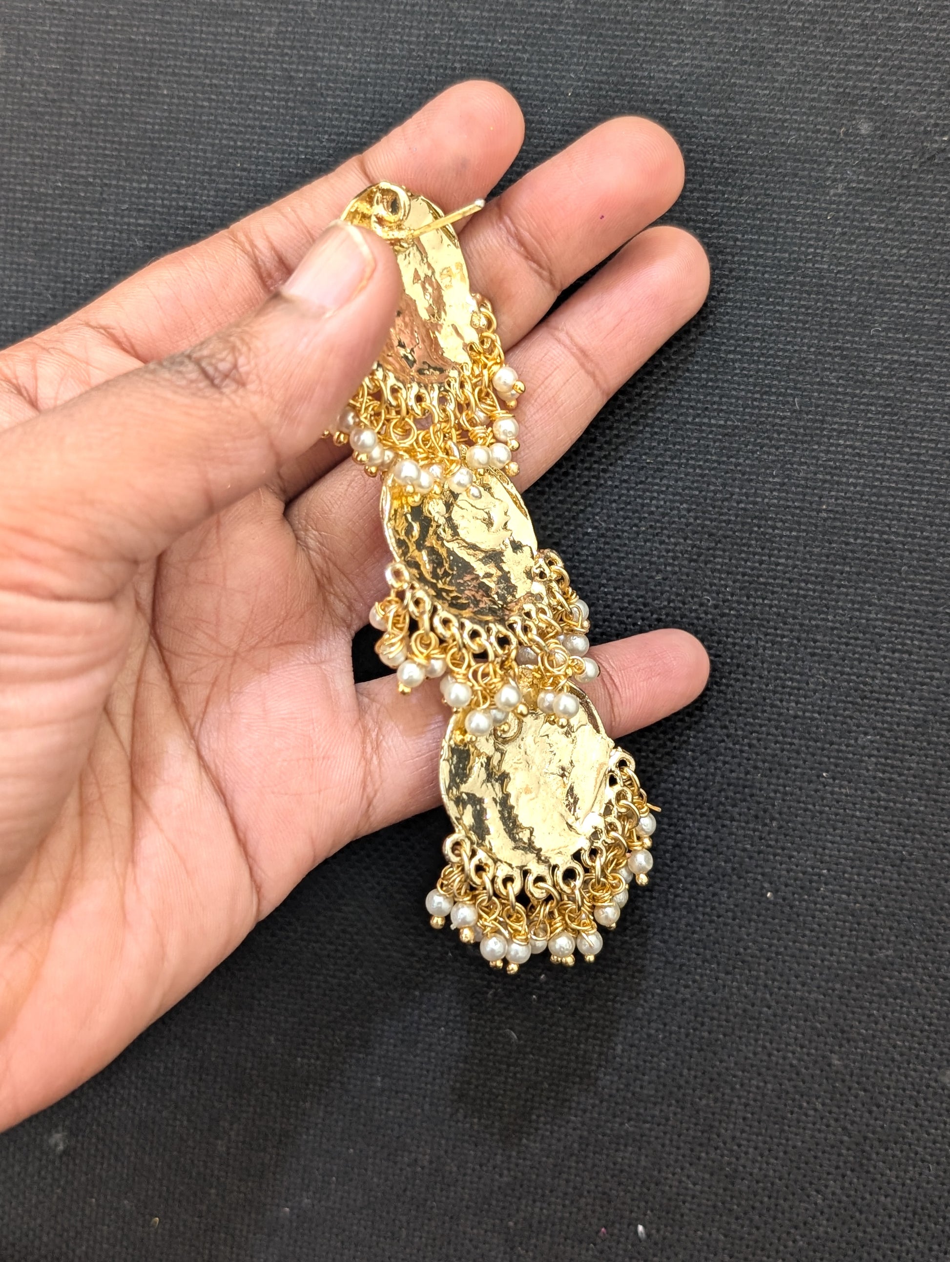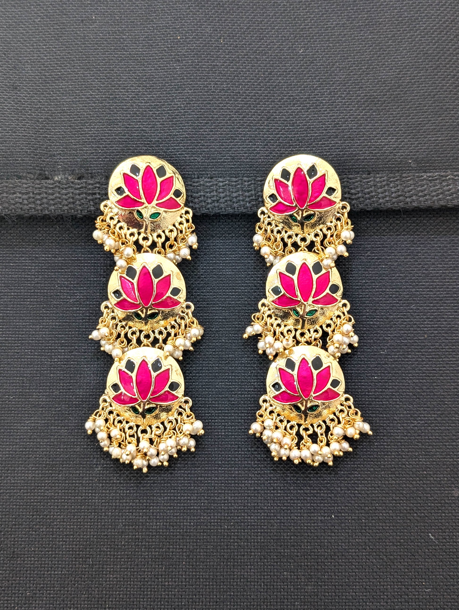 Enamel / Meenakari work Lotus design pearl cluster bead dangling Long earrings.
