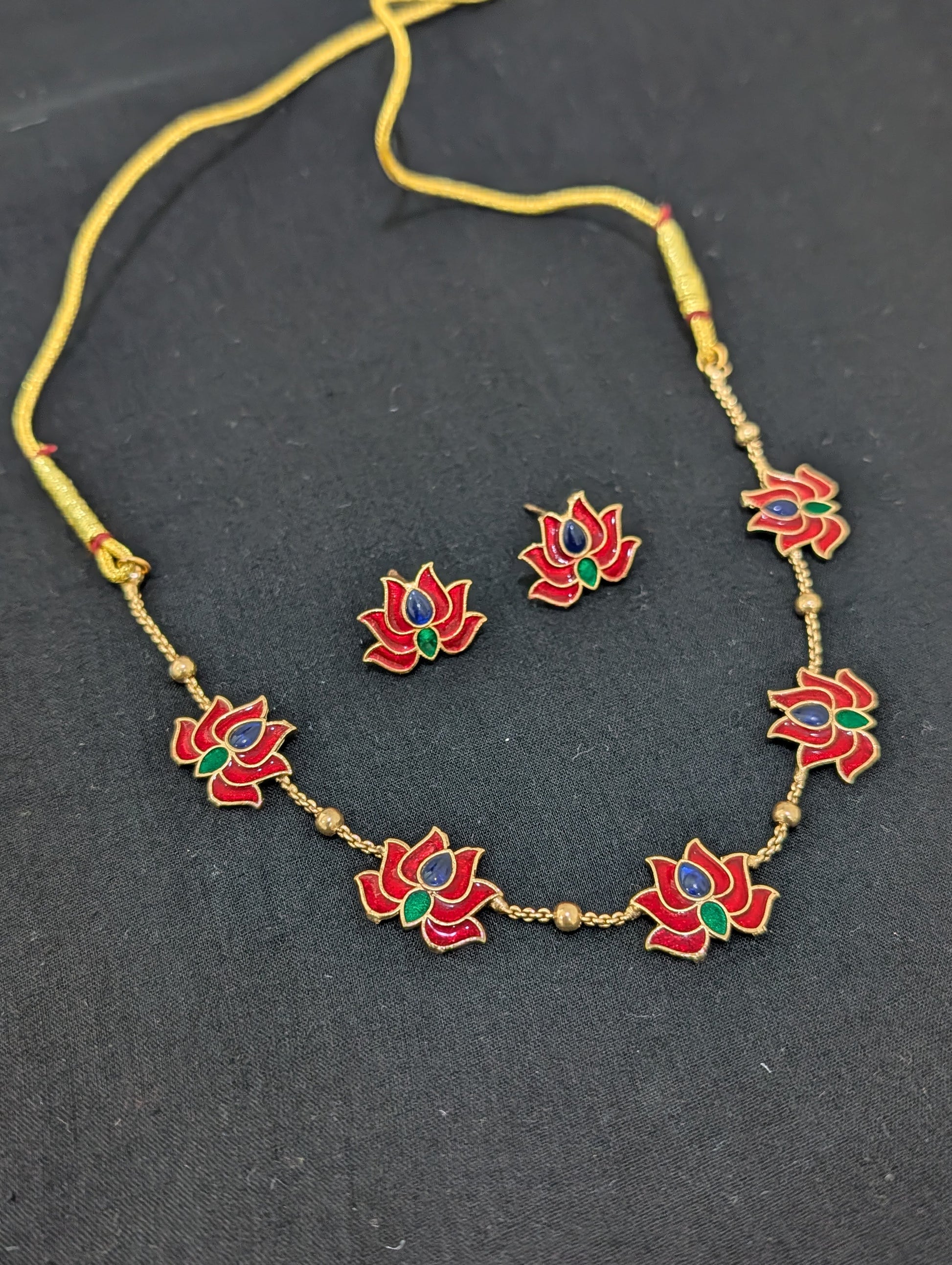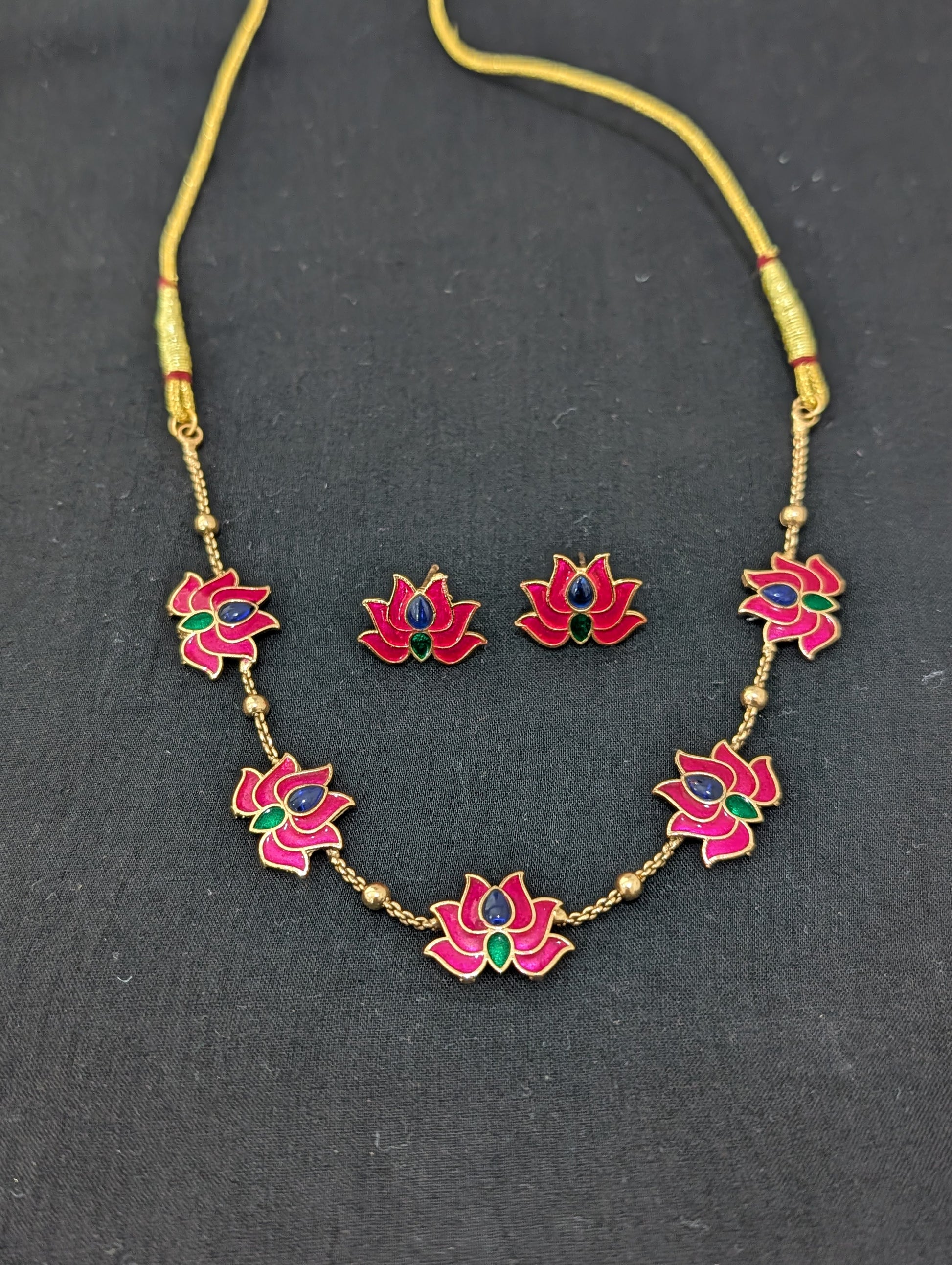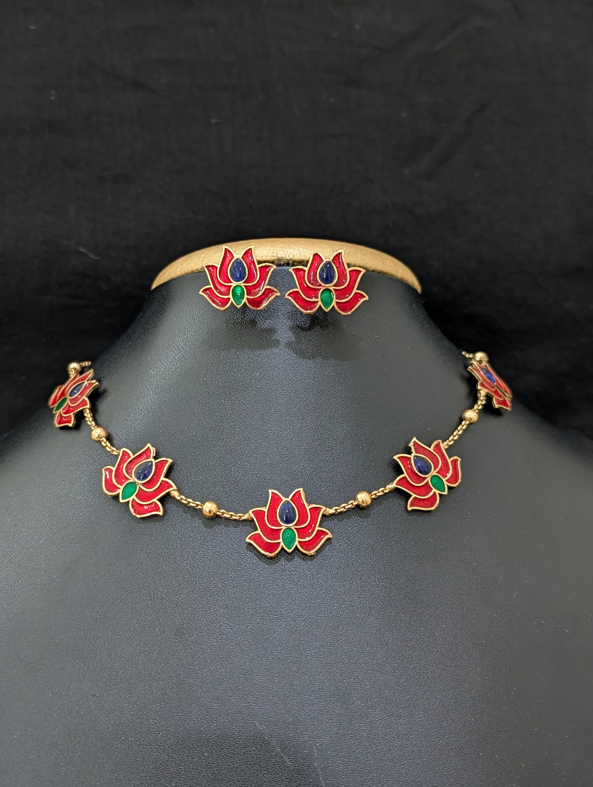 Colorful Enamel work Lotus design Choker set.