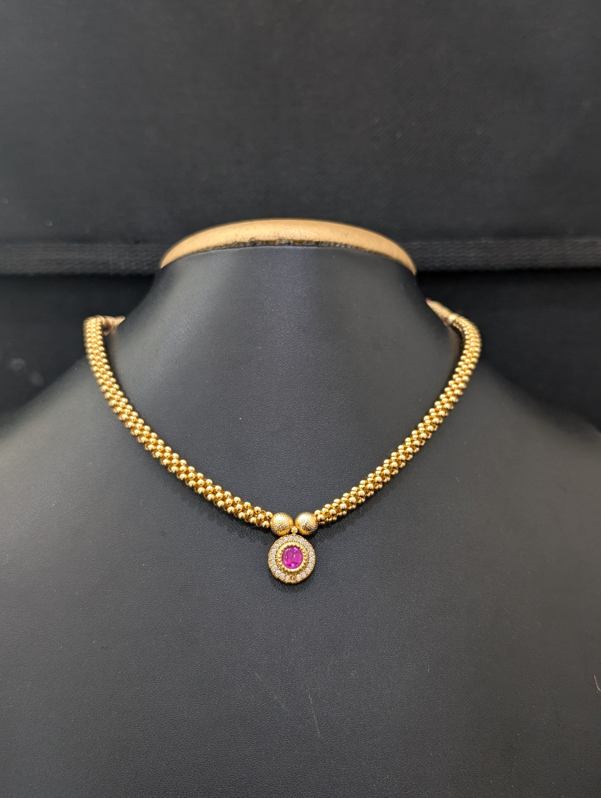 Kemp / CZ stone embedded South Indian Traditional Necklace.