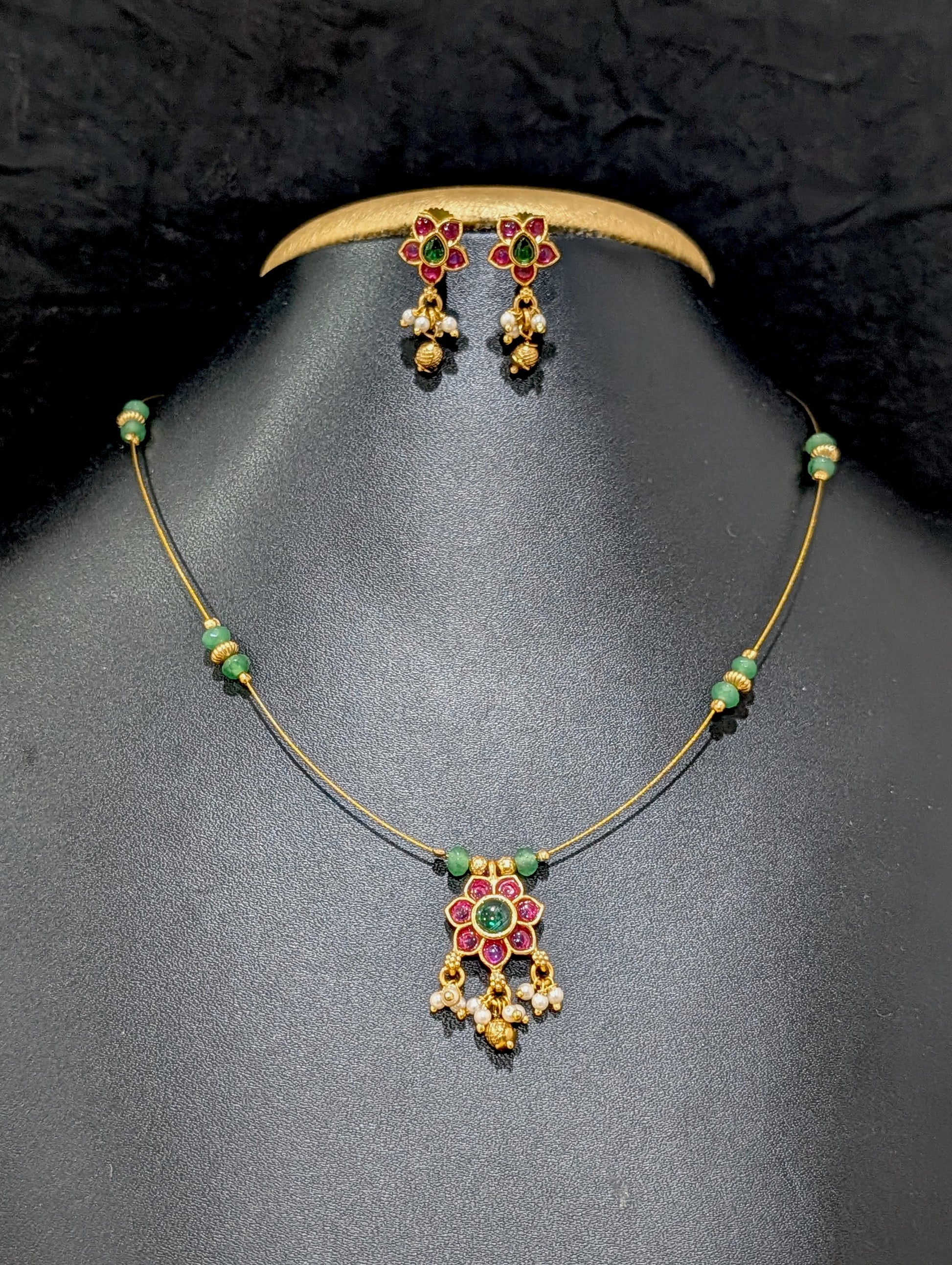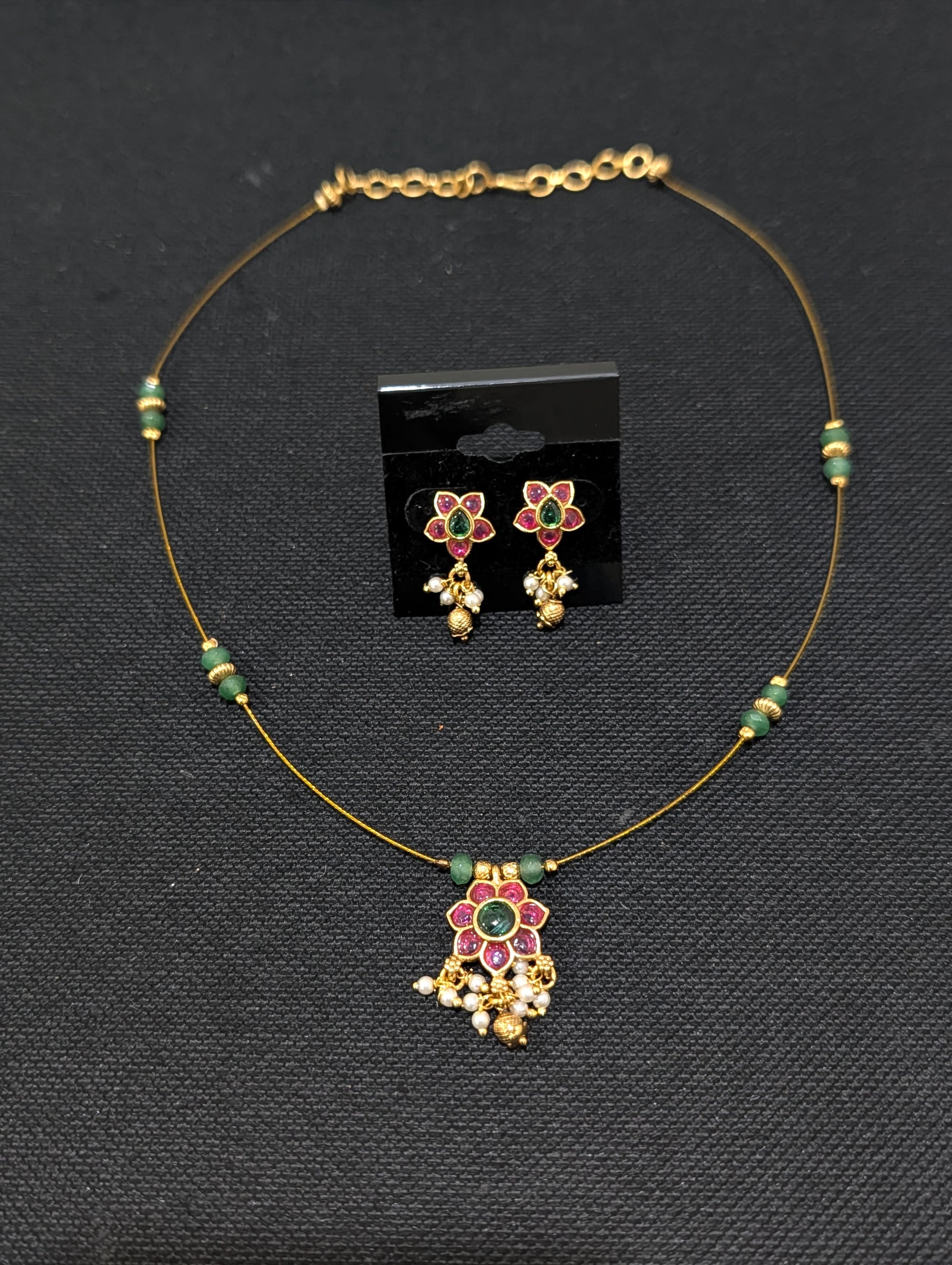 Shiny antique gold polished Choker necklace and stud earrings set.
