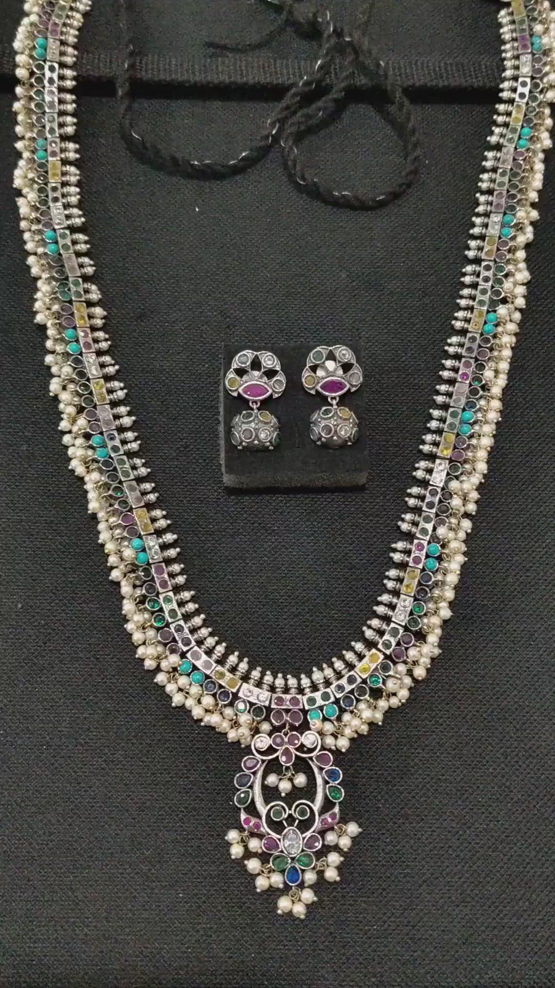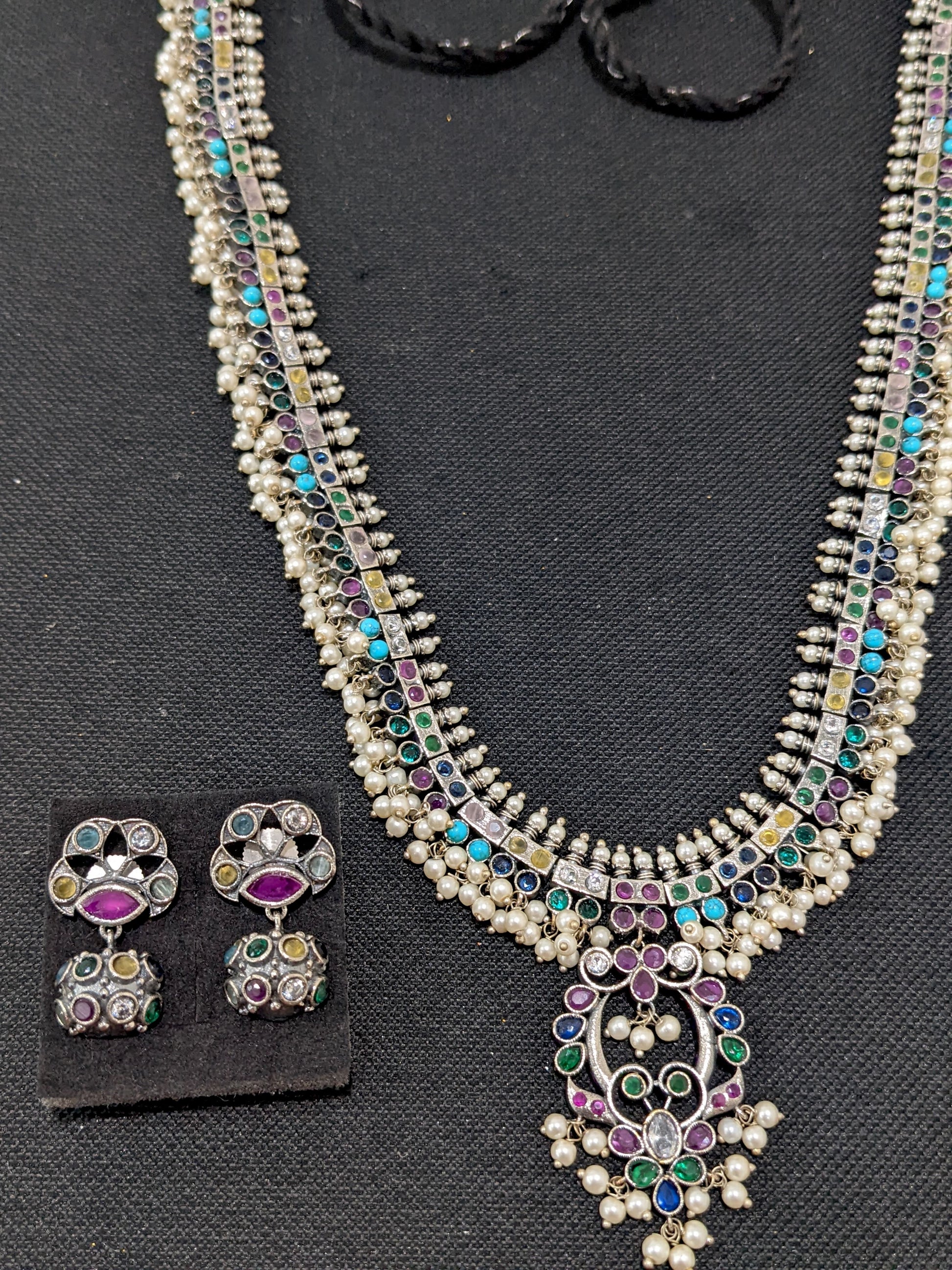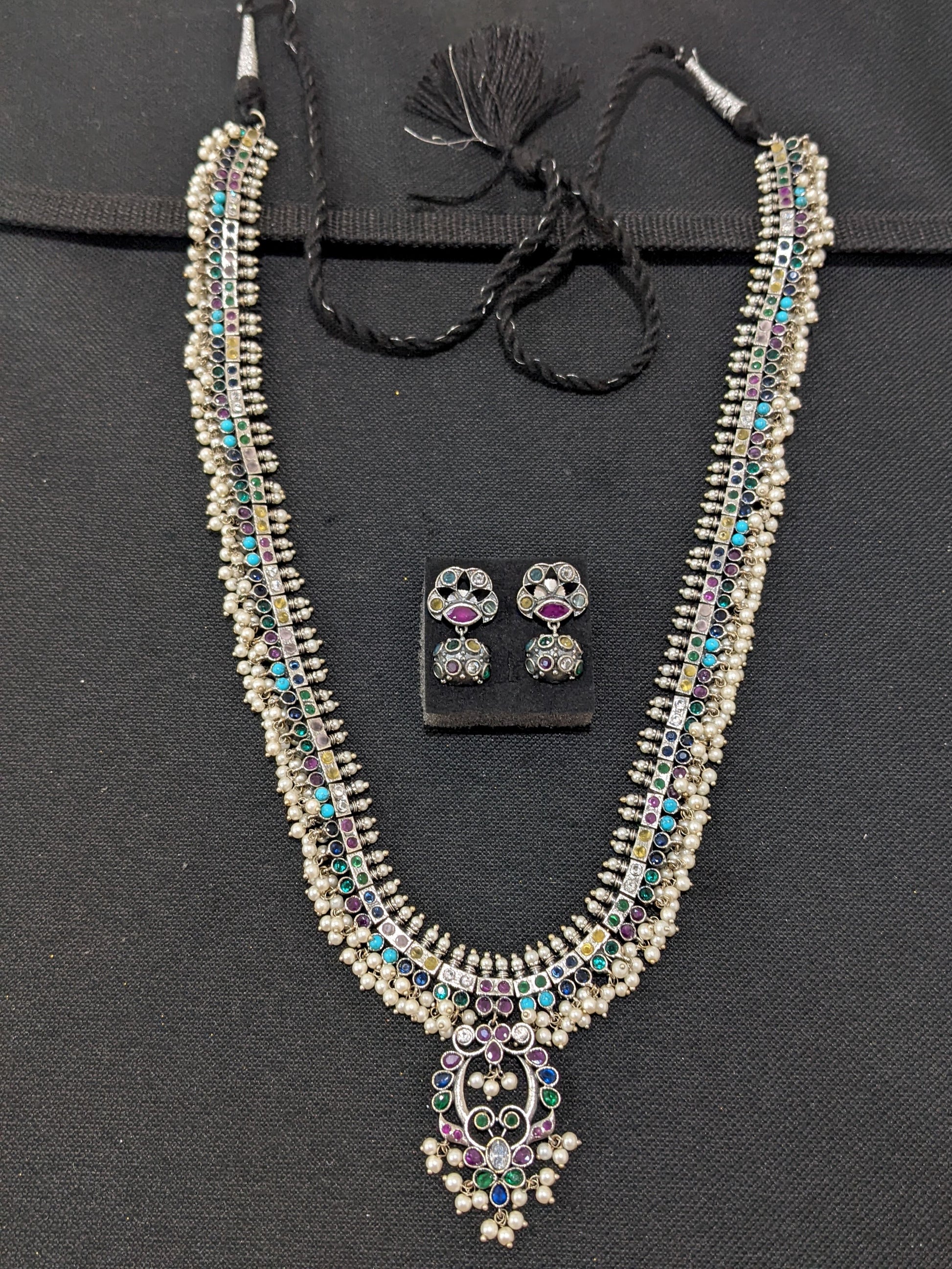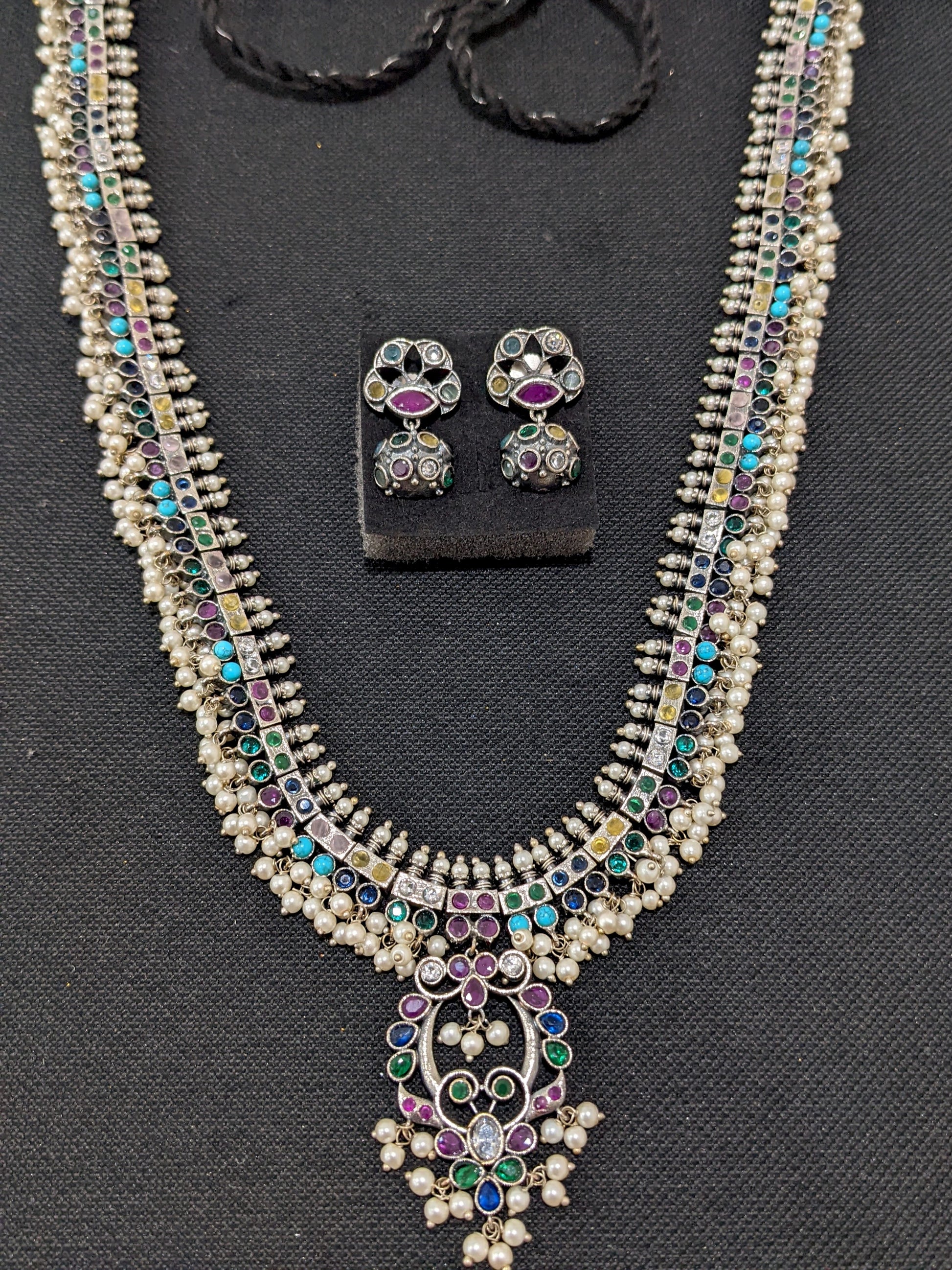Multi color CZ stone Guttapusalu German Silver Long haram and earrings set