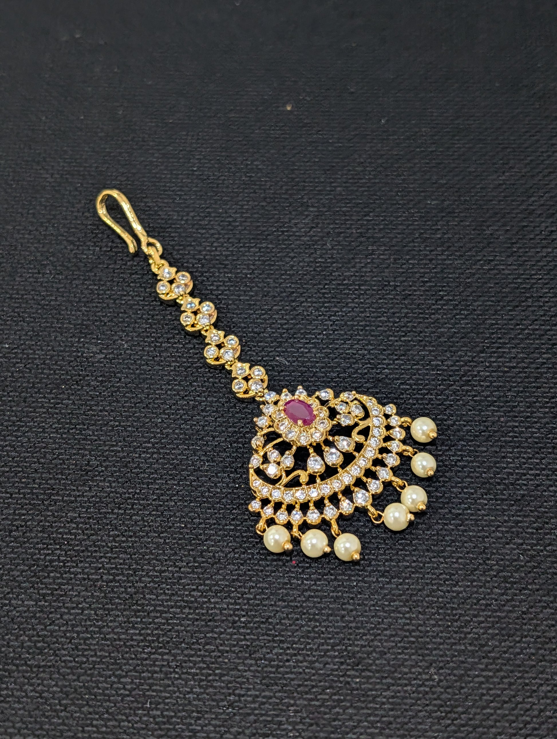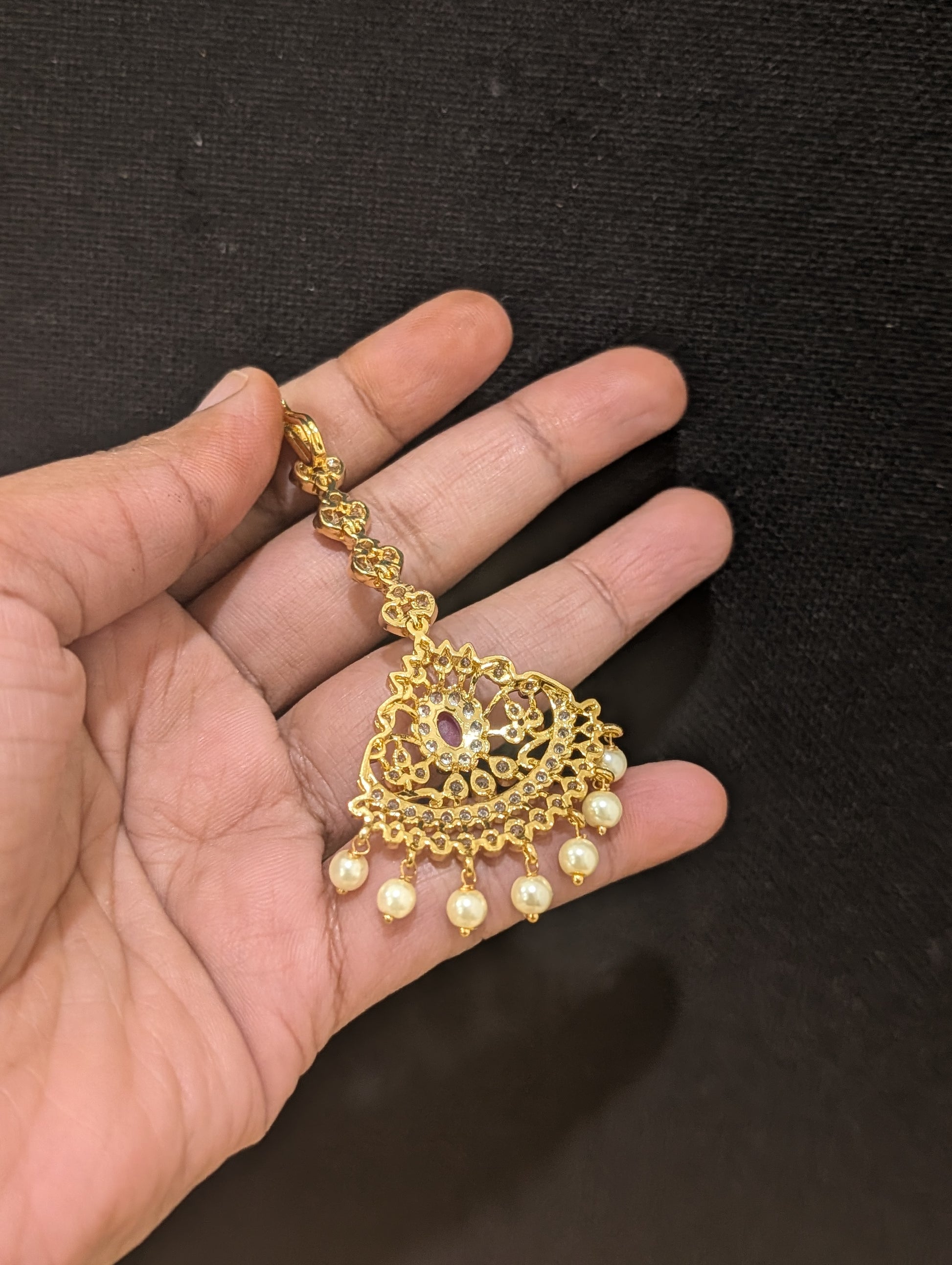 Pearl bead dangle South Indian Traditional Bridal Tikka.