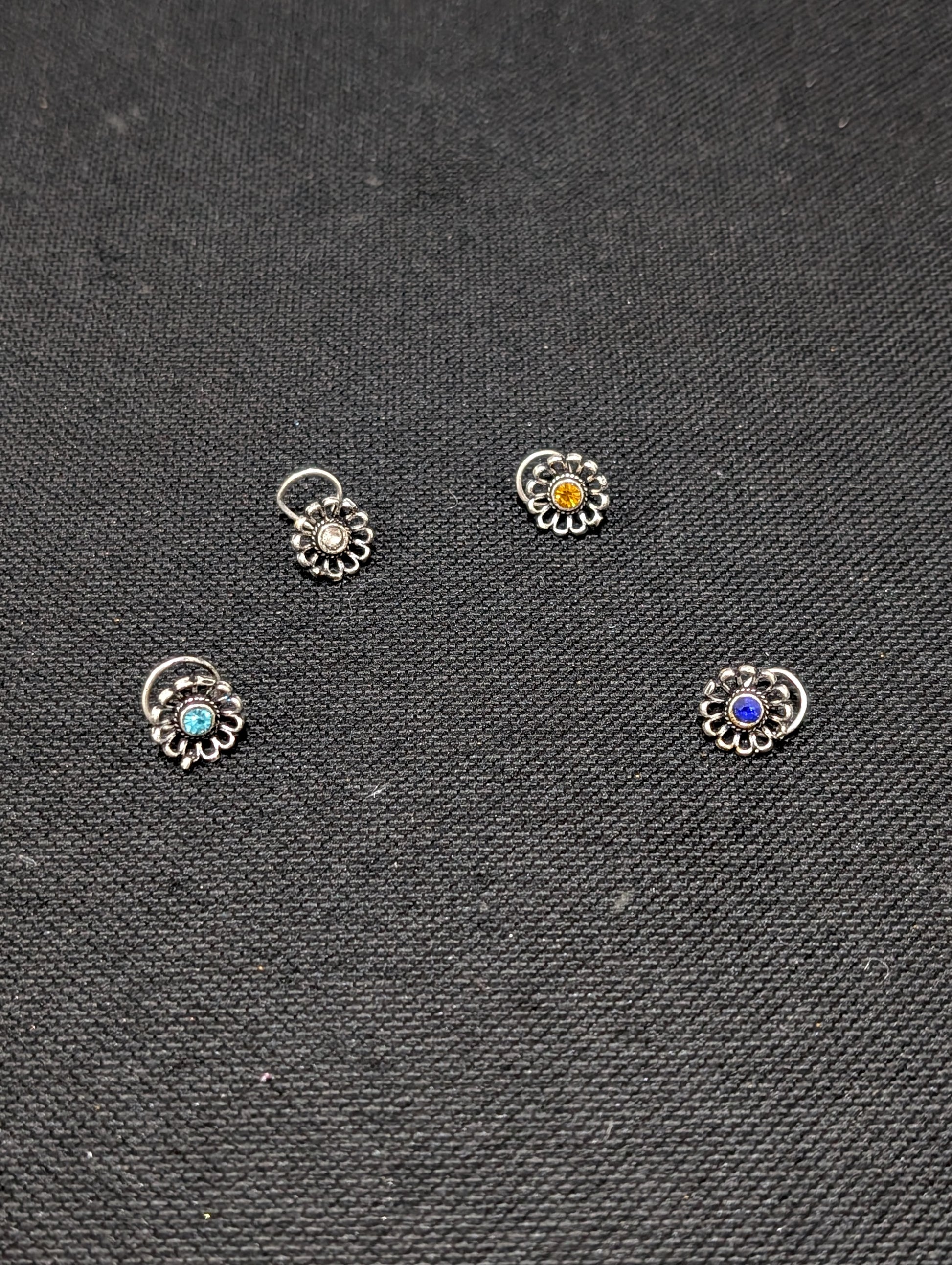 Oxidized Silver big nose pin for pierced nose - 4 designs