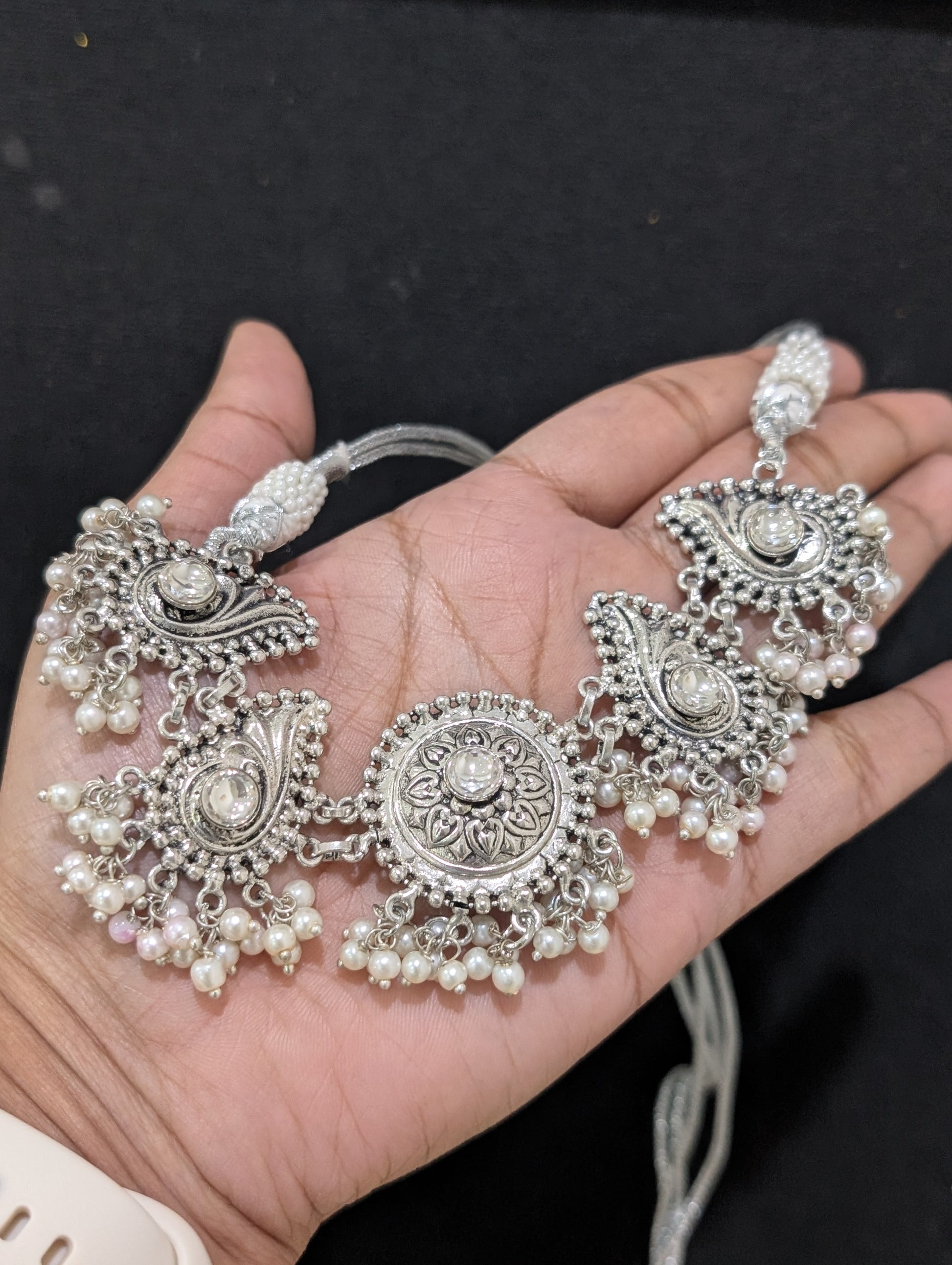 Necklace side to side length: 5.15 inches. Necklace comes with adjustable silver jari cord.