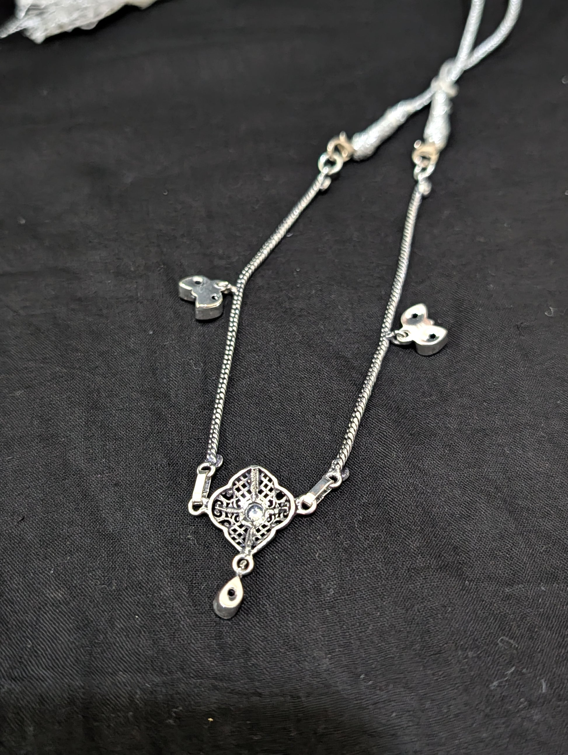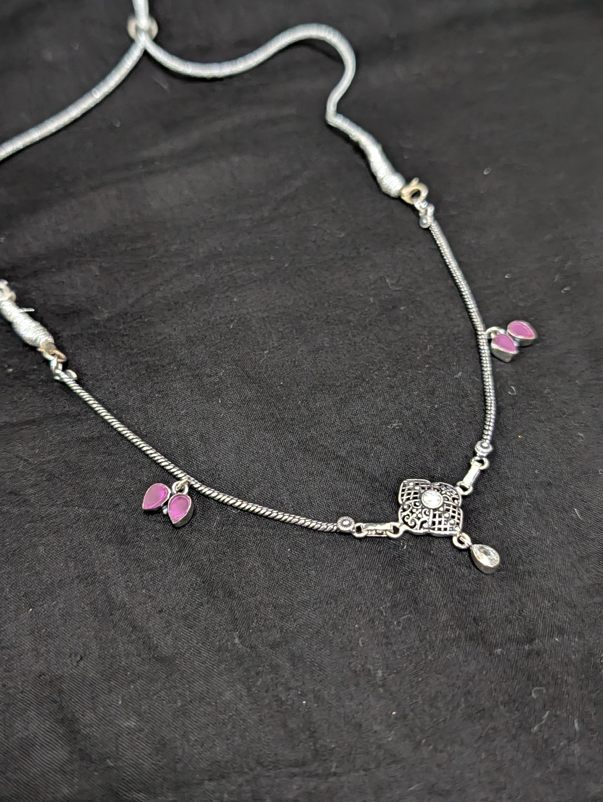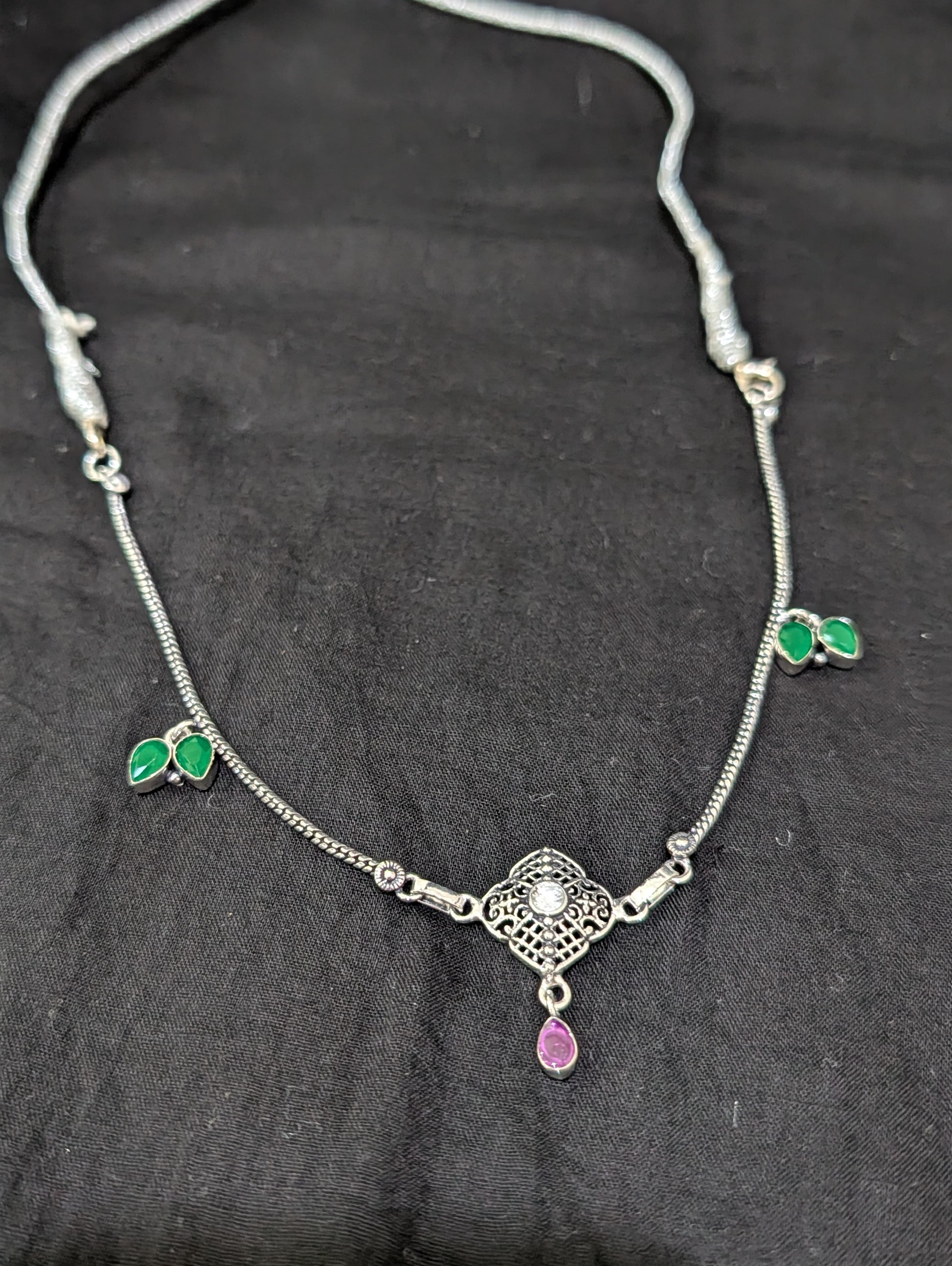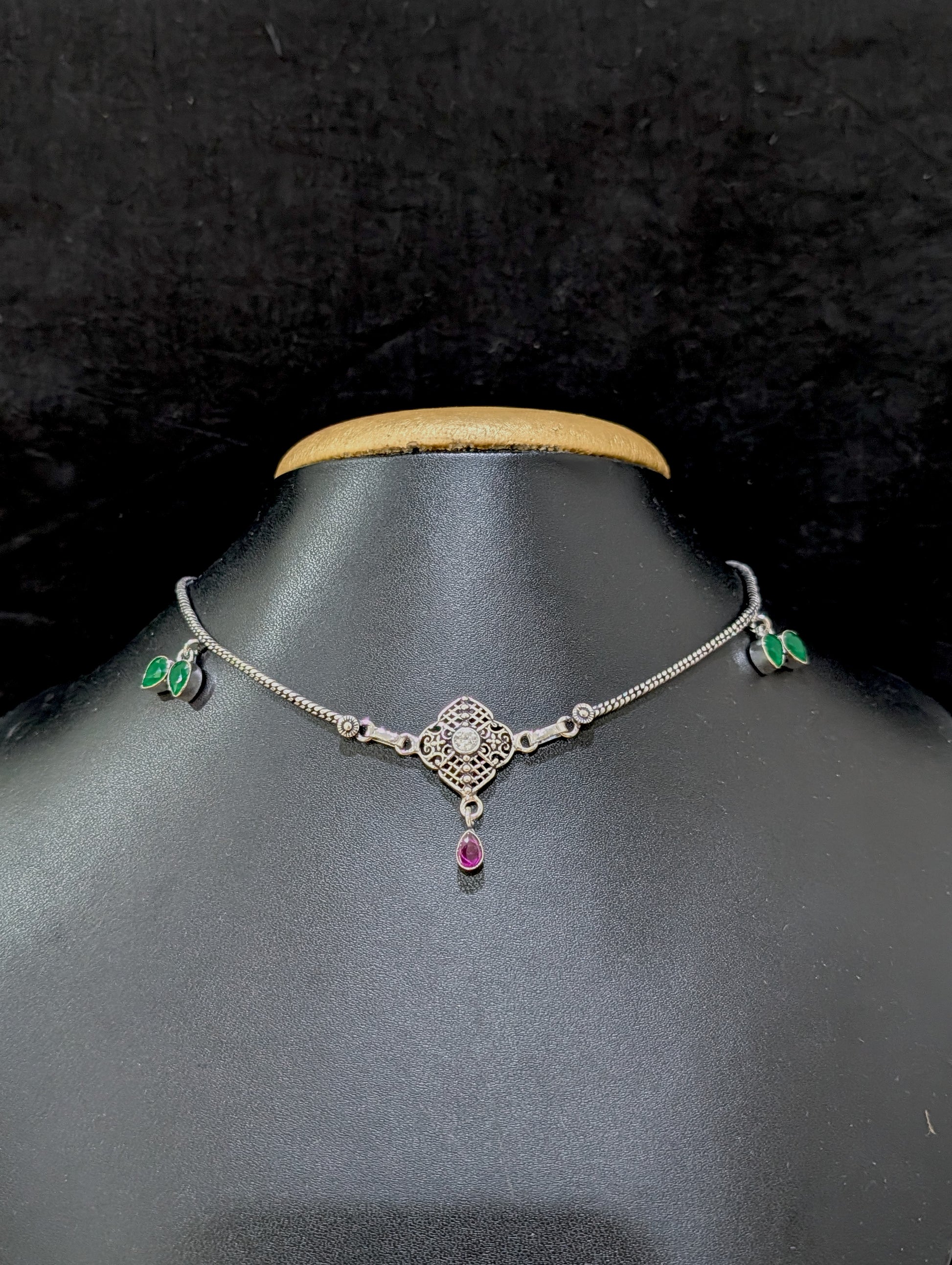 Oxidized Silver CZ stone pasted Choker Necklace.
