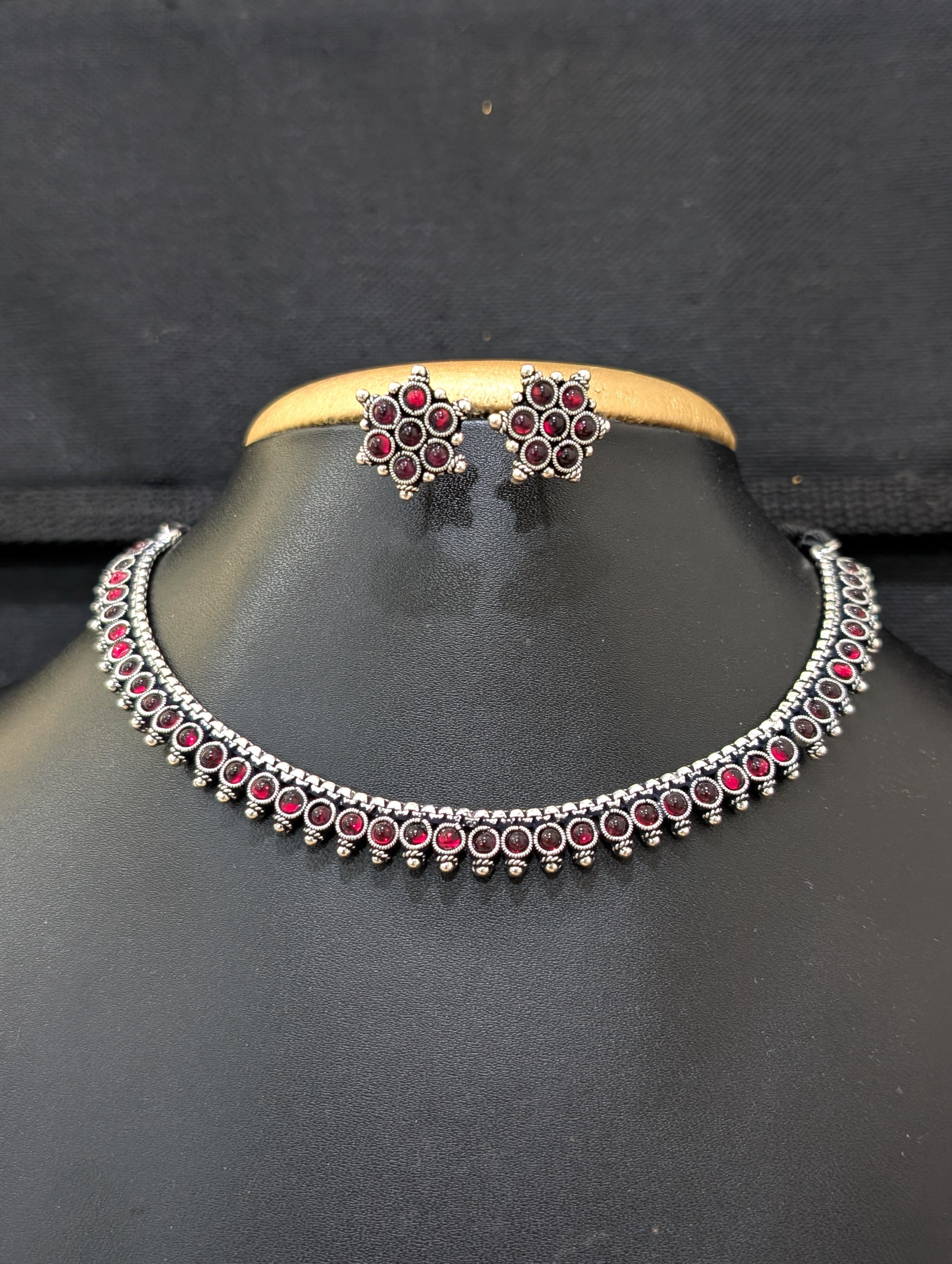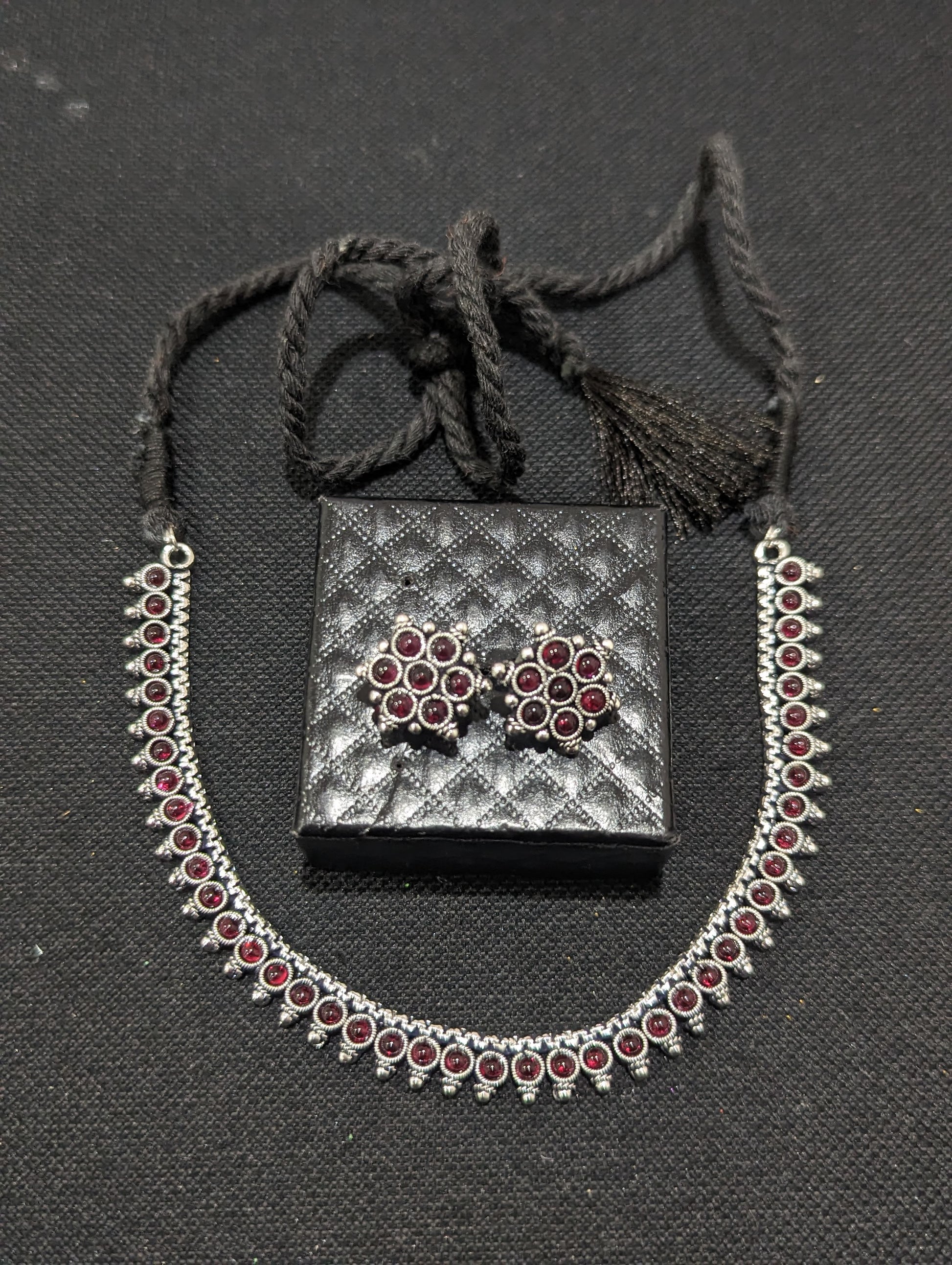 Oxidized silver Dori thread Choker Necklace set - Design 2