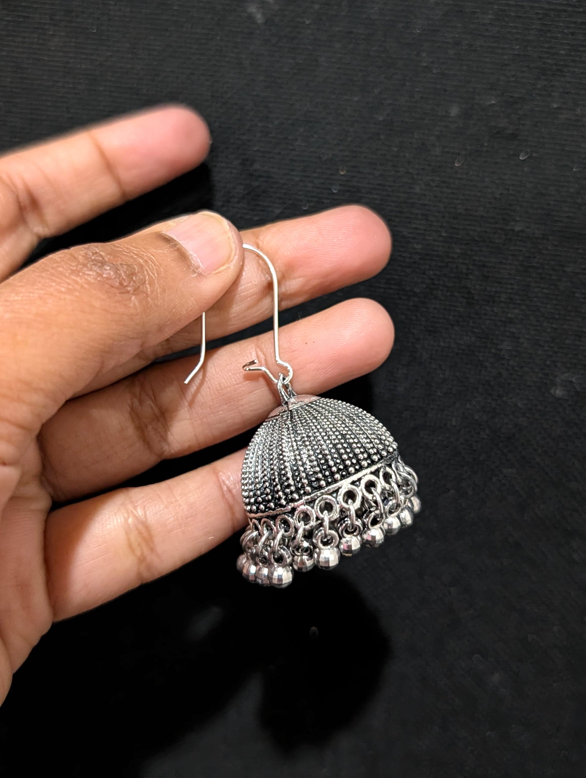 Oxidized Silver Hoop Medium Jhumka earrings