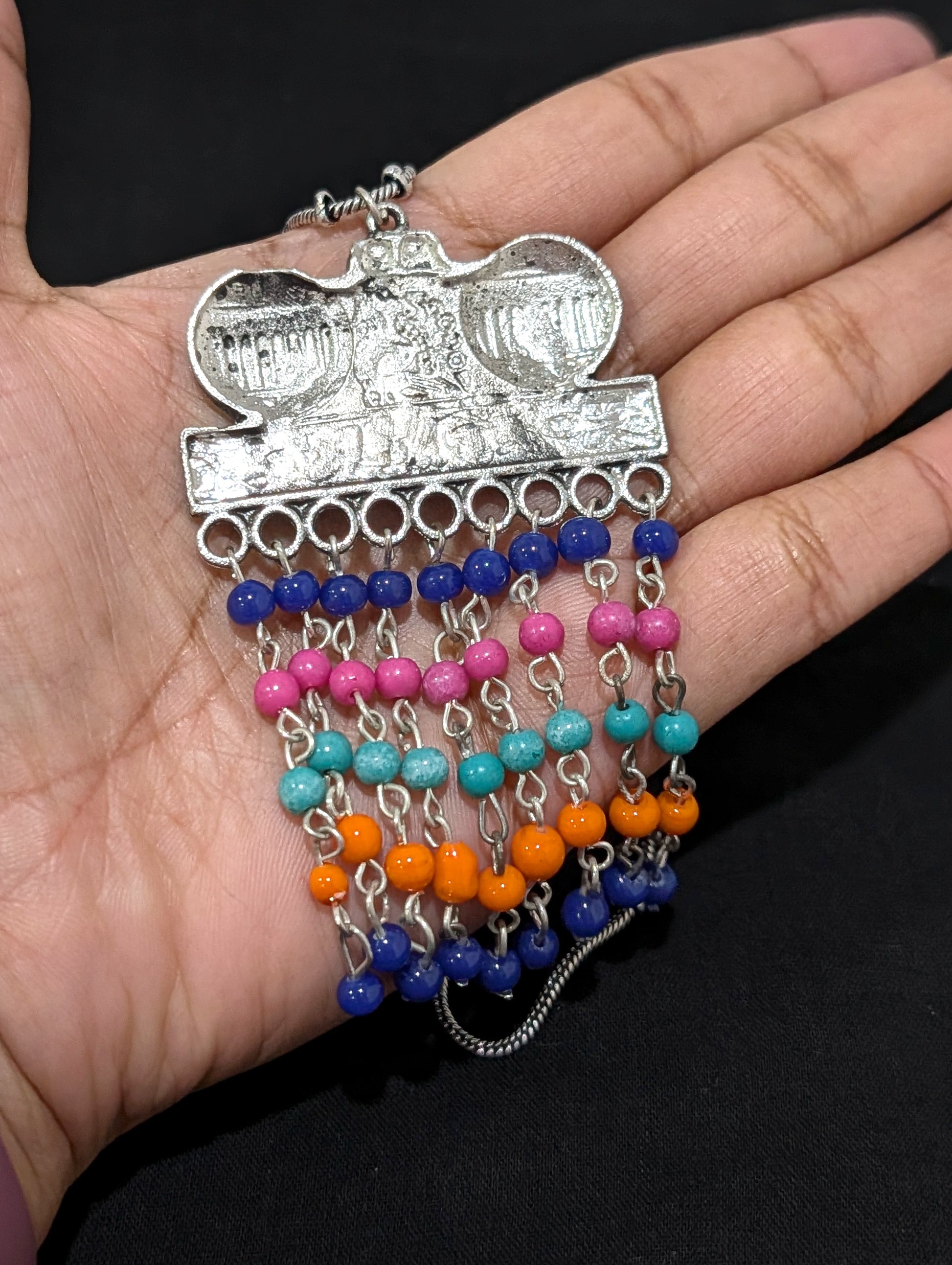 Oxidized Silver multi color bead dangle Pendant Necklace