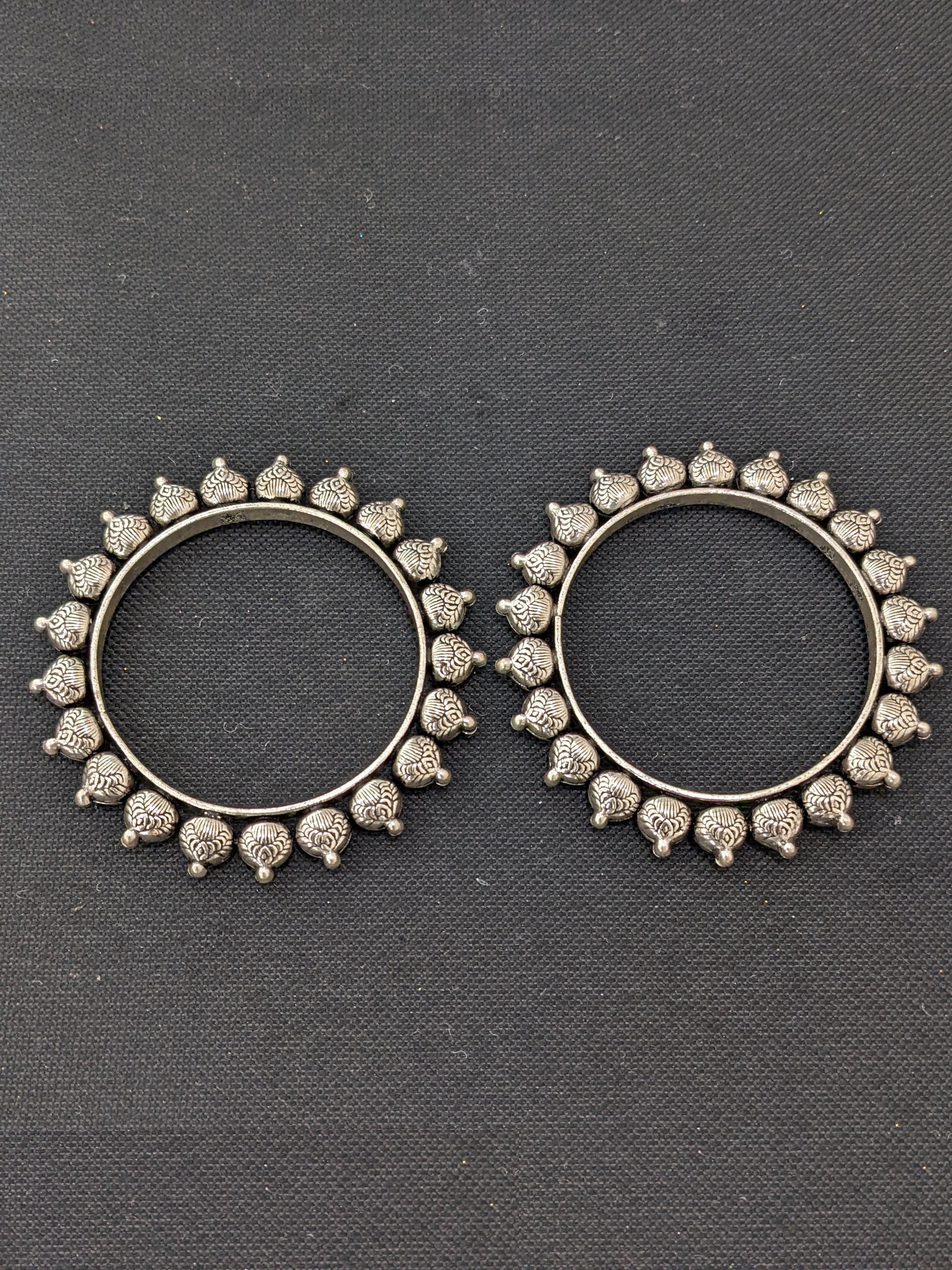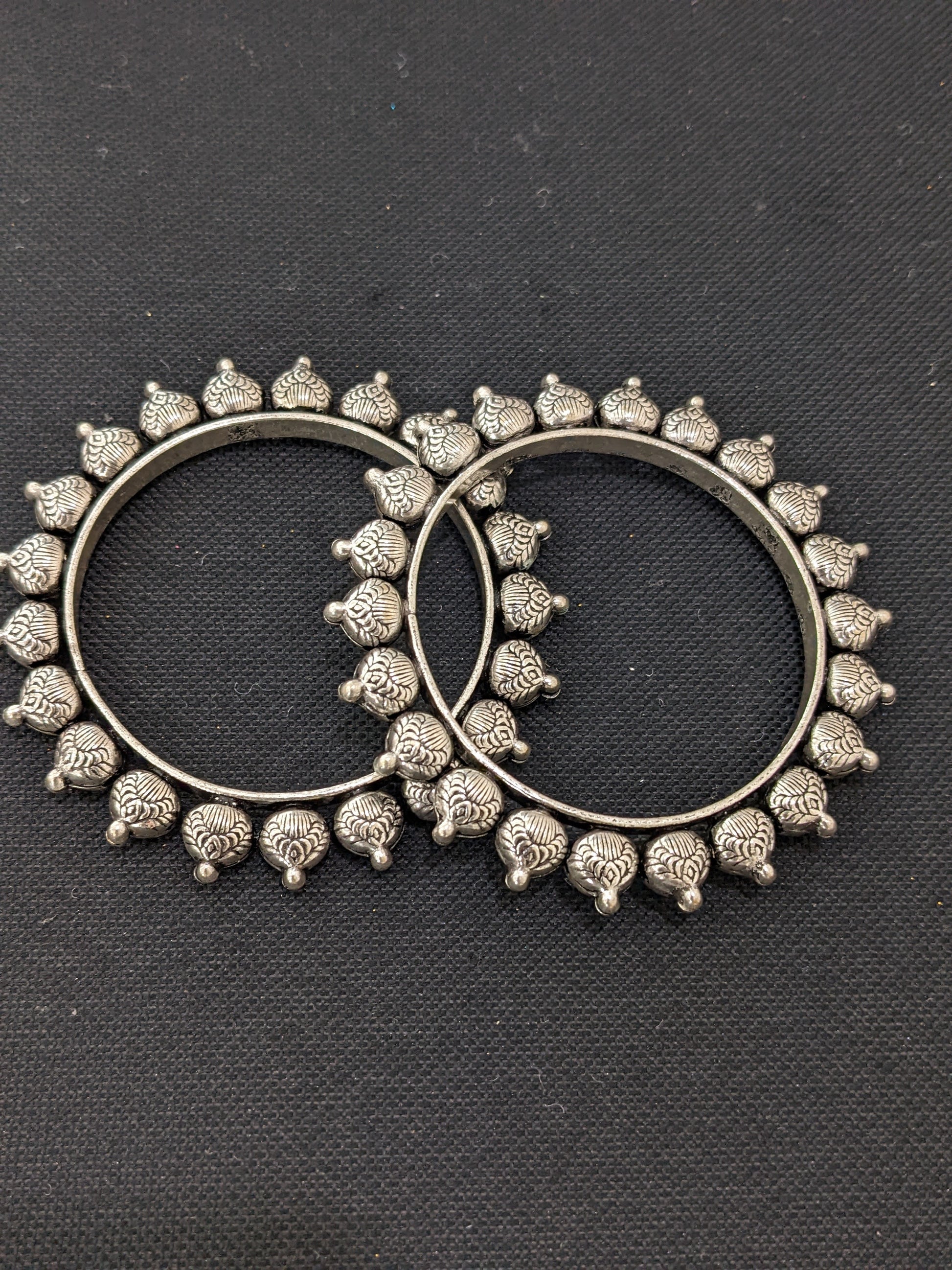 Oxidized silver pair bangles - Etched ball design