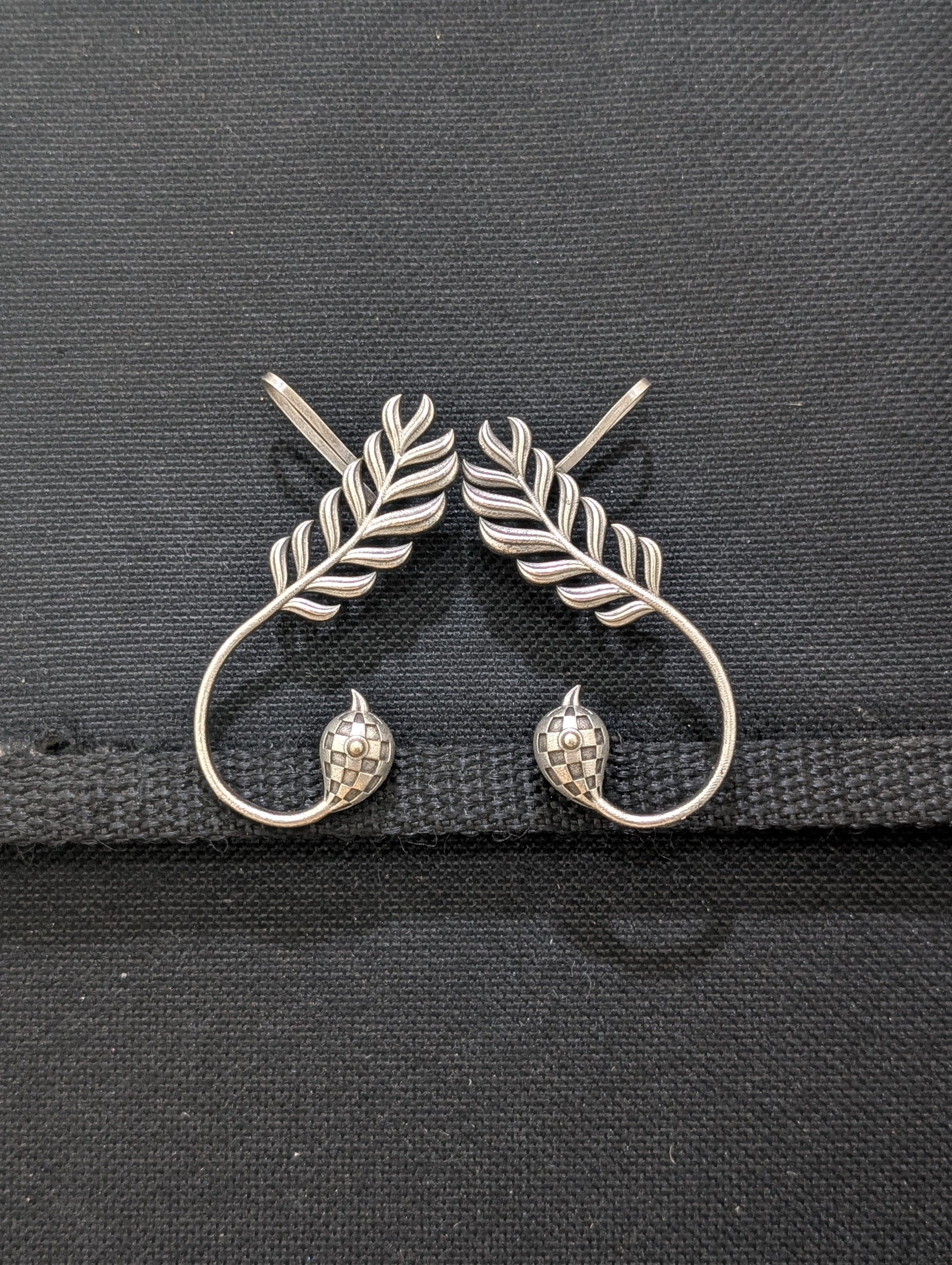 Oxidized silver Peacock Cuff earrings