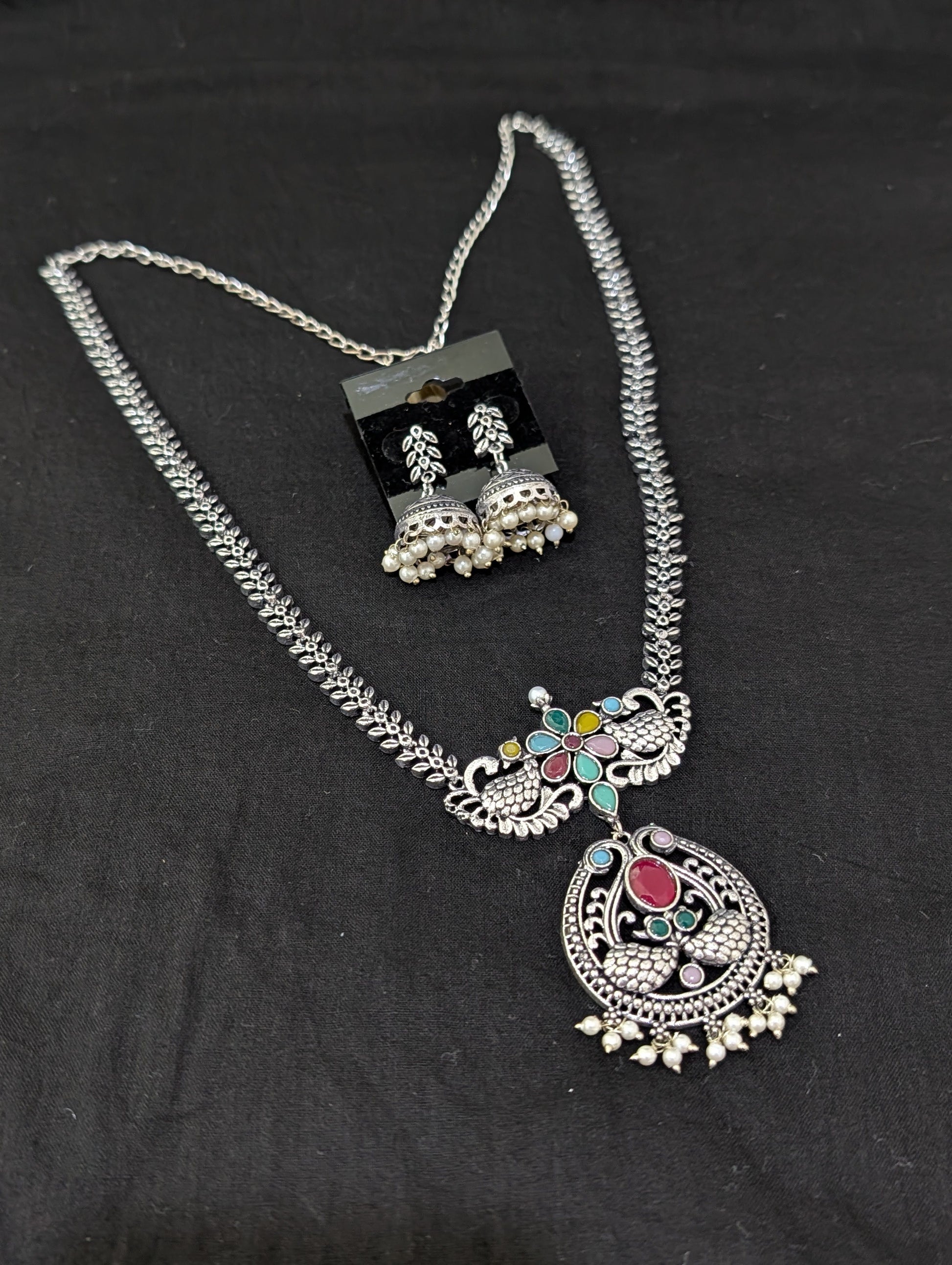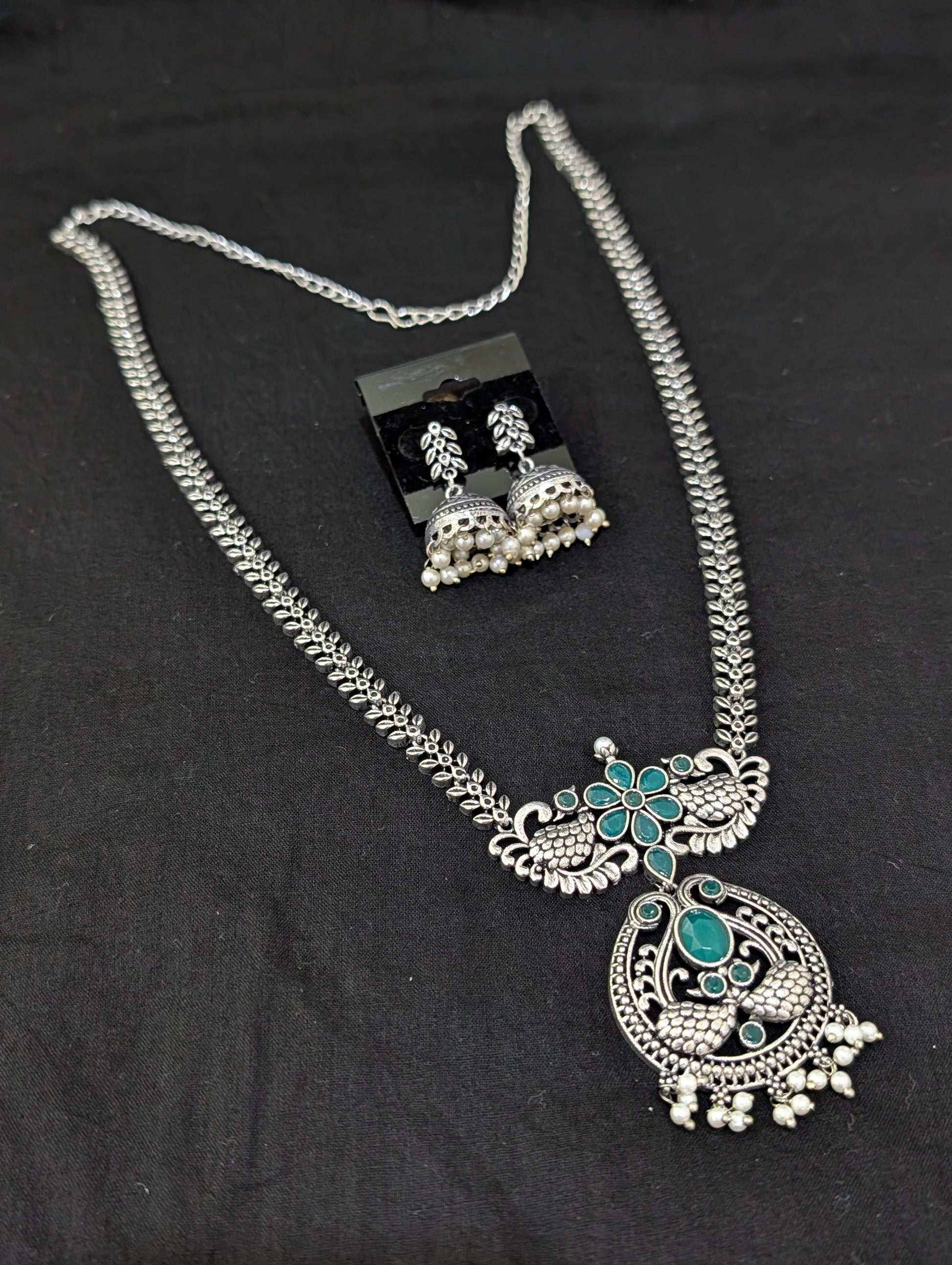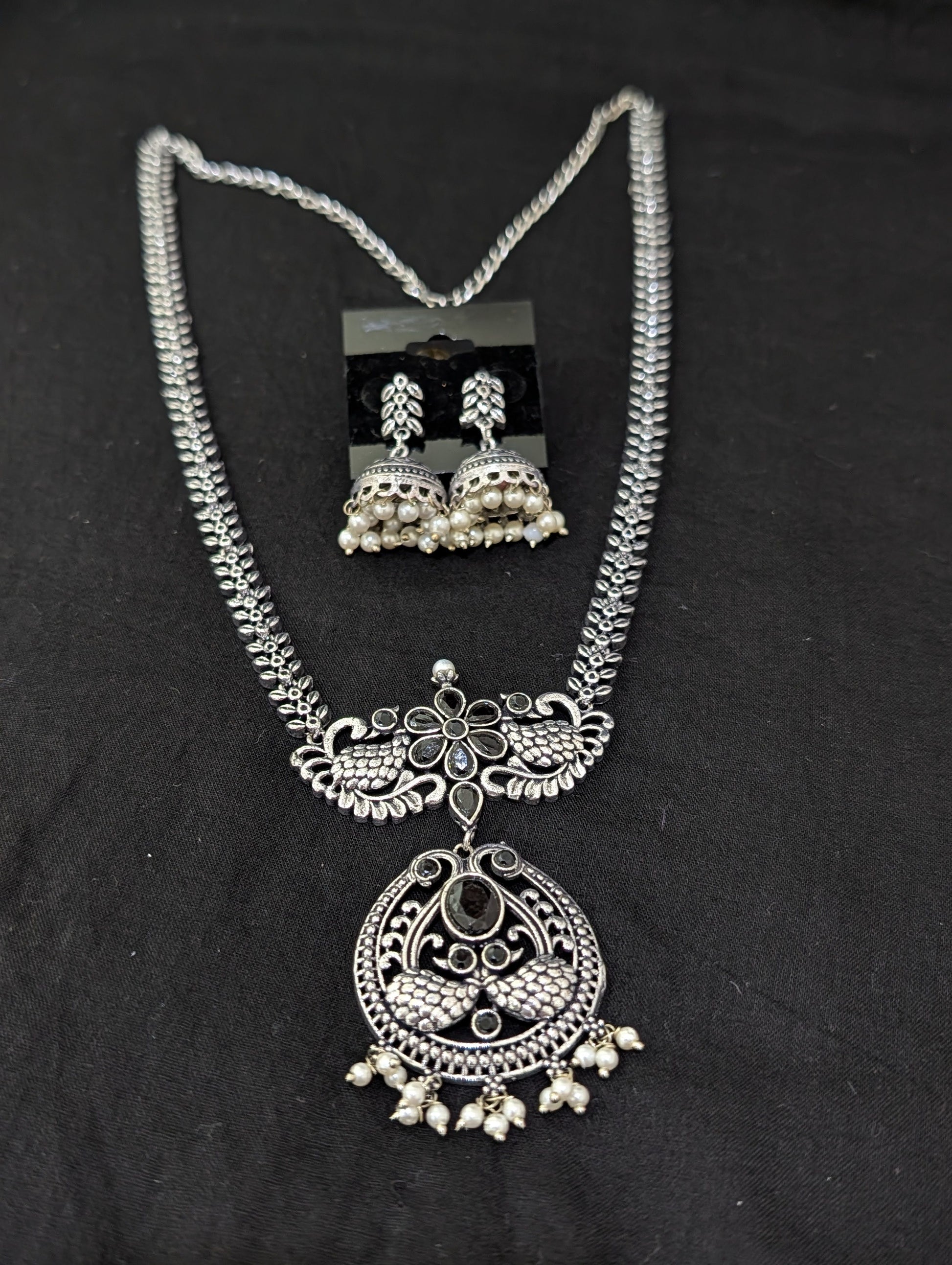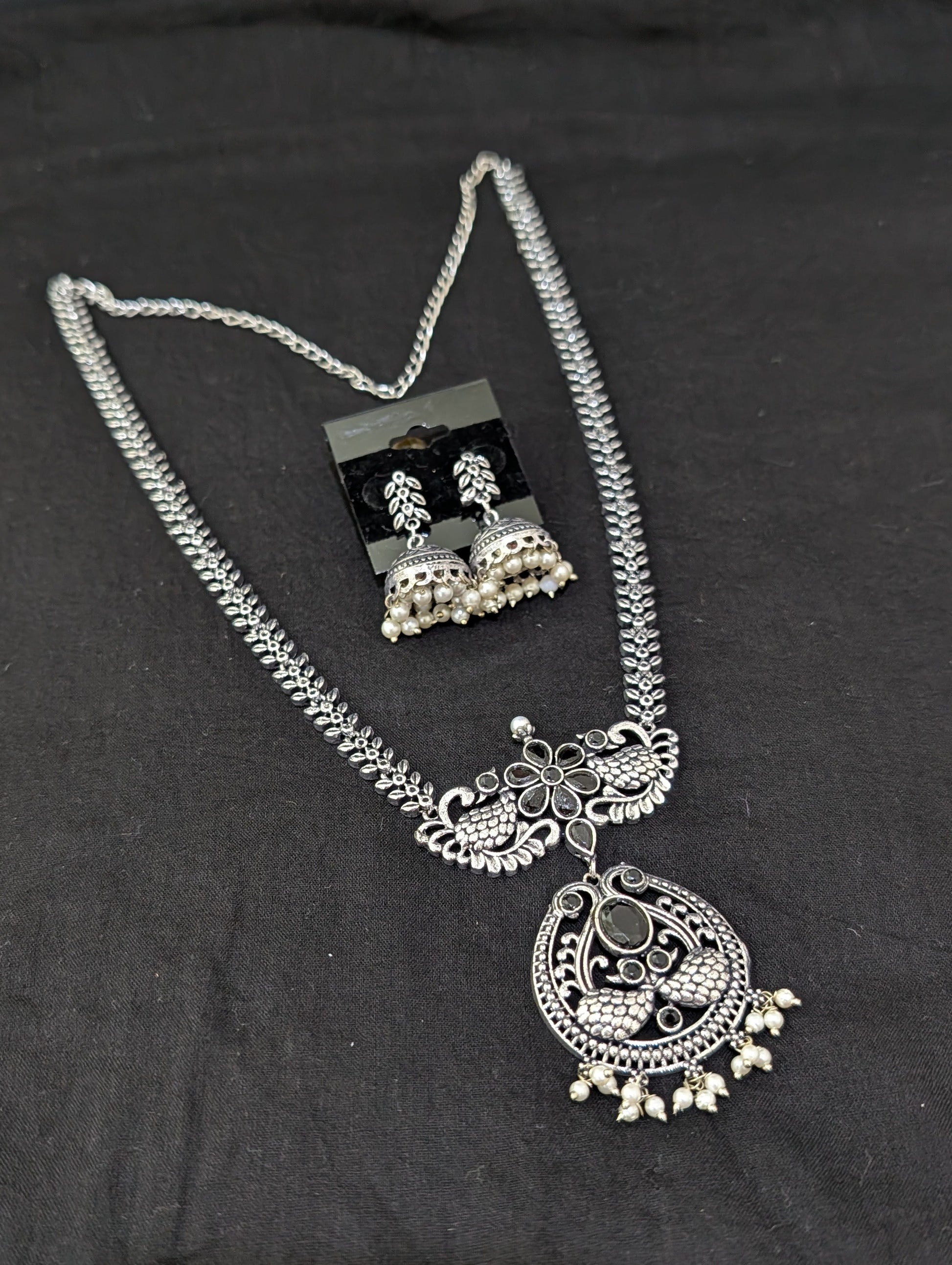 Oxidized Silver Peacock design necklace and earrings set