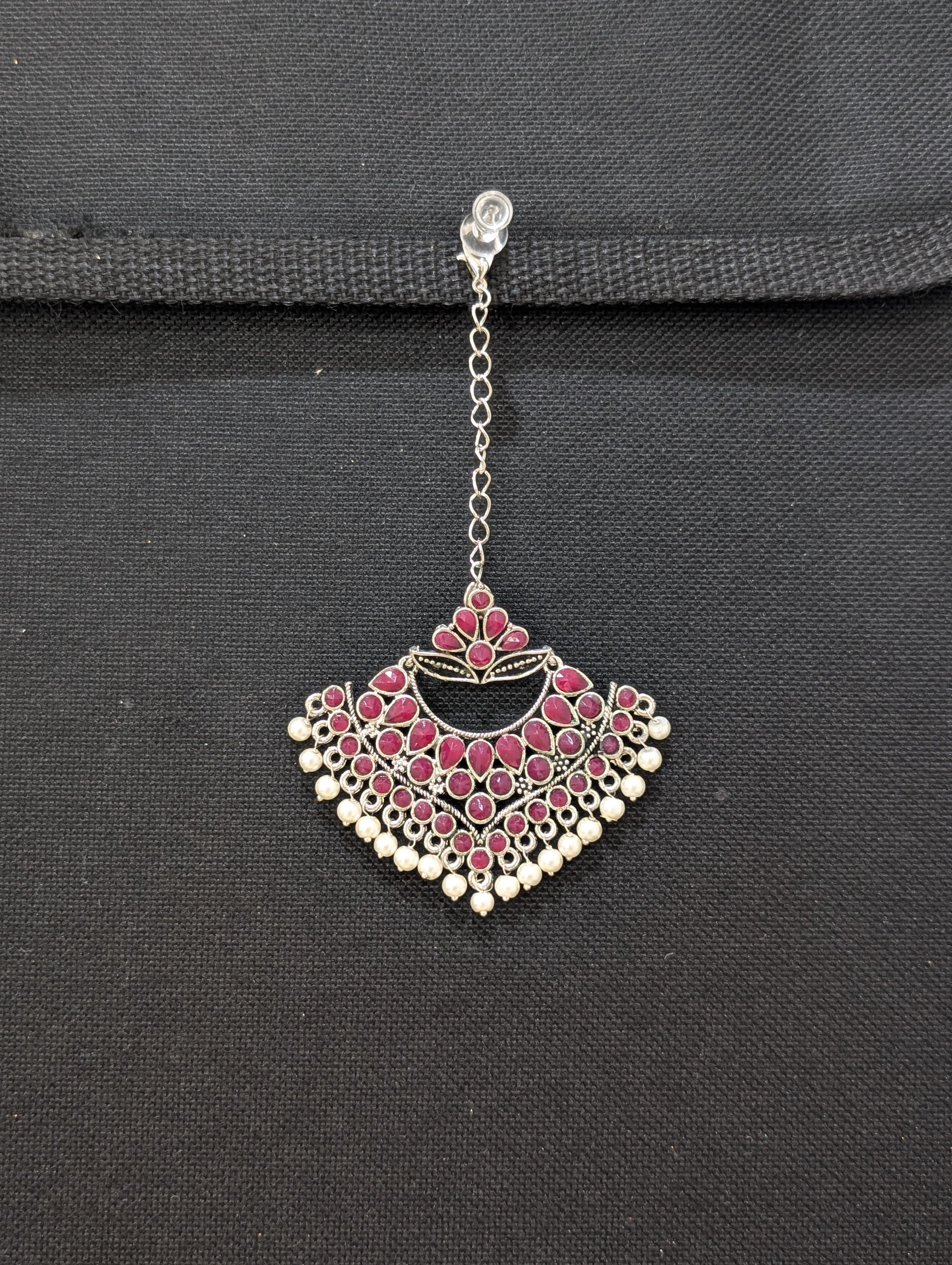 Oxidized silver Large Chandbali design Maang tikka.