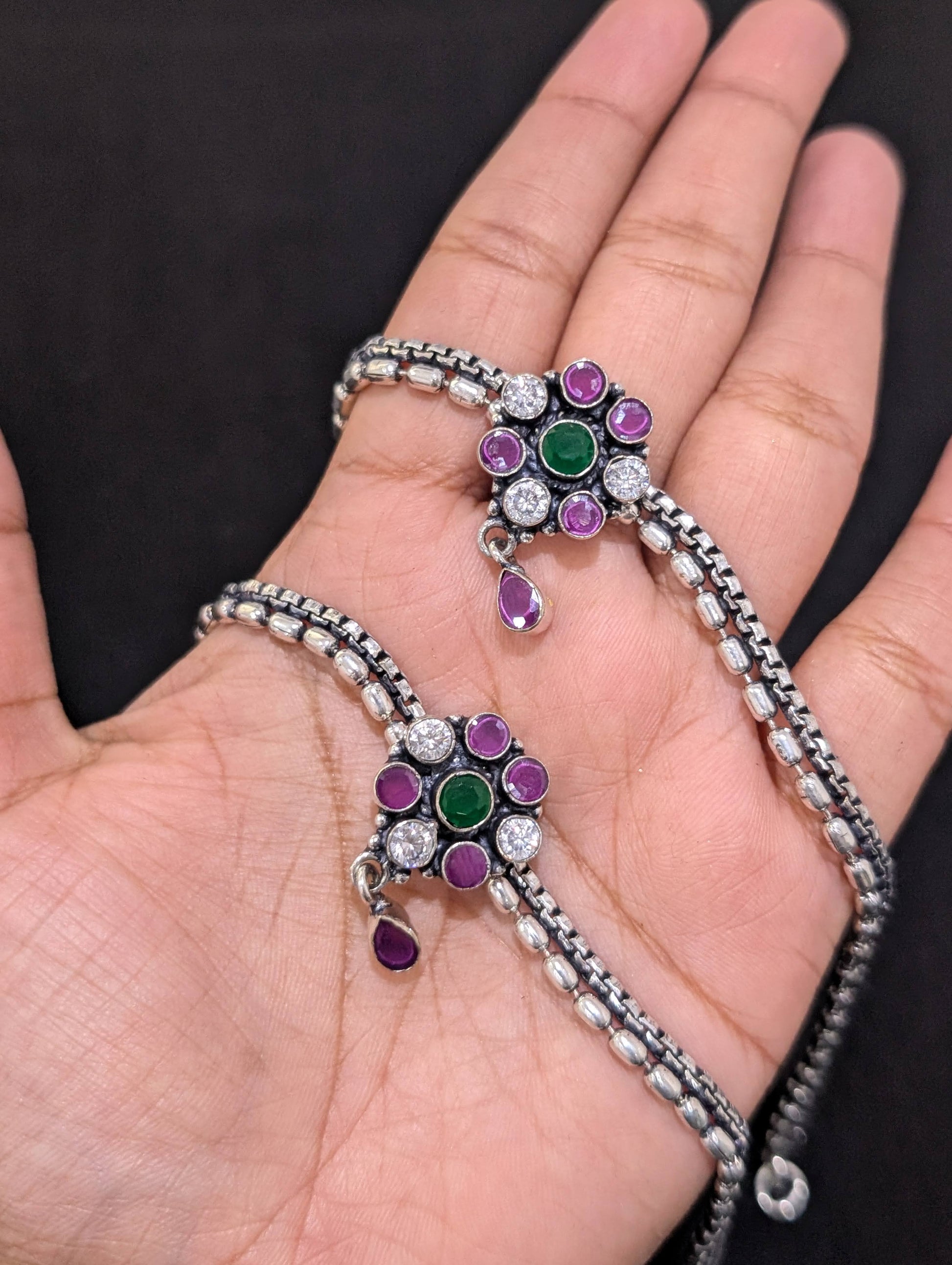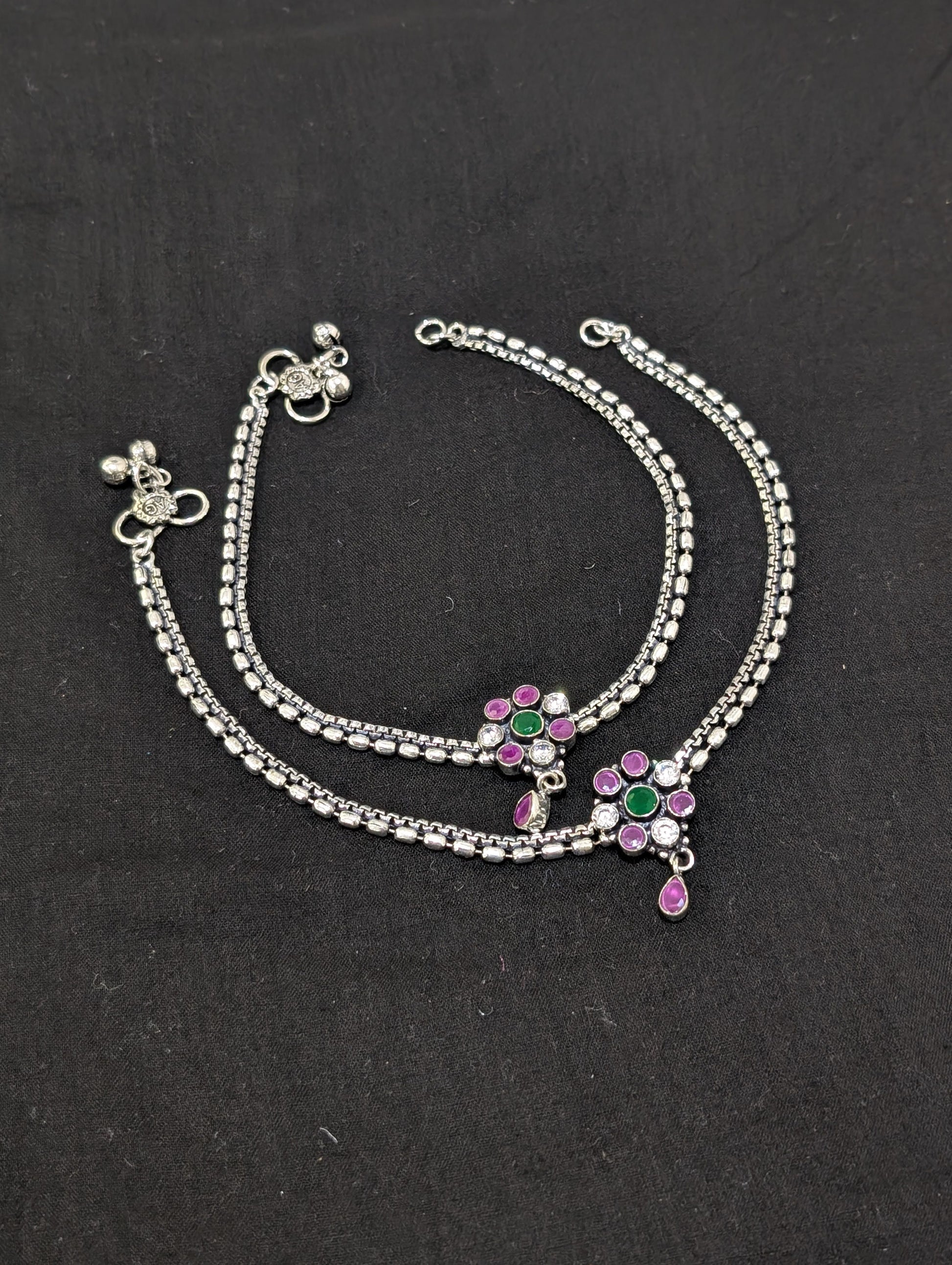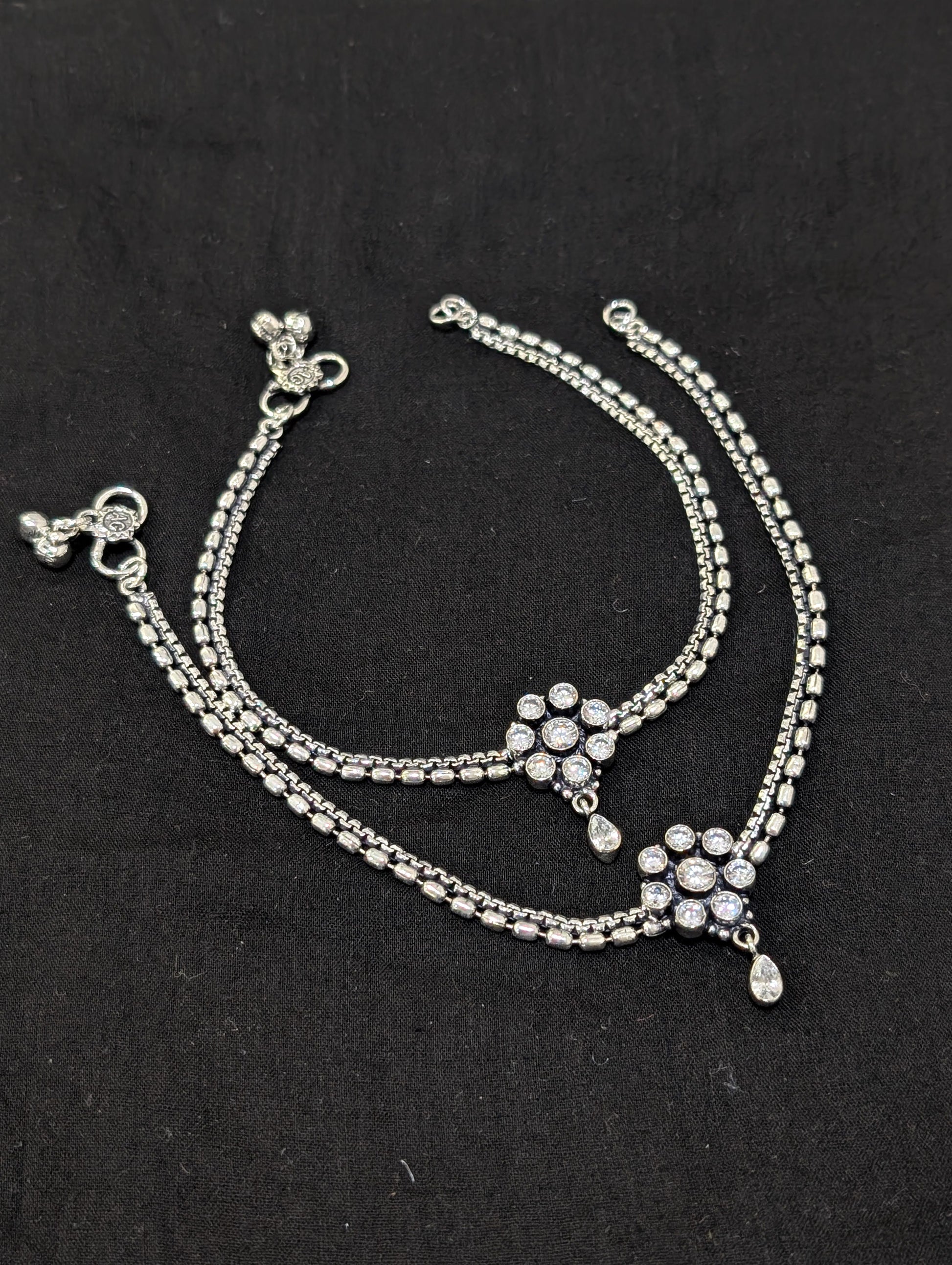 Oxidized Silver plated CZ Anklets - D2