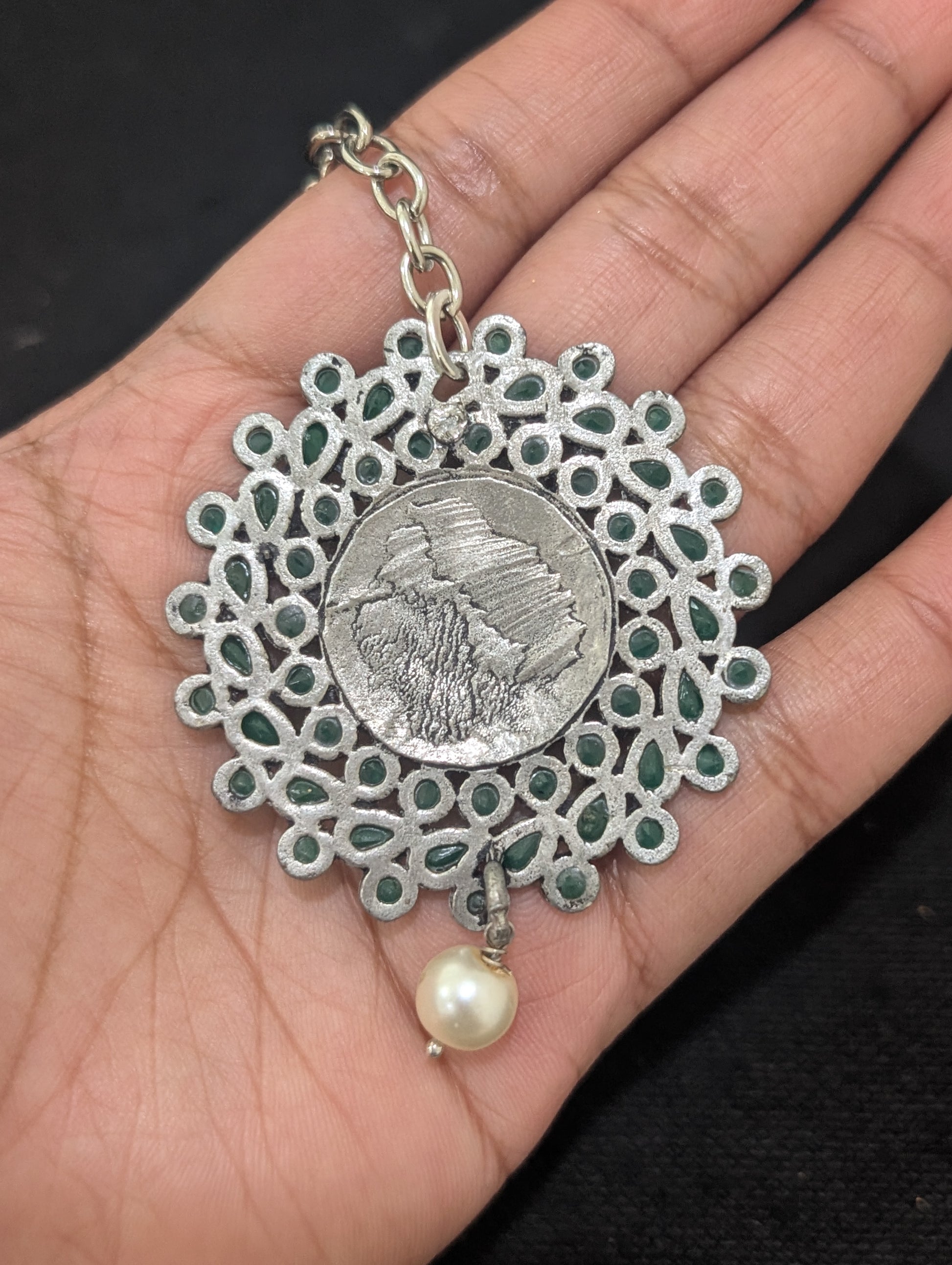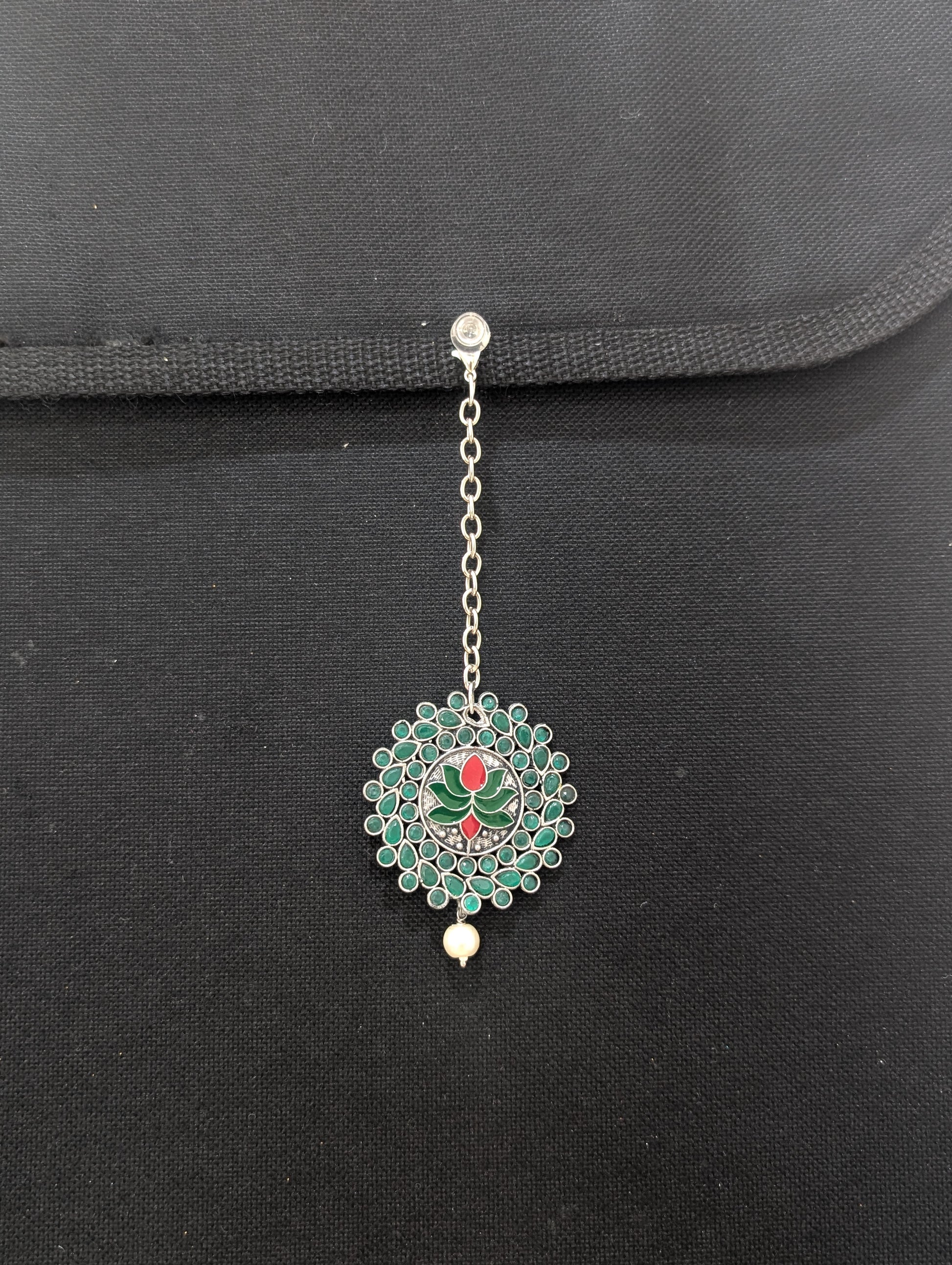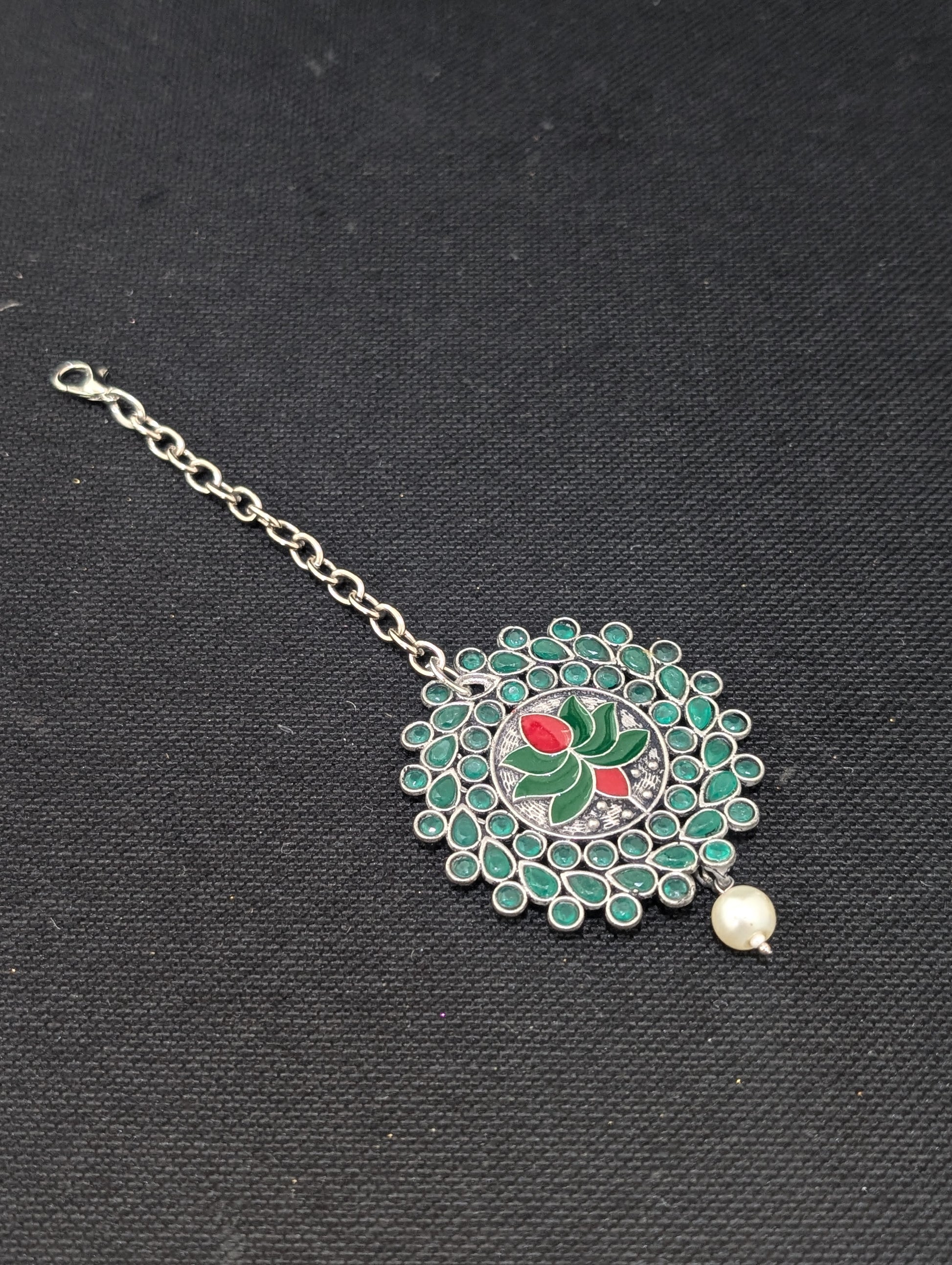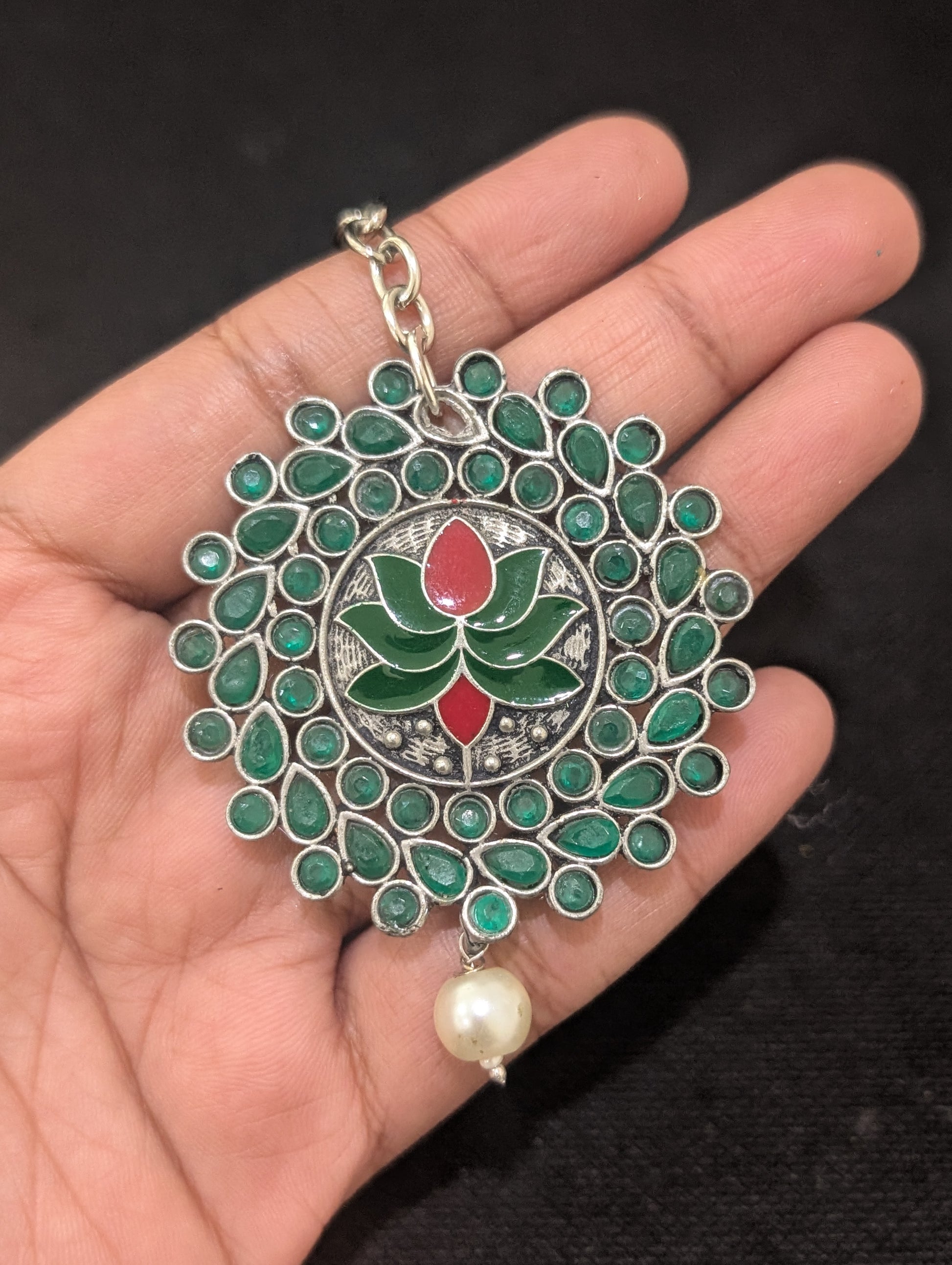 Oxidized silver Polki Lotus design Large Maang Tikka